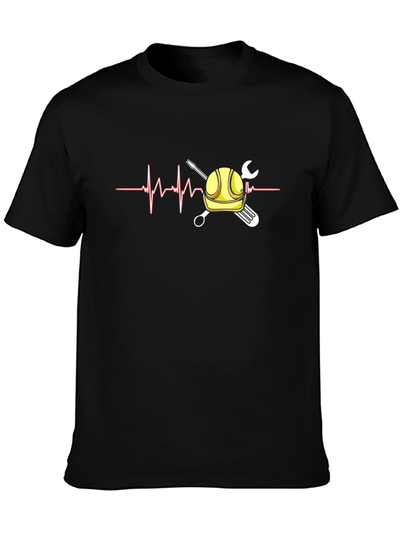 Esta camiseta negra presenta un diseño único y llamativo perfecto para ingenieros y amantes de la construcción. El estampado muestra un latido del corazón estilizado con elementos de herramientas como un casco, un destornillador y una llave inglesa. Fabricada en un tejido suave y cómodo, esta camiseta es ideal para el uso diario, ya sea en el trabajo, en casa o en tus momentos de ocio. Su diseño original la convierte en una excelente opción para expresar tu pasión por la ingeniería y sorprender a tus colegas y amigos. Una prenda versátil que combina estilo y comodidad.
