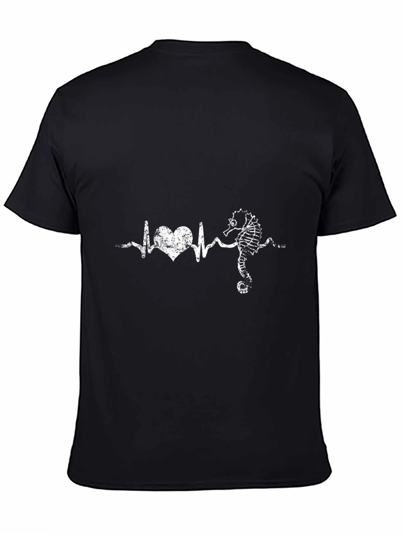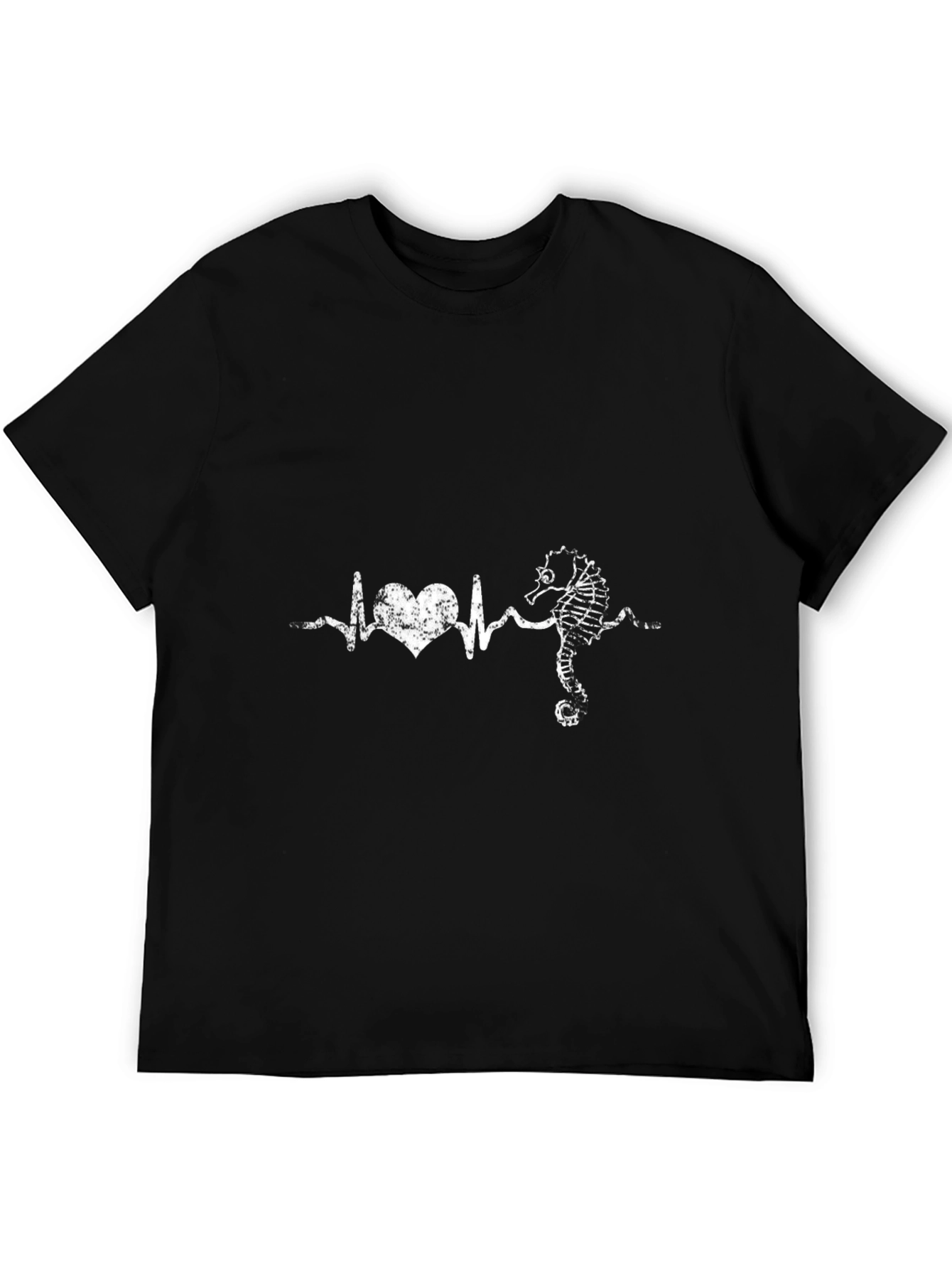 Muestra tu amor por el océano con esta llamativa camiseta negra. El diseño único presenta un latido del corazón que se transforma en un caballito de mar, perfecto para amantes del mar, biólogos marinos o cualquier persona que aprecie la vida oceánica. Fabricada con una tela suave y cómoda, esta camiseta es ideal para usarla a diario, ir a la playa o asistir a eventos informales. Su diseño distintivo seguro que generará conversaciones y te hará destacar entre la multitud. Combínala con vaqueros, pantalones cortos o una falda para un look relajado y moderno. ¡Un regalo ideal para los entusiastas del mundo marino!