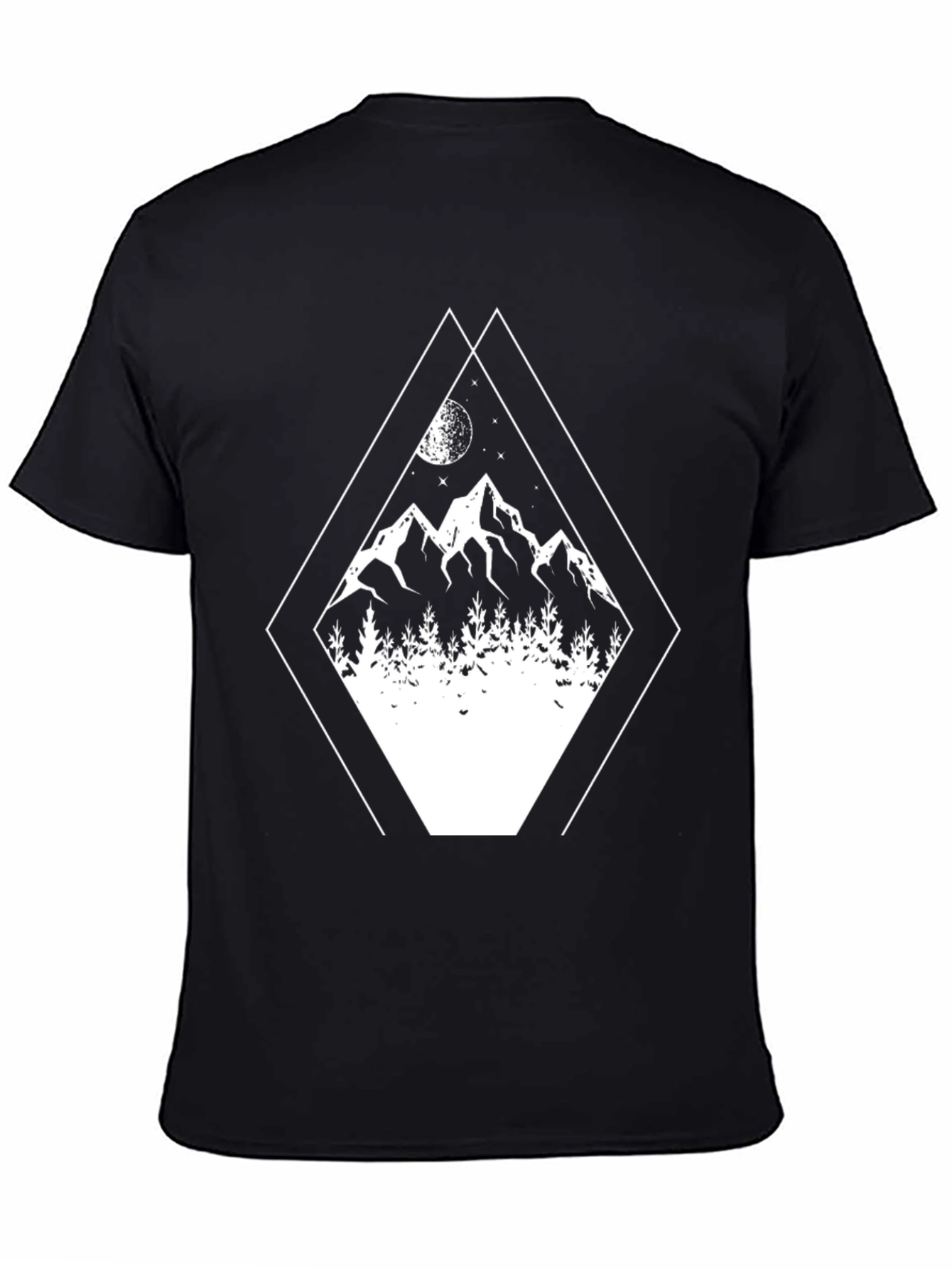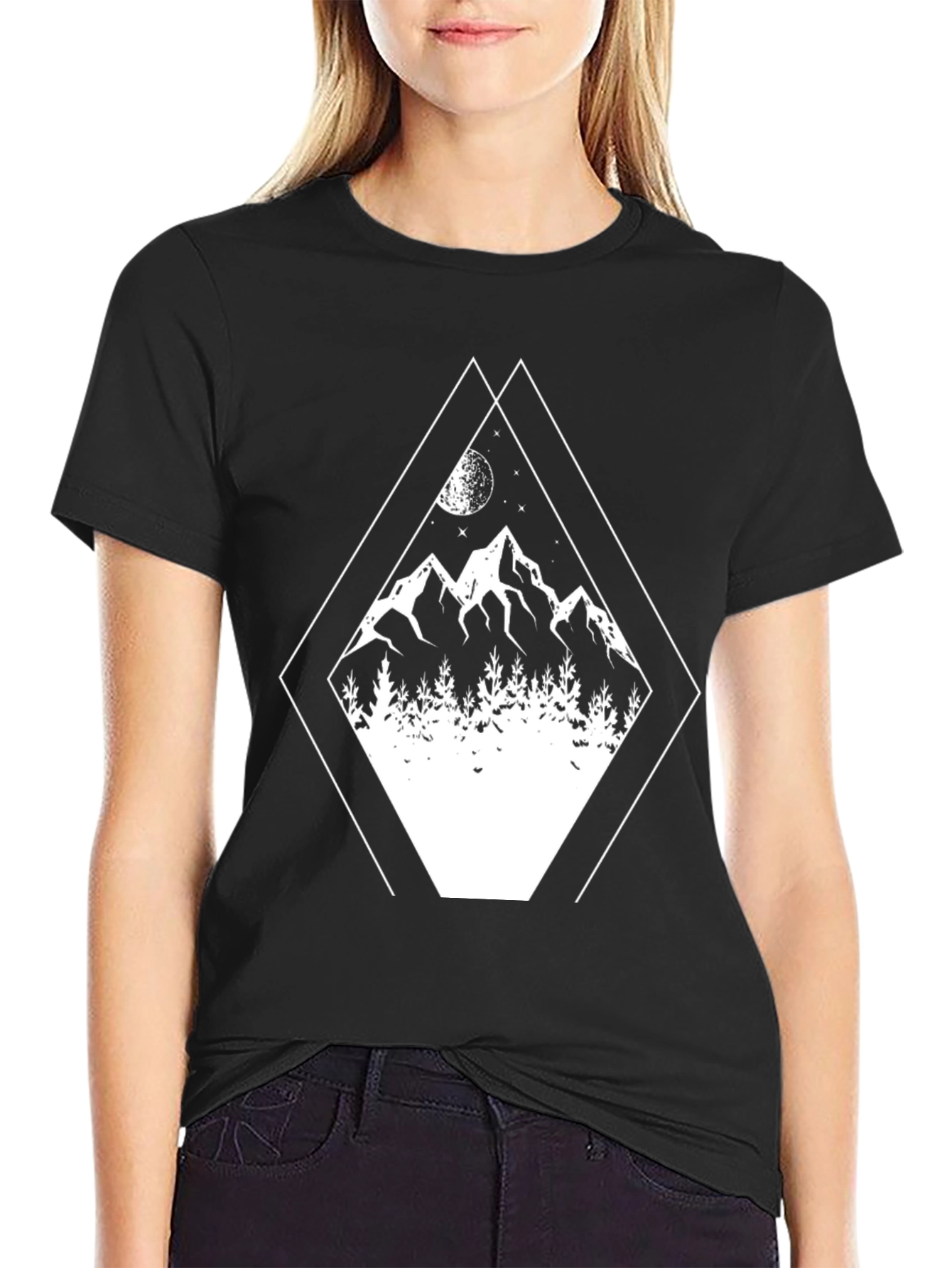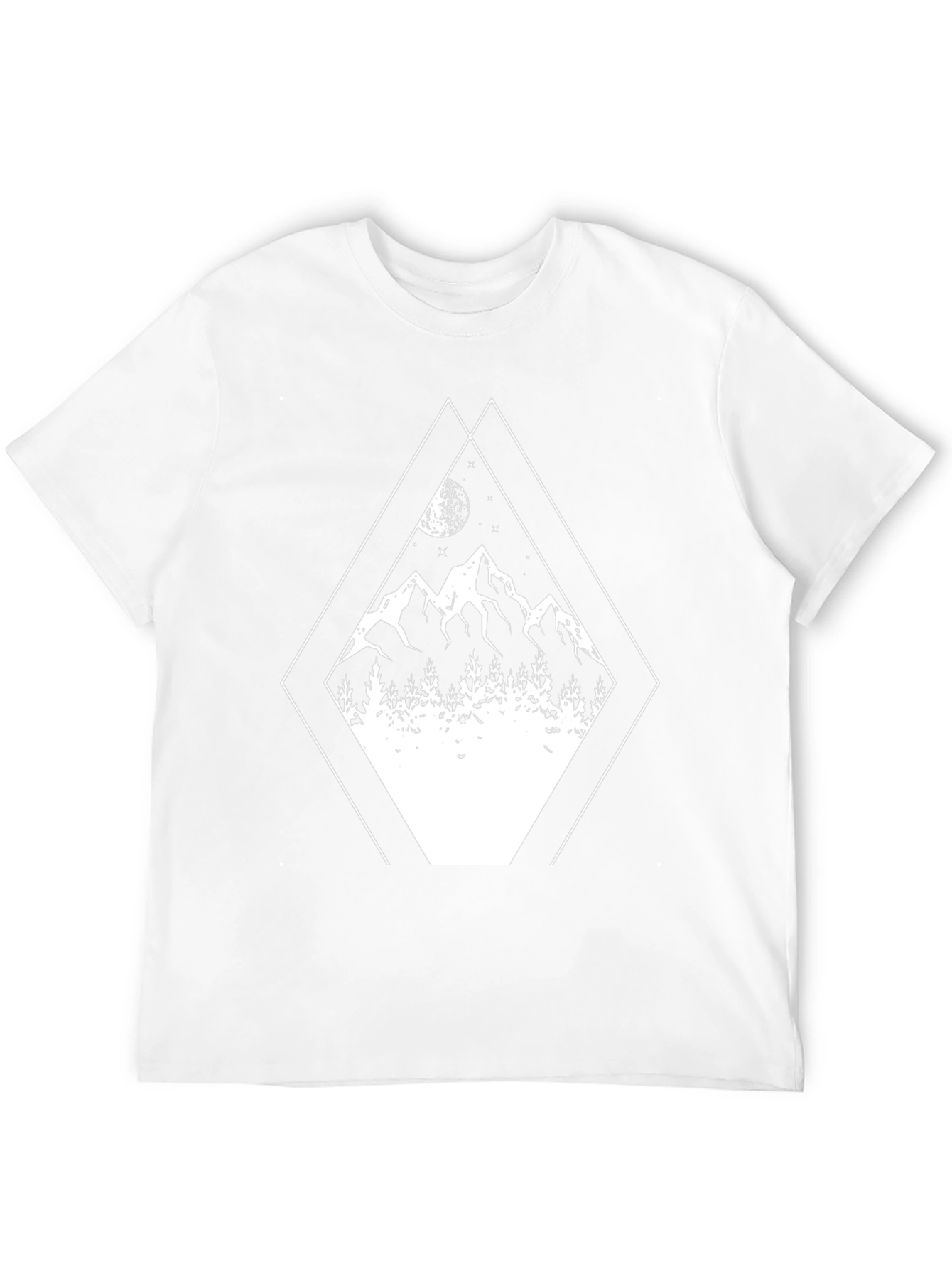 Luce esta elegante camiseta negra de manga corta con un impresionante diseño gráfico en el centro. El diseño presenta montañas nevadas bajo una luna llena estrellada, enmarcado por dos rombos blancos que le dan un toque moderno y minimalista. Perfecta para los amantes de la naturaleza y el aire libre, esta camiseta combina estilo y comodidad. Ideal para usar a diario, ya sea para una salida casual o para expresar tu pasión por la aventura. Su diseño único te hará destacar y mostrar tu personalidad. Una prenda esencial para tu guardarropa.