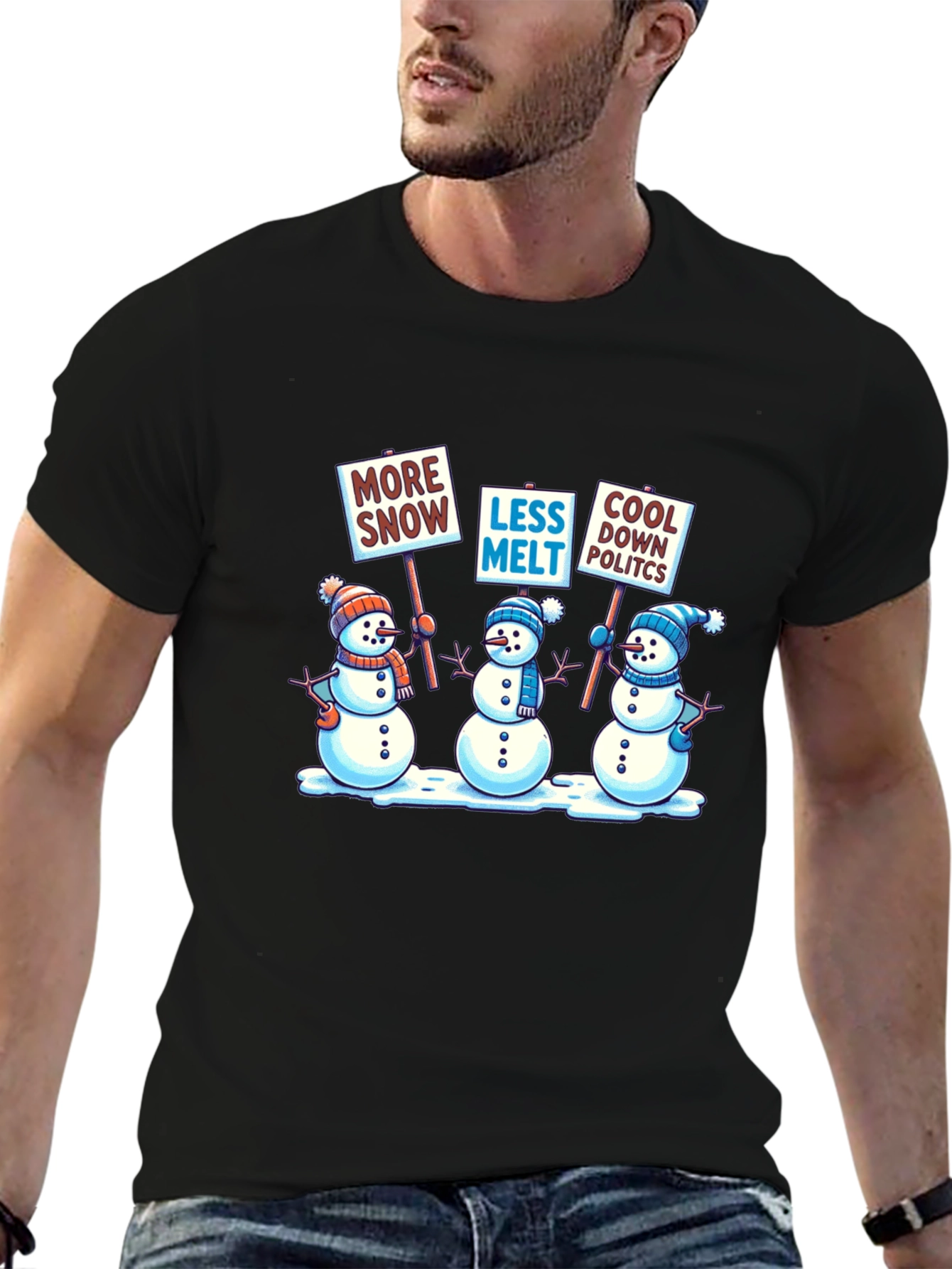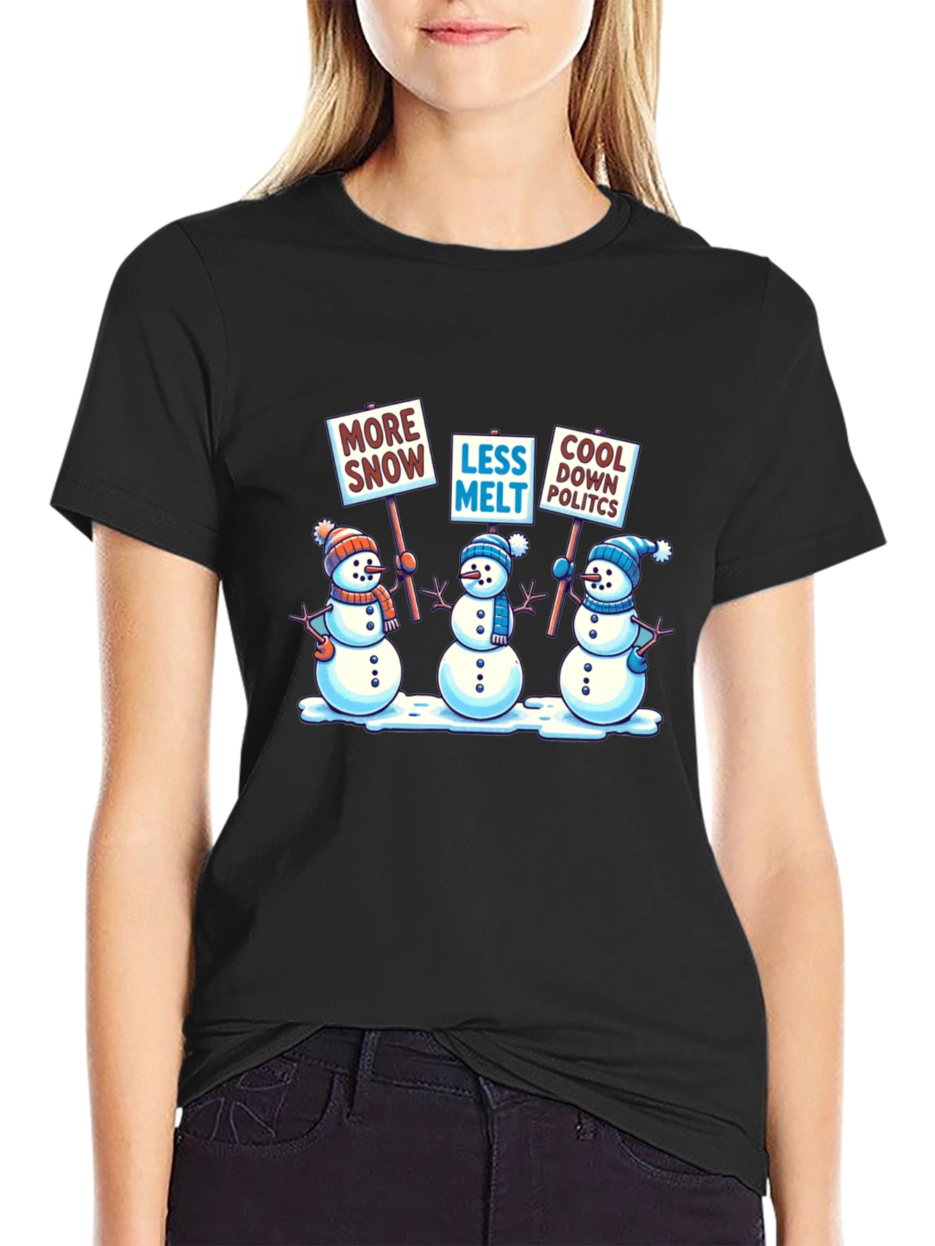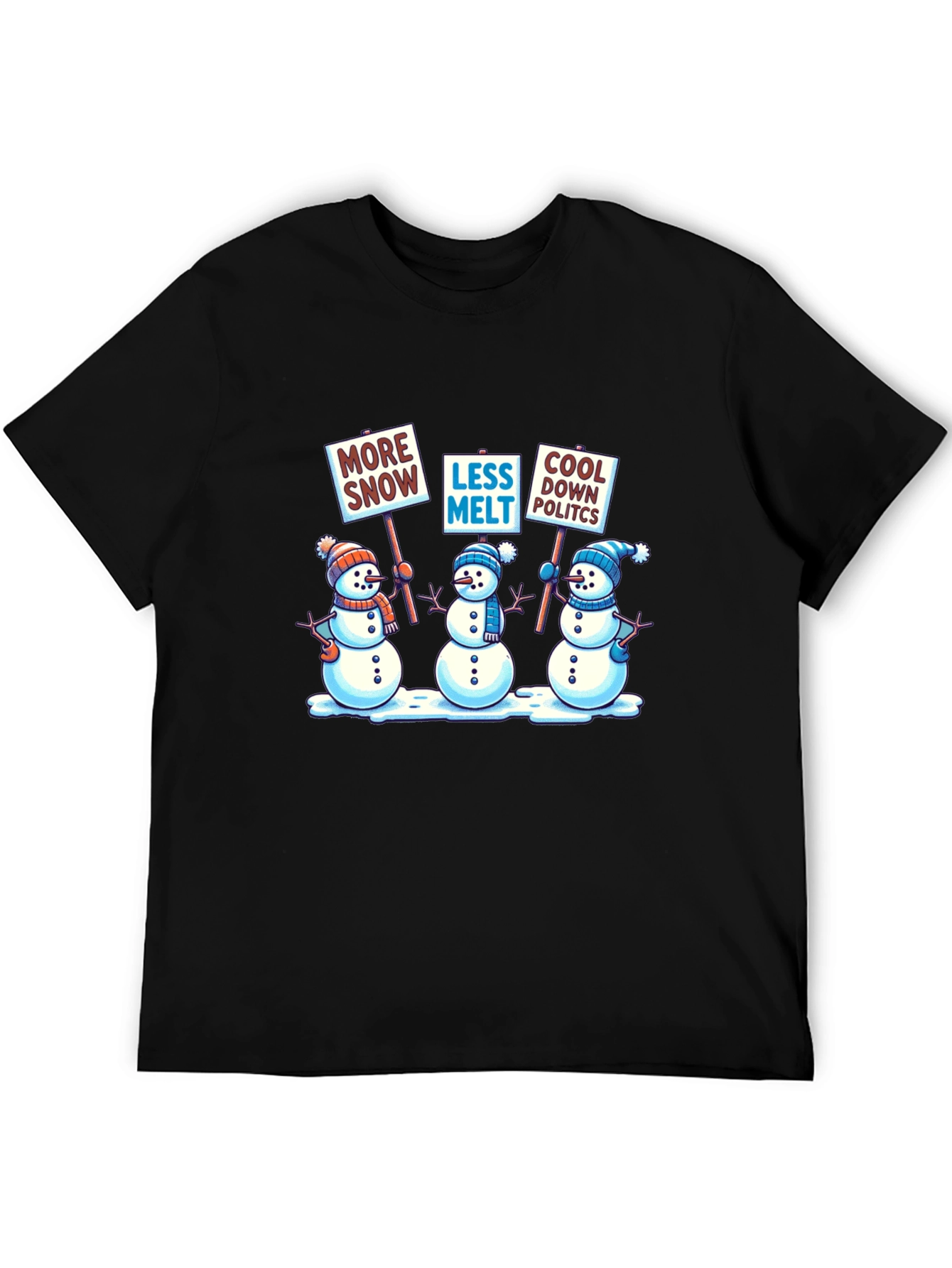 Camiseta Negra con Diseño de Muñecos de Nieve Activistas
