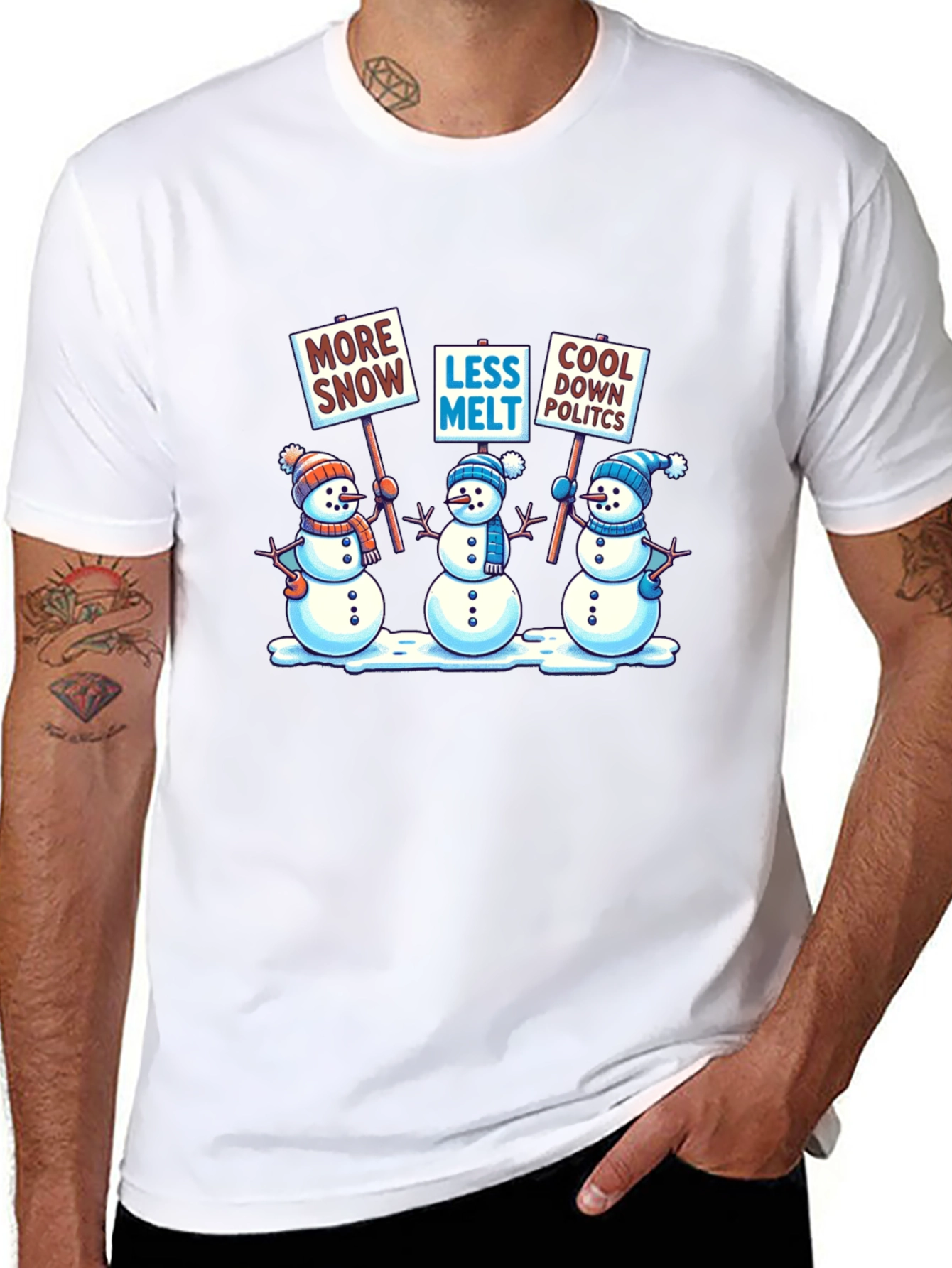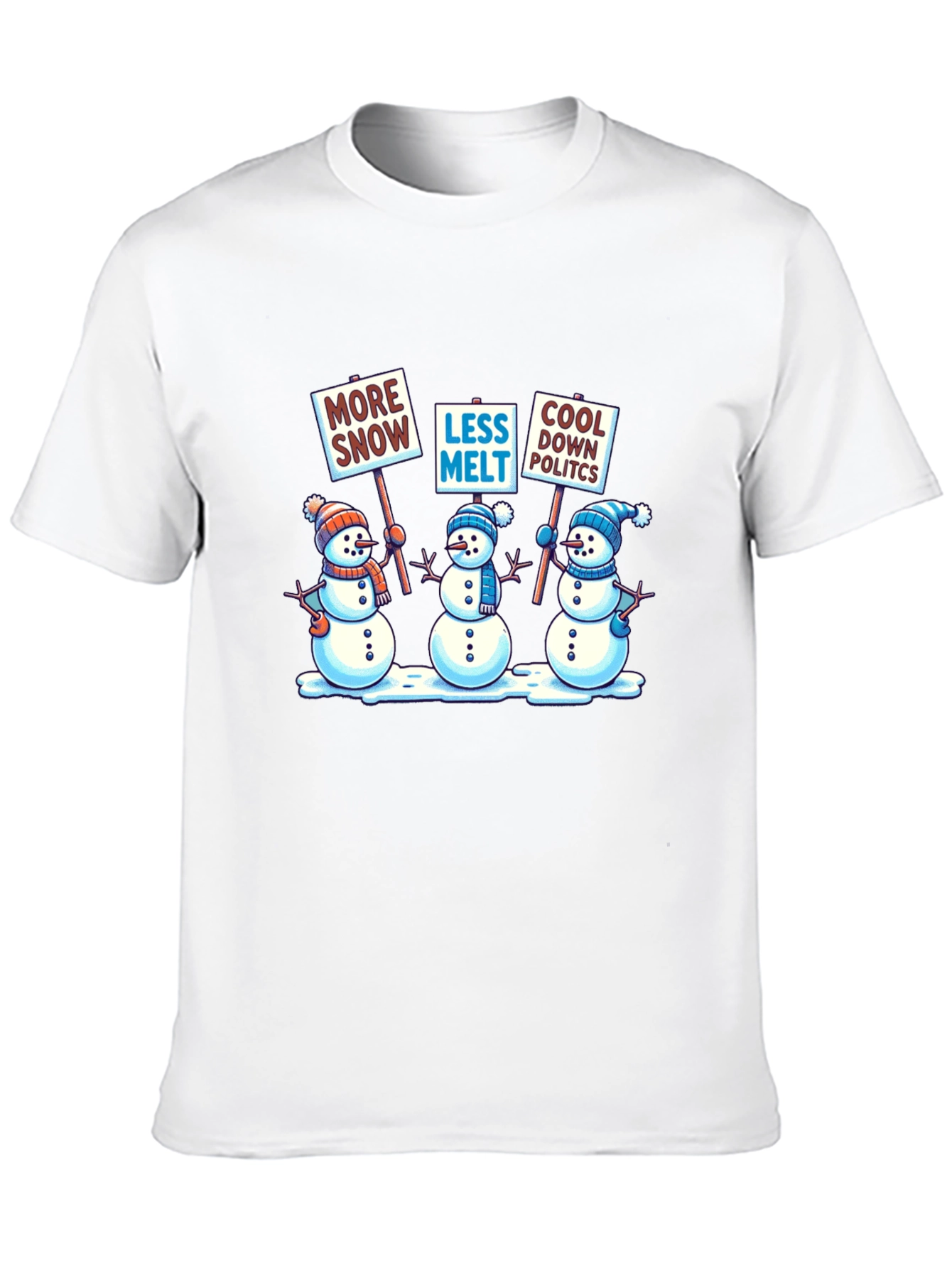 Luce esta original camiseta negra con un diseño divertido y reivindicativo. Tres simpáticos muñecos de nieve portan carteles con mensajes sobre el clima y la política. Perfecta para expresar tu opinión de manera creativa y con estilo. Fabricada con un tejido suave y cómodo, ideal para el día a día. Destaca entre la multitud con esta prenda única que combina humor y conciencia social. Ideal para regalar a amigos y familiares con sentido del humor y preocupación por el medio ambiente. ¡Muestra tu compromiso con el planeta con esta camiseta!