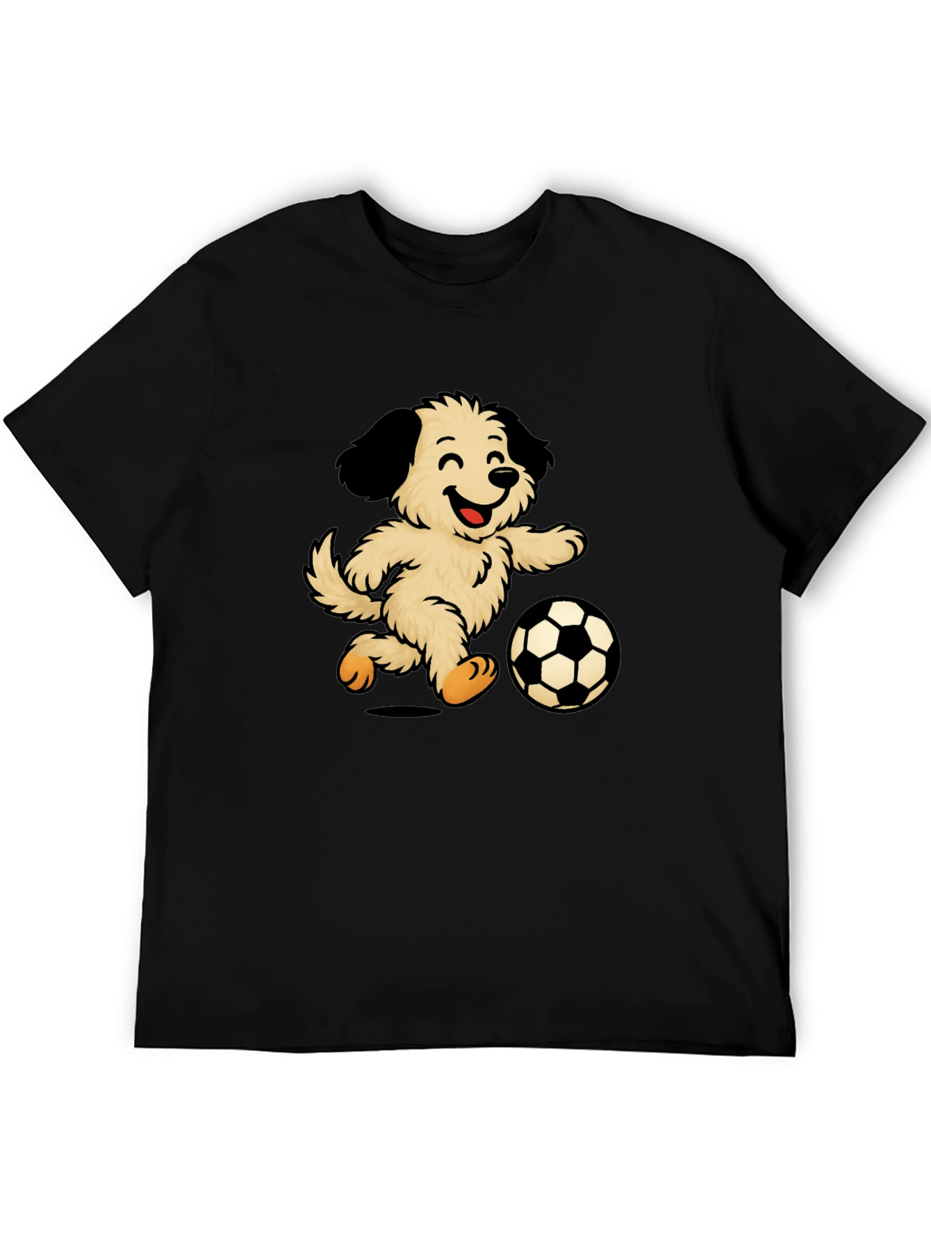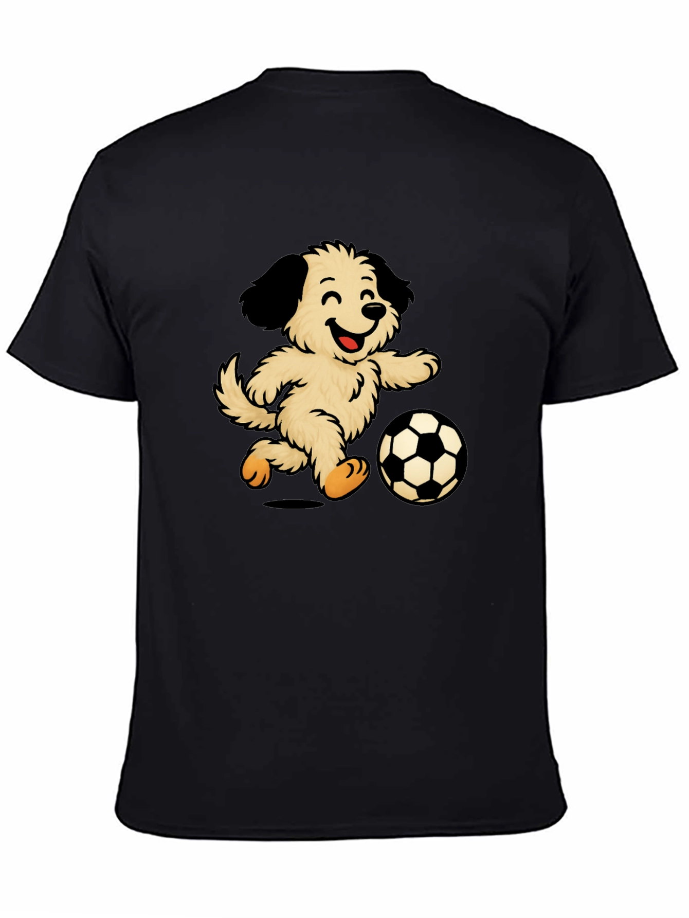 Camiseta Negra con Diseño de Perro Jugando Fútbol