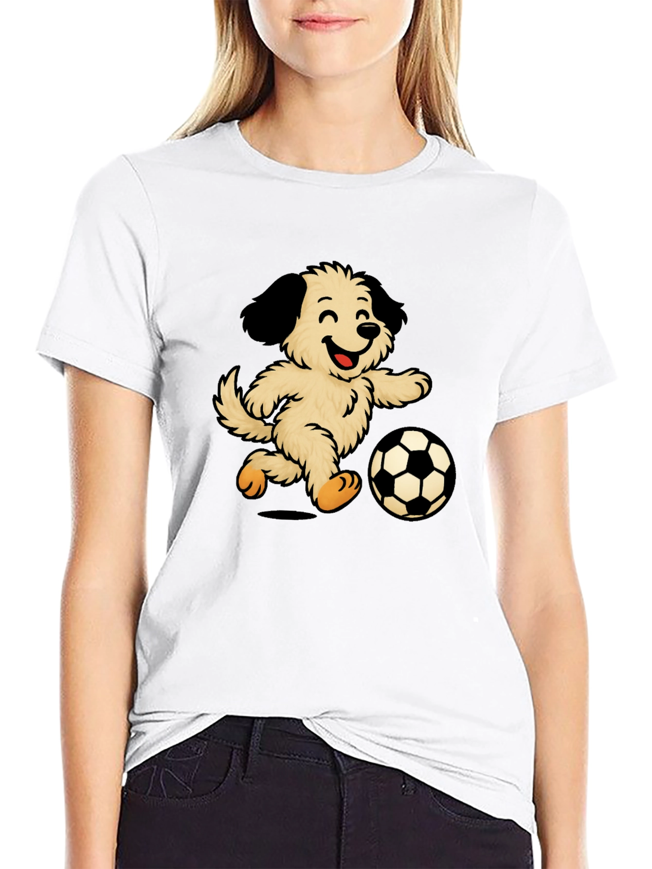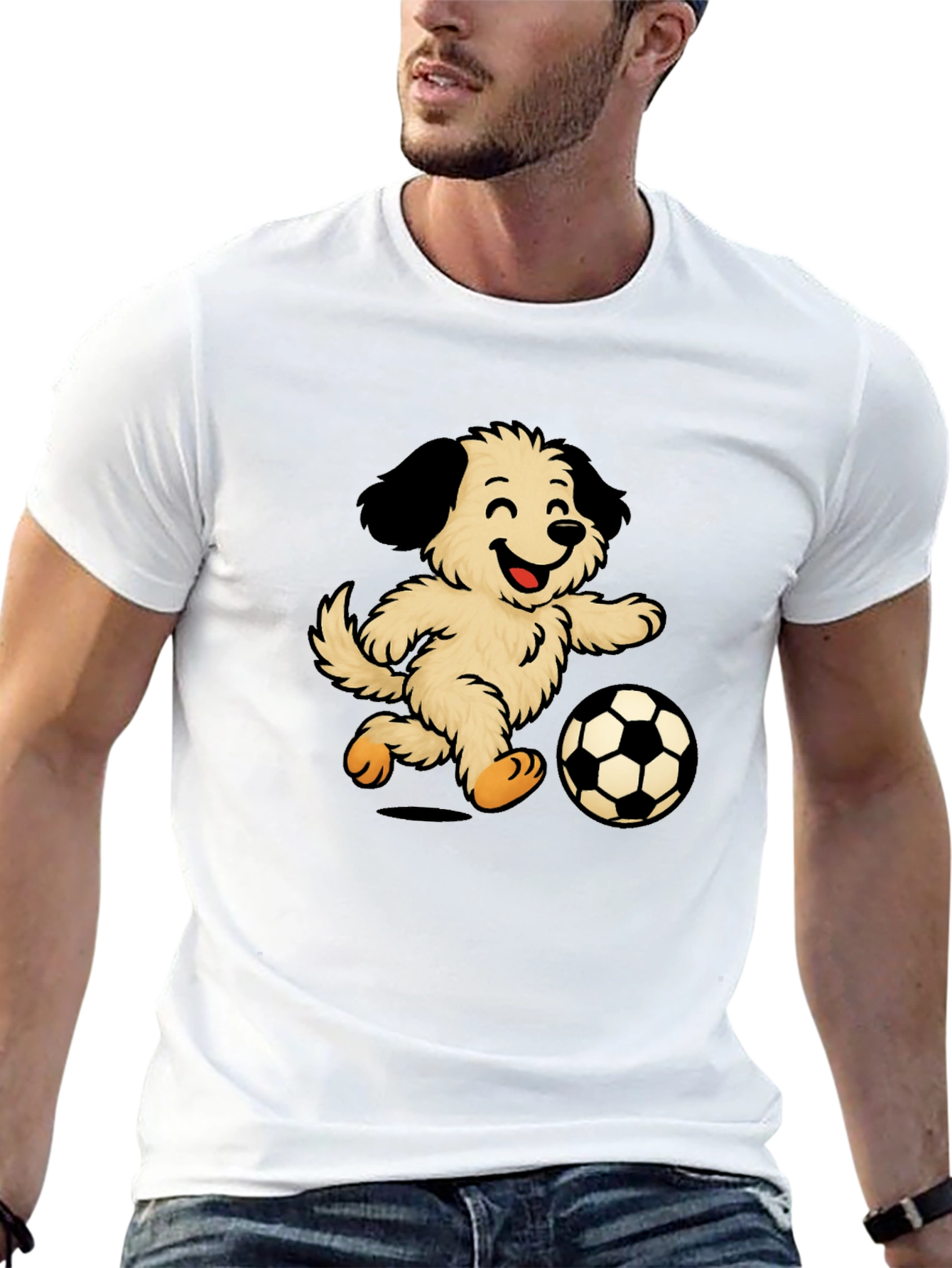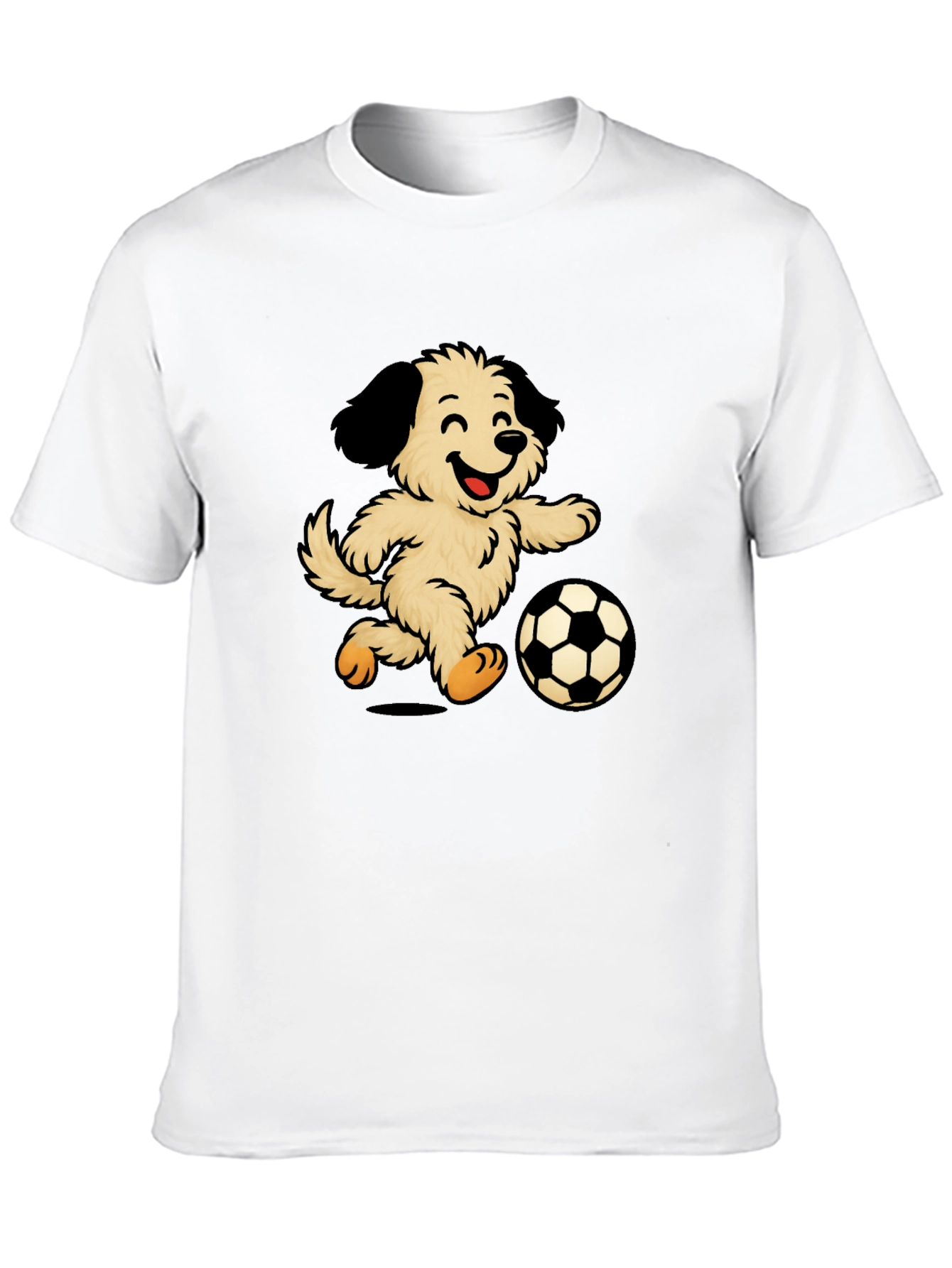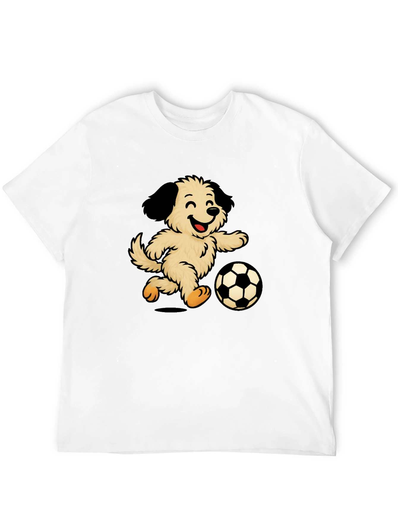 Esta divertida camiseta negra presenta un adorable diseño de un perro peludo y sonriente jugando al fútbol. La ilustración vibrante y llamativa destaca sobre el fondo oscuro de la camiseta, creando un contraste atractivo. Fabricada con un tejido suave y cómodo, esta camiseta es perfecta para el uso diario, ya sea para salir con amigos, practicar deportes o simplemente relajarse en casa. Su diseño único la convierte en una excelente opción para los amantes de los perros y los fanáticos del fútbol. Ideal para un estilo casual y relajado, esta camiseta seguramente será un éxito. ¡Muestra tu amor por los perros y el fútbol con esta prenda original y divertida!