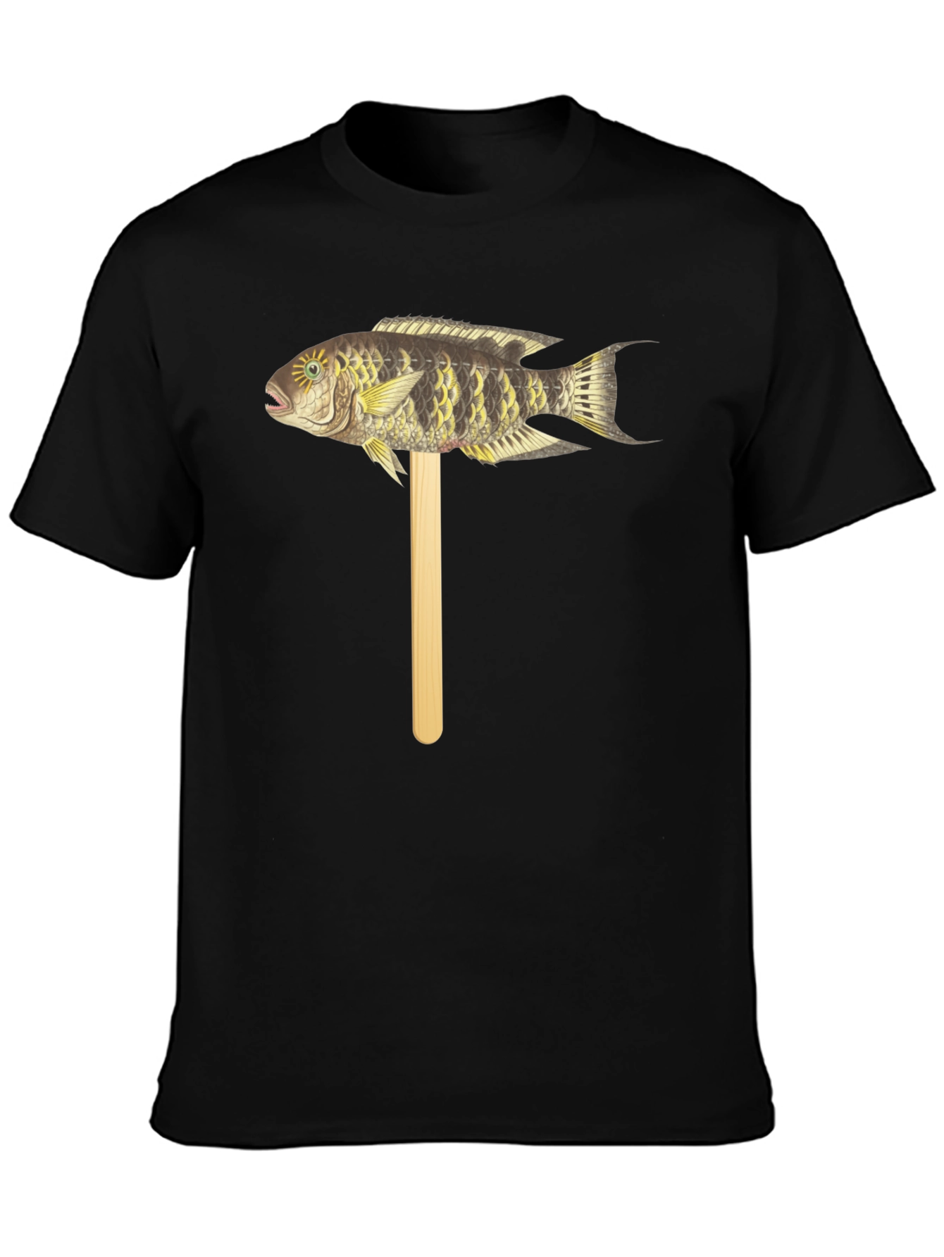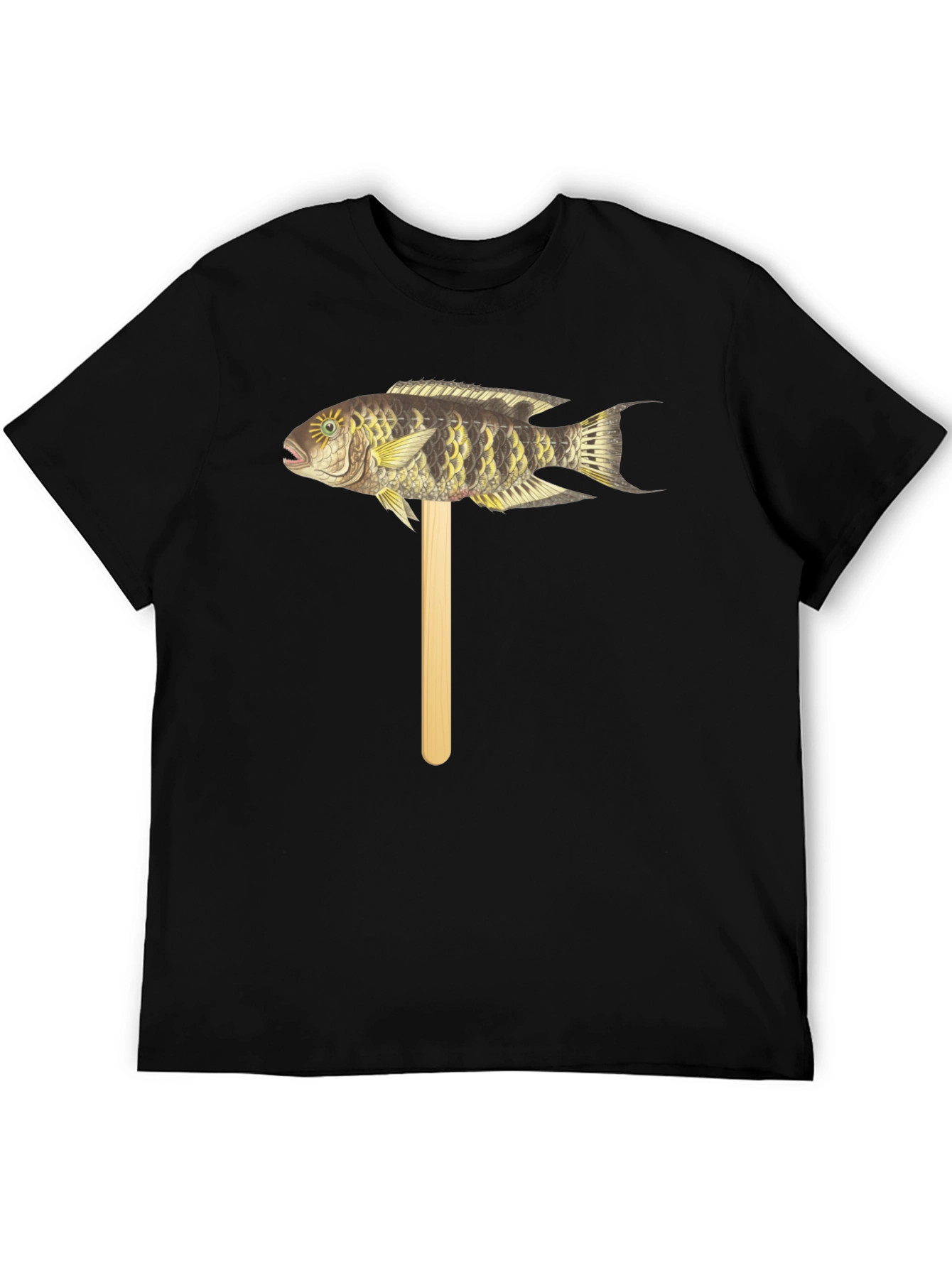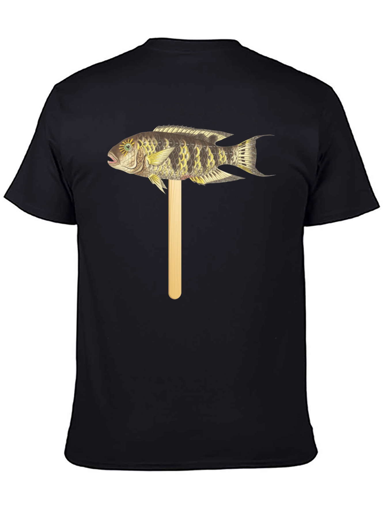 Camiseta Negra con Diseño de Pez Tropical en Palo