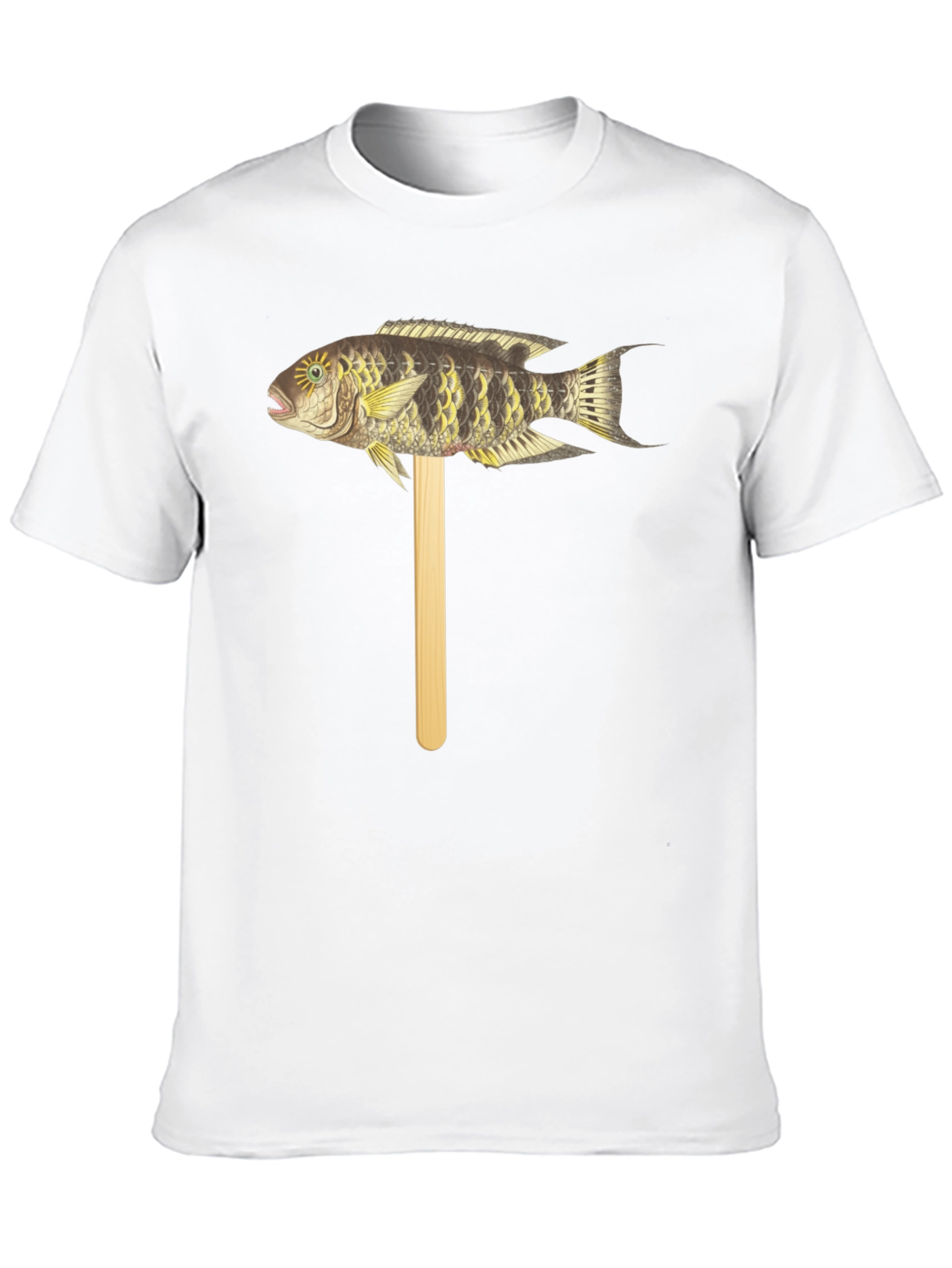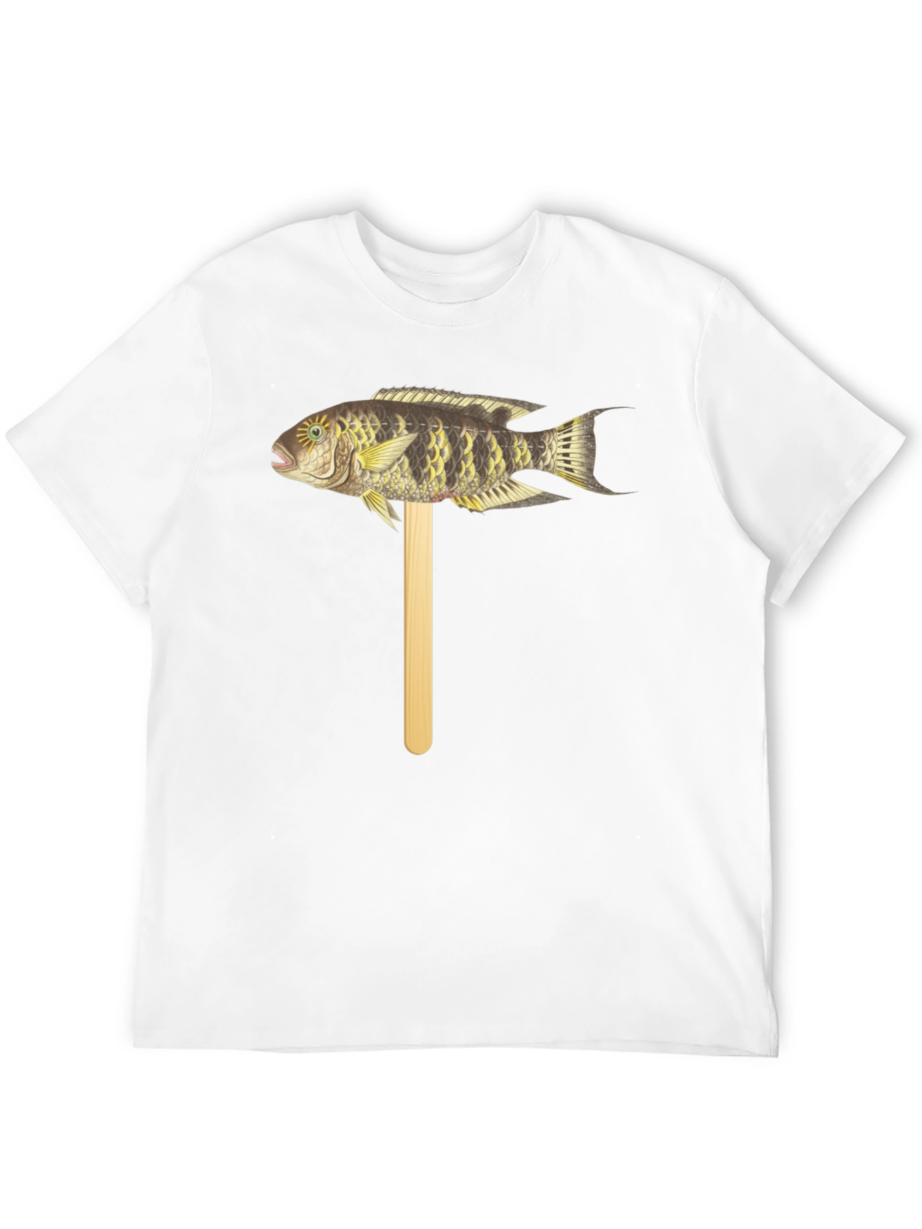 Luce esta original camiseta negra de manga corta con un diseño único. Presenta un llamativo gráfico de un pez tropical detallado, montado sobre un palo de madera simulado. Ideal para amantes de la naturaleza y la vida marina que buscan un estilo distintivo y divertido. Perfecta para ocasiones casuales, salidas al aire libre o como un regalo original. Su tejido suave y cómodo garantiza un ajuste agradable durante todo el día. Atrévete a destacar con esta prenda llamativa y expresiva.