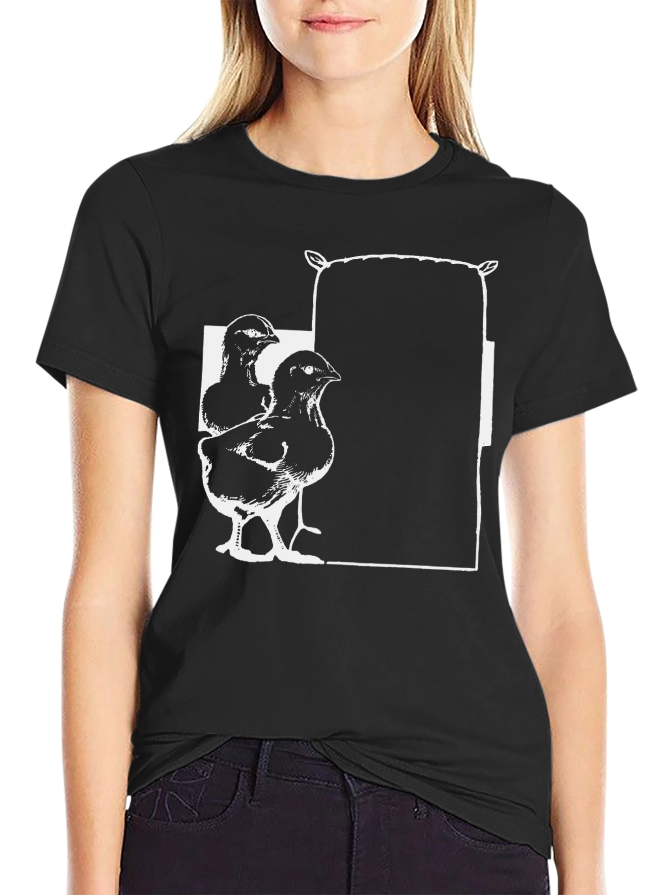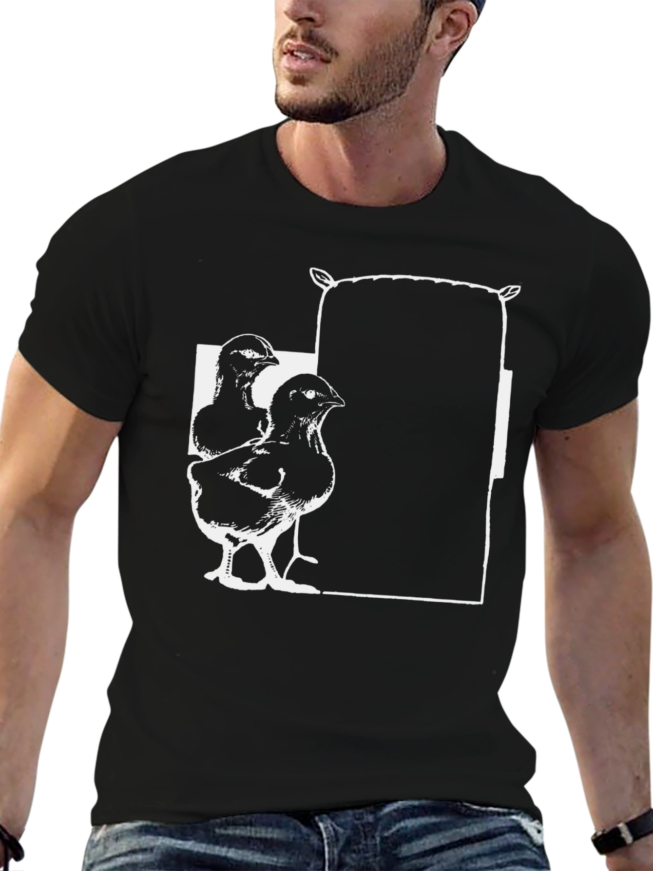 Camiseta Negra con Diseño de Pollitos y Saco