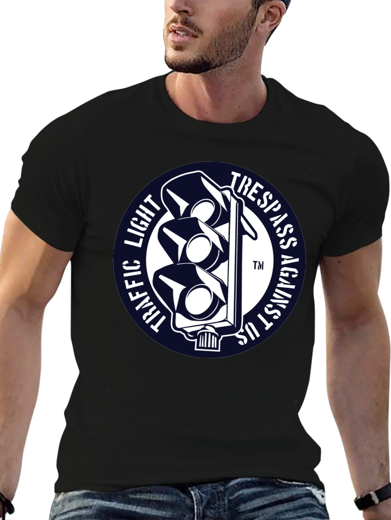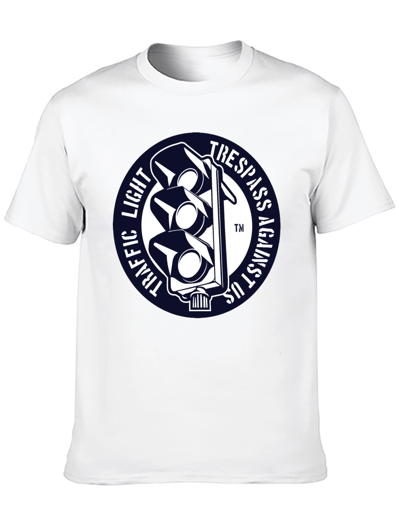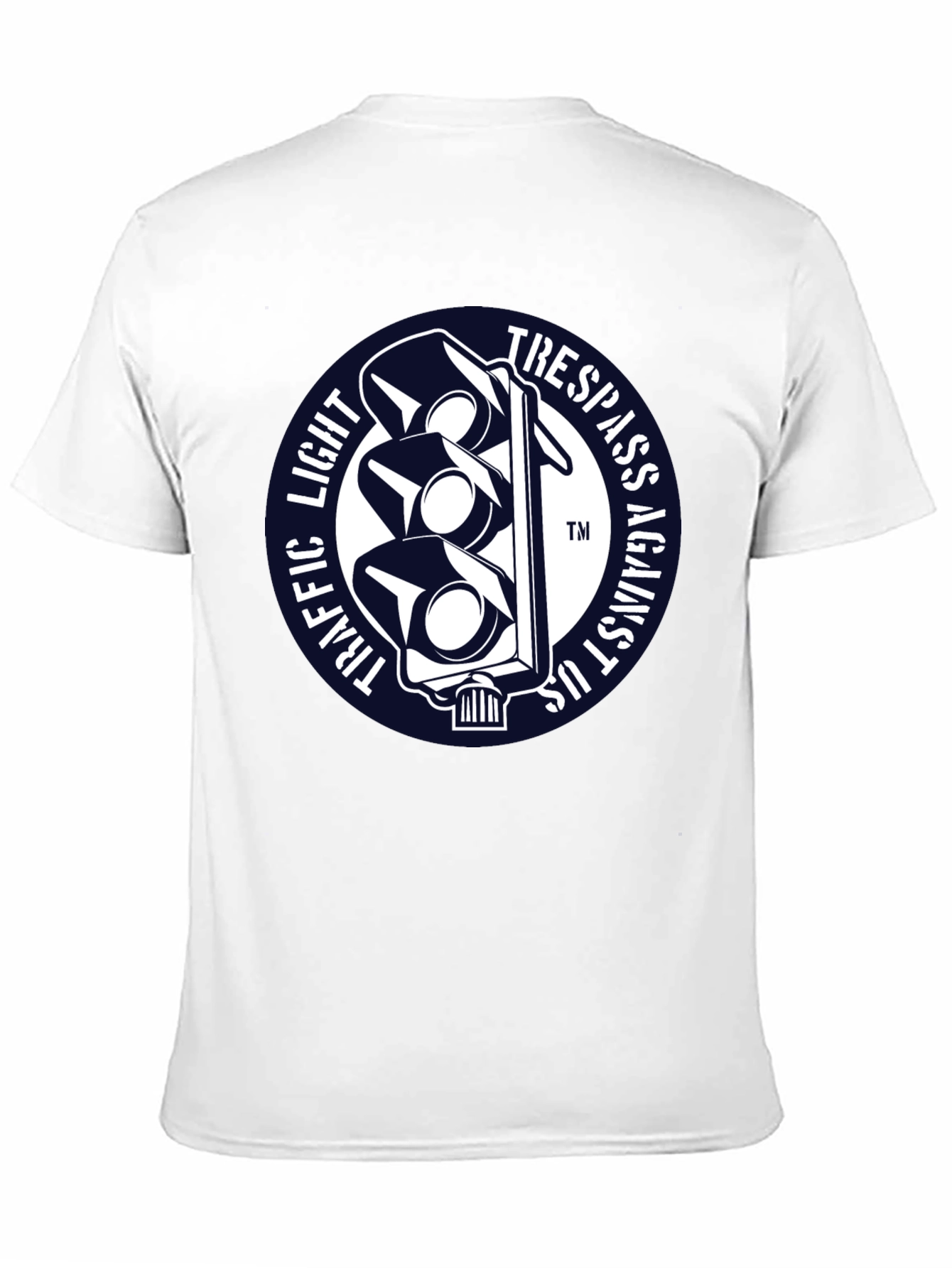 Luce esta llamativa camiseta negra con un diseño único. Presenta un distintivo gráfico circular con un semáforo estilizado en blanco sobre un fondo azul marino. Las palabras "TRAFFIC LIGHT" y "TRESPASS AGAINST US" rodean el semáforo, creando un efecto visual impactante. Fabricada con un tejido suave y confortable, esta camiseta de manga corta es perfecta para expresar tu individualidad con estilo. Ideal para uso diario, conciertos, eventos informales o simplemente para destacar entre la multitud. Agrega un toque de originalidad a tu guardarropa con esta prenda única y versátil.