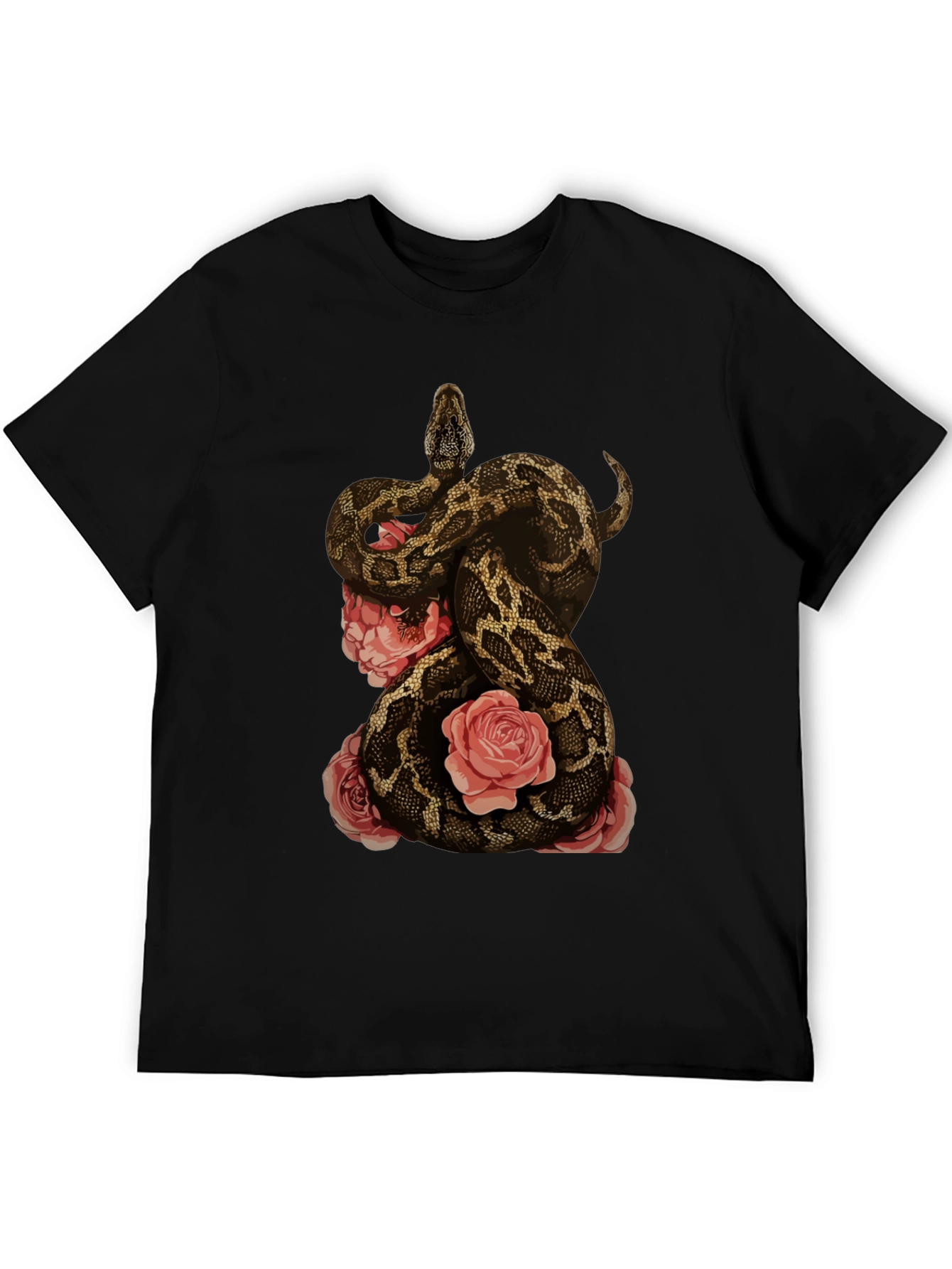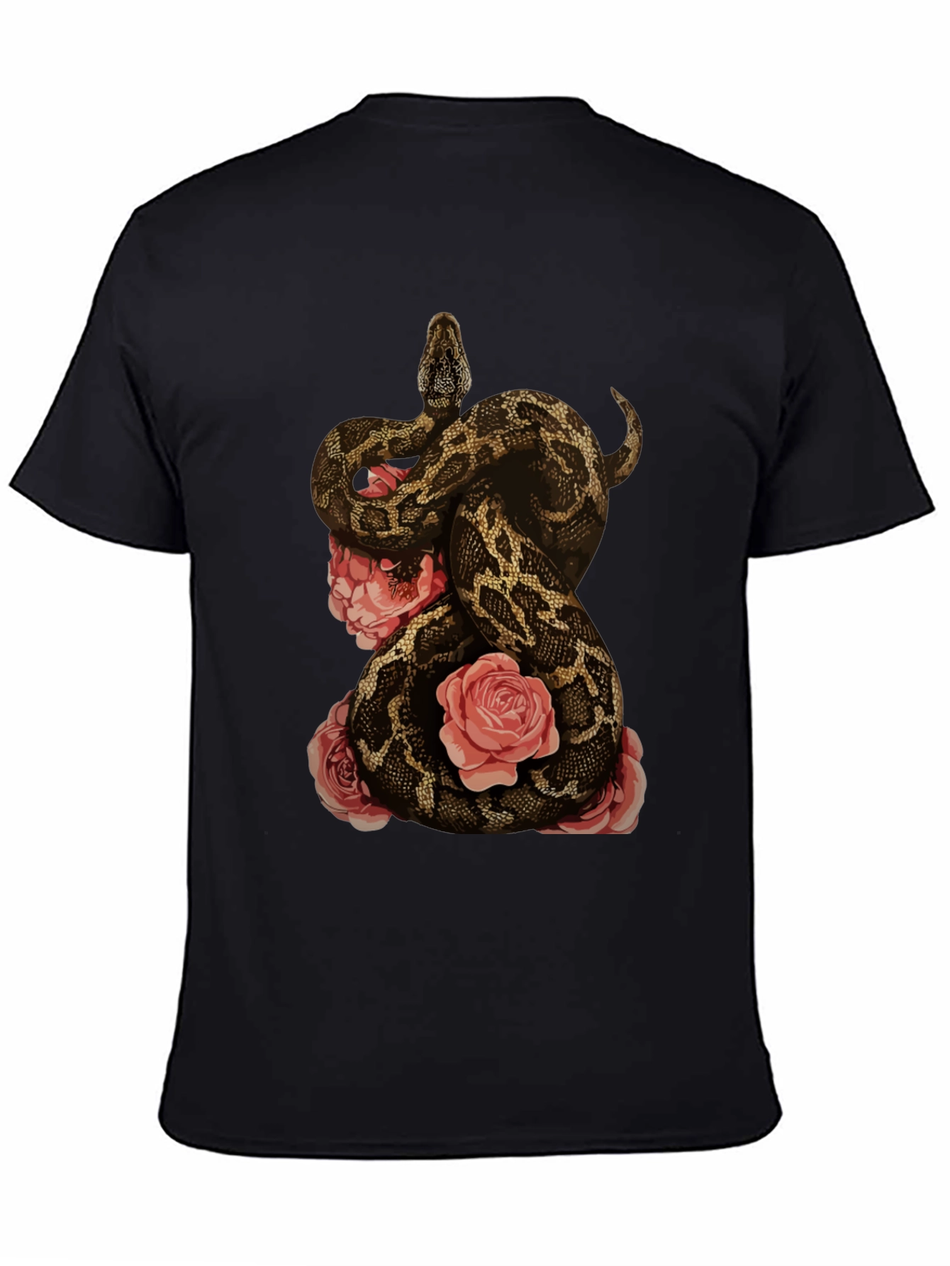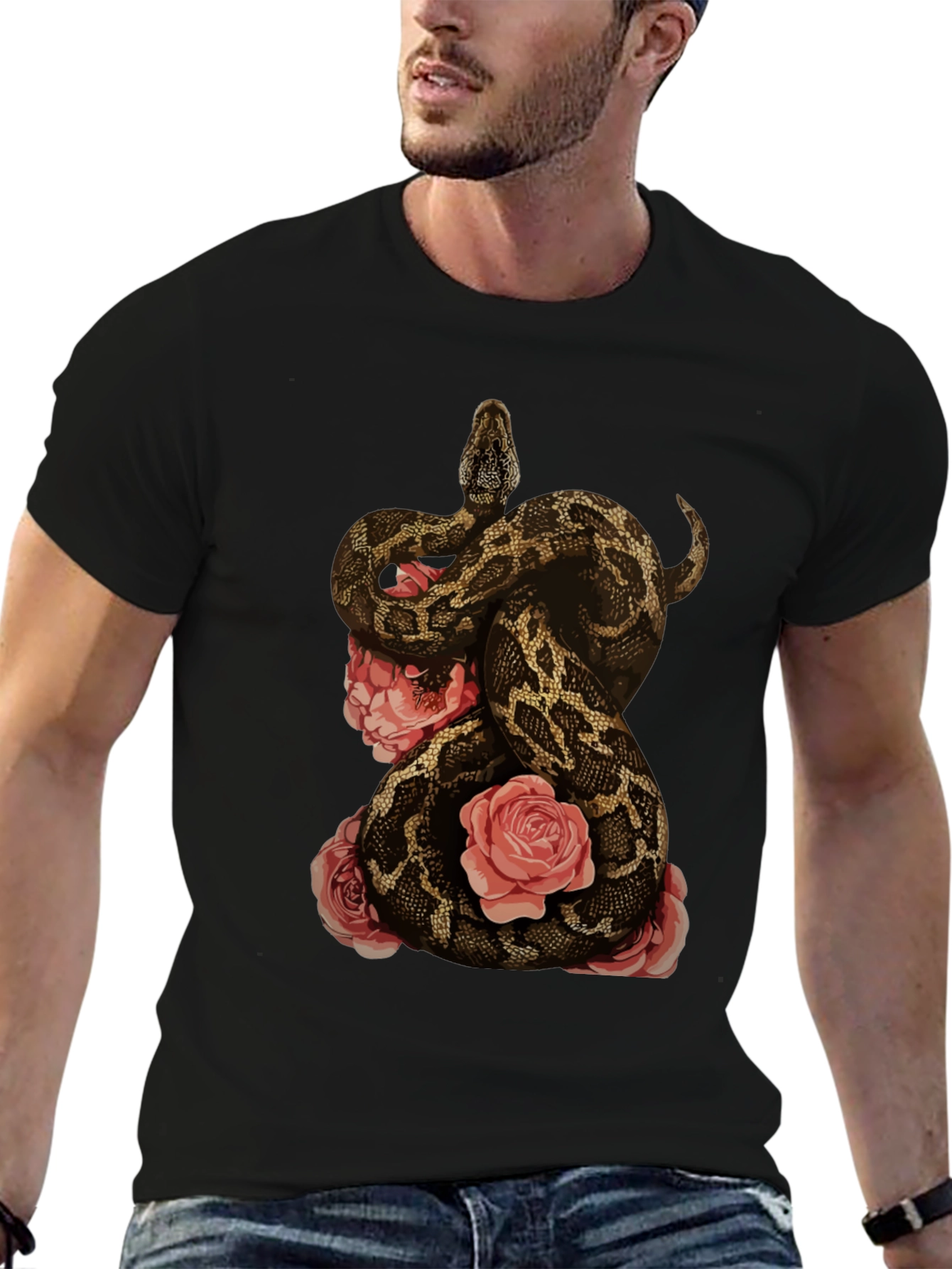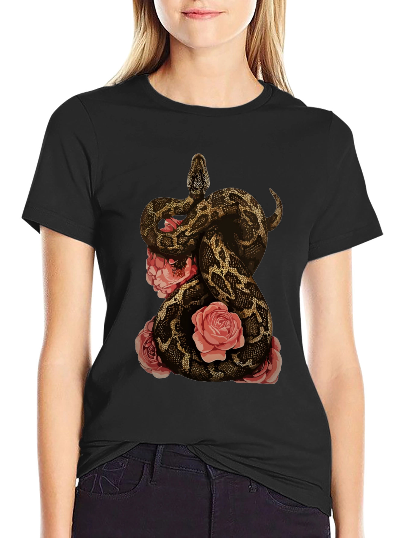 Camiseta Negra con Diseño de Serpiente y Rosas