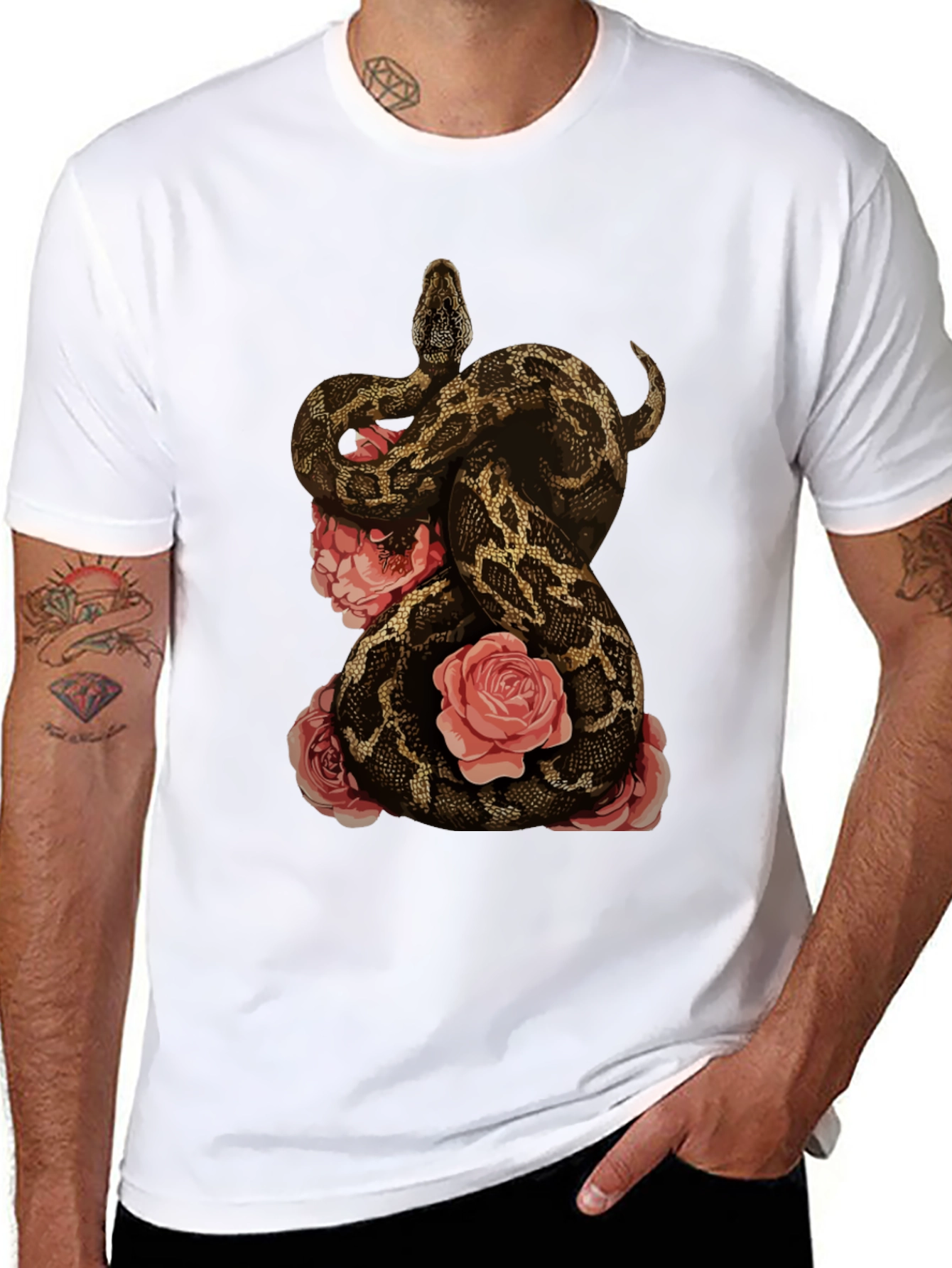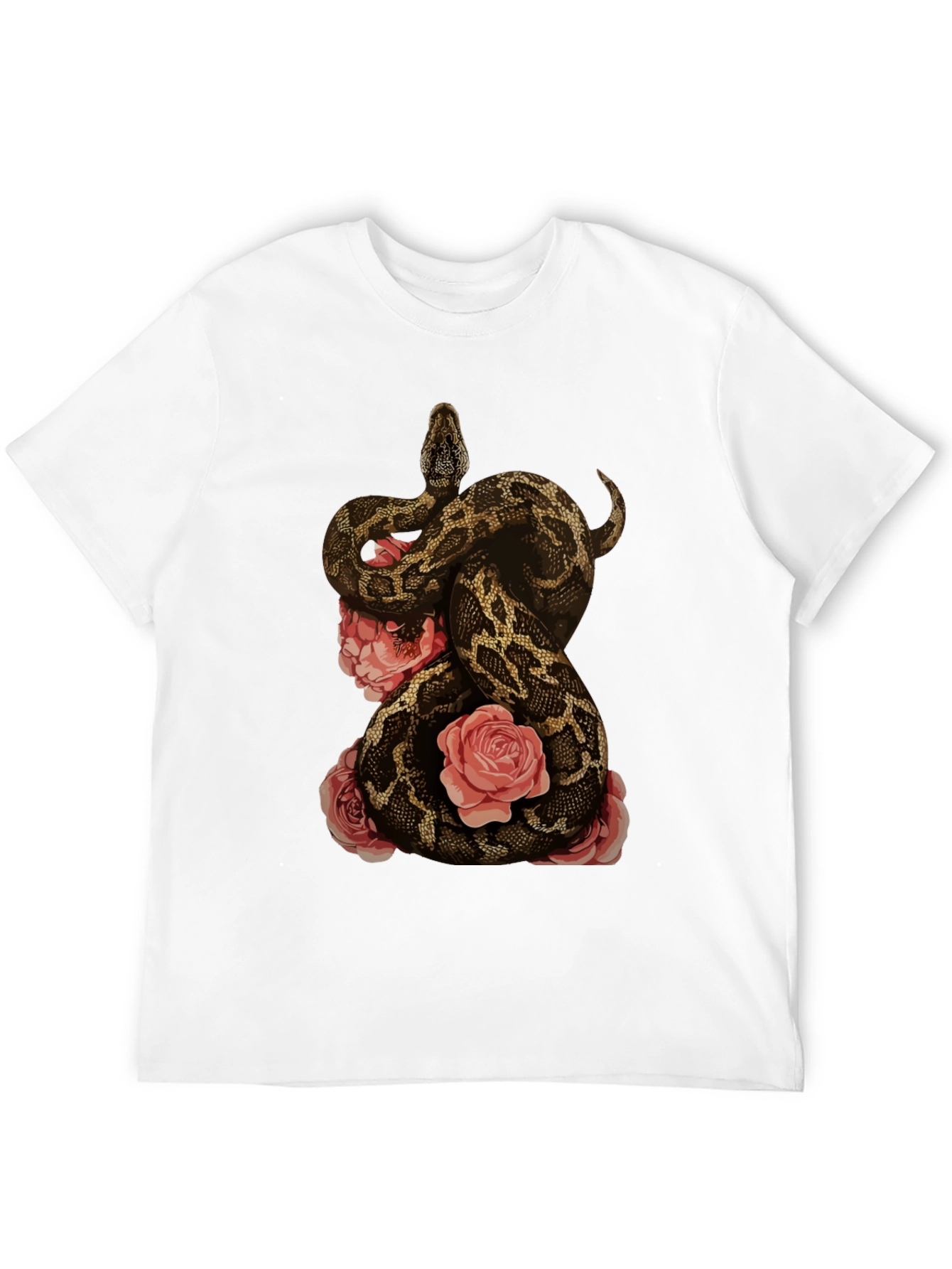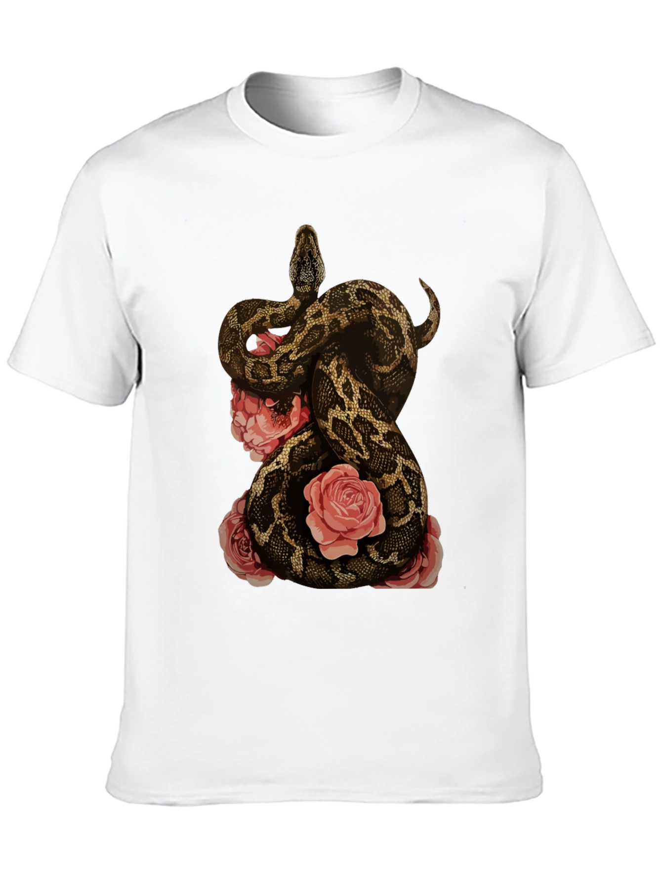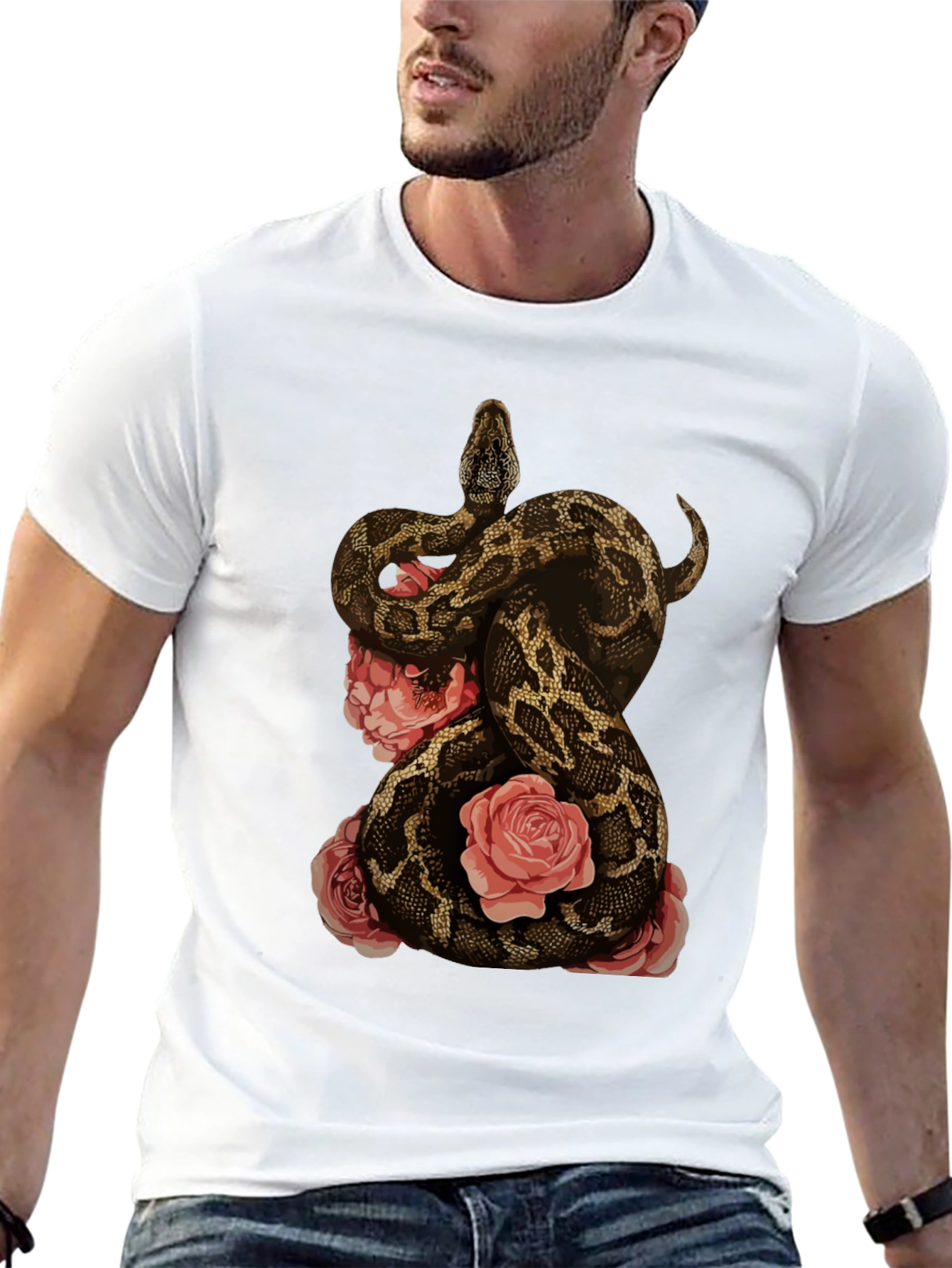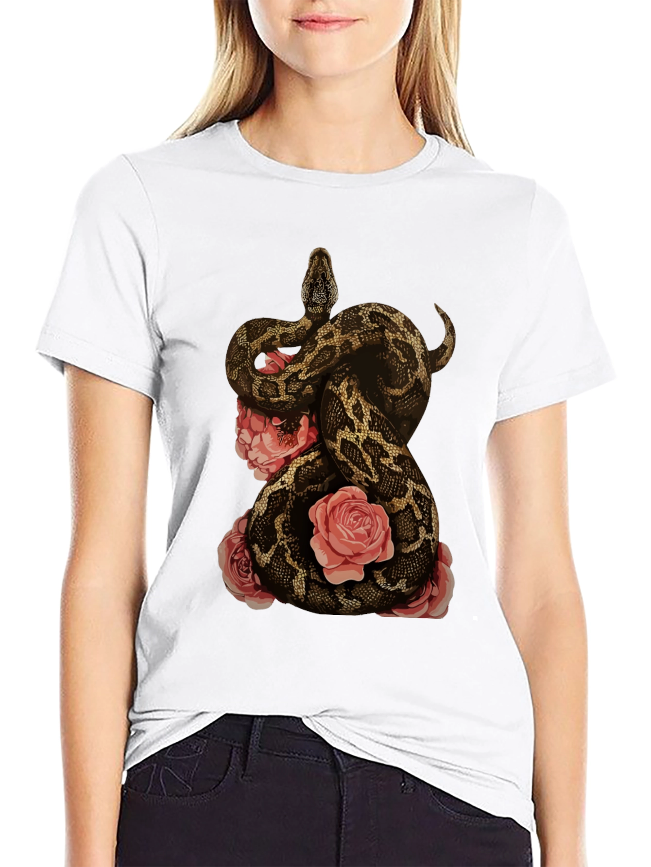 Camiseta Negra con Diseño de Serpiente y Rosas