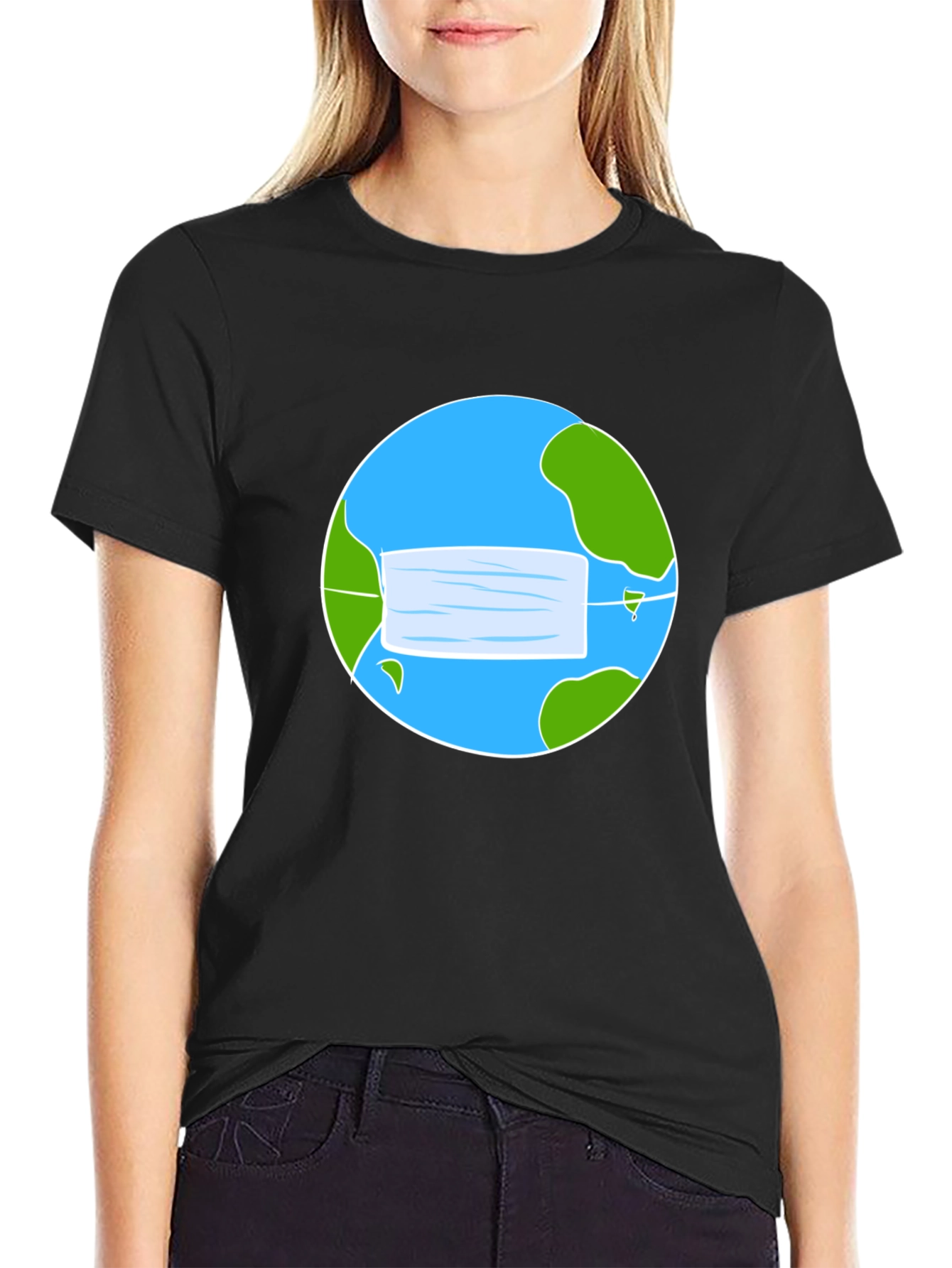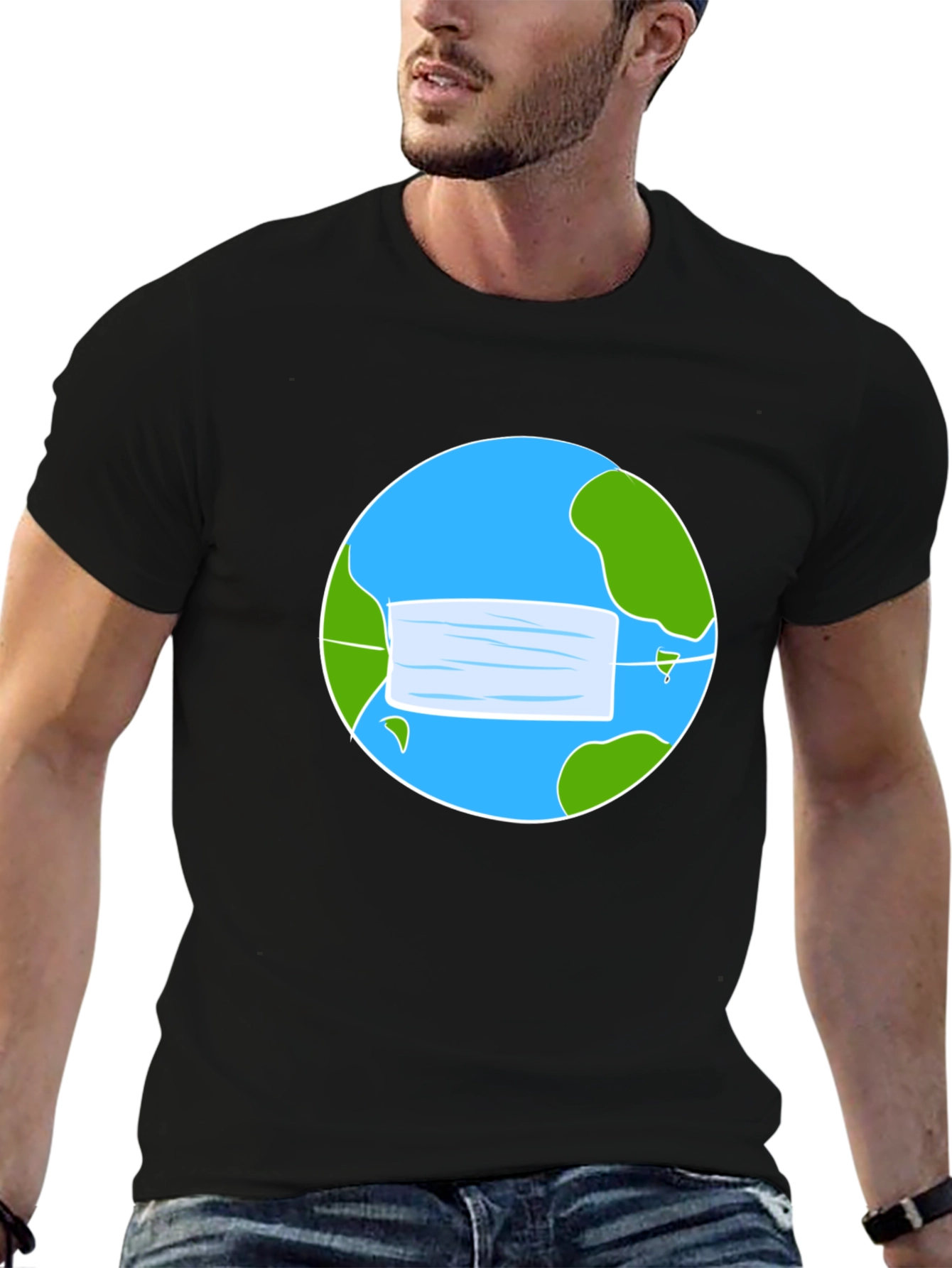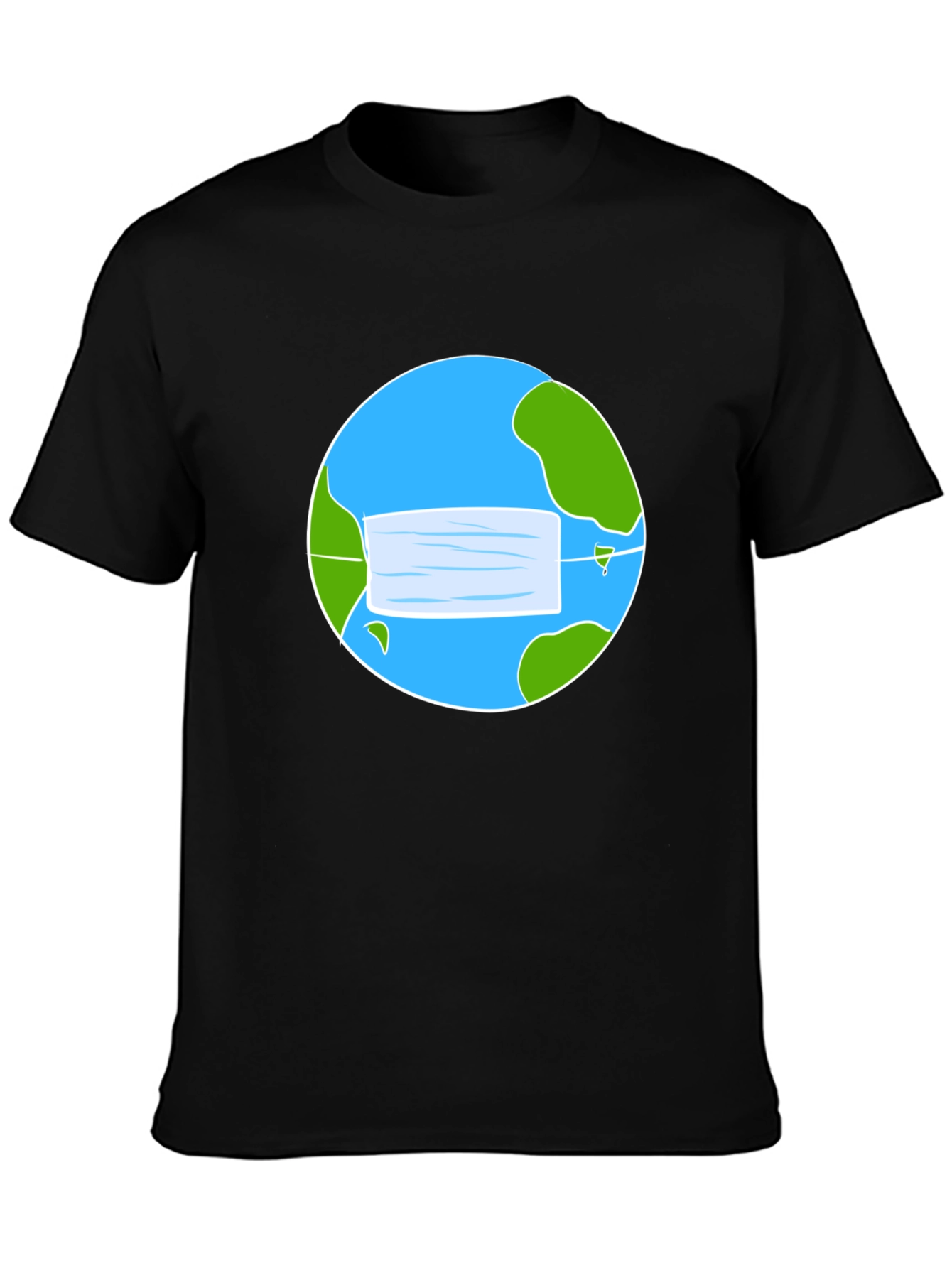 Camiseta Negra con Diseño de Tierra y Mascarilla