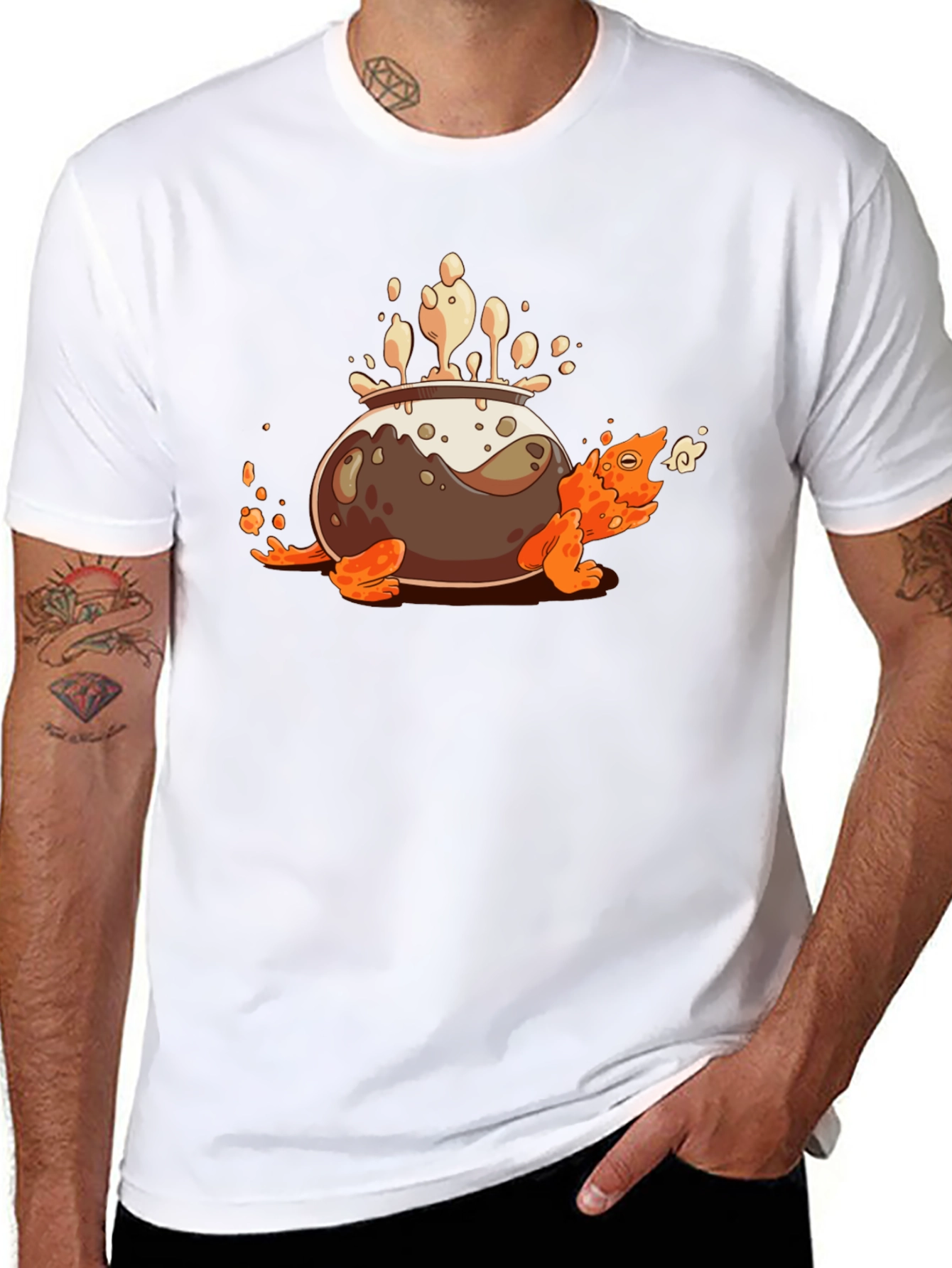 Esta llamativa camiseta negra presenta un diseño único y caricaturesco: una tortuga anaranjada lleva sobre su caparazón una olla mágica de la que burbujea un líquido misterioso. Perfecta para aquellos que buscan expresar su individualidad y sentido del humor. Confeccionada en un material suave y cómodo, ideal para uso diario. Destaca por su originalidad y es una excelente opción para regalar a amigos o familiares que aprecien los diseños creativos y fuera de lo común. Añade un toque de fantasía a tu guardarropa con esta prenda única y divertida.