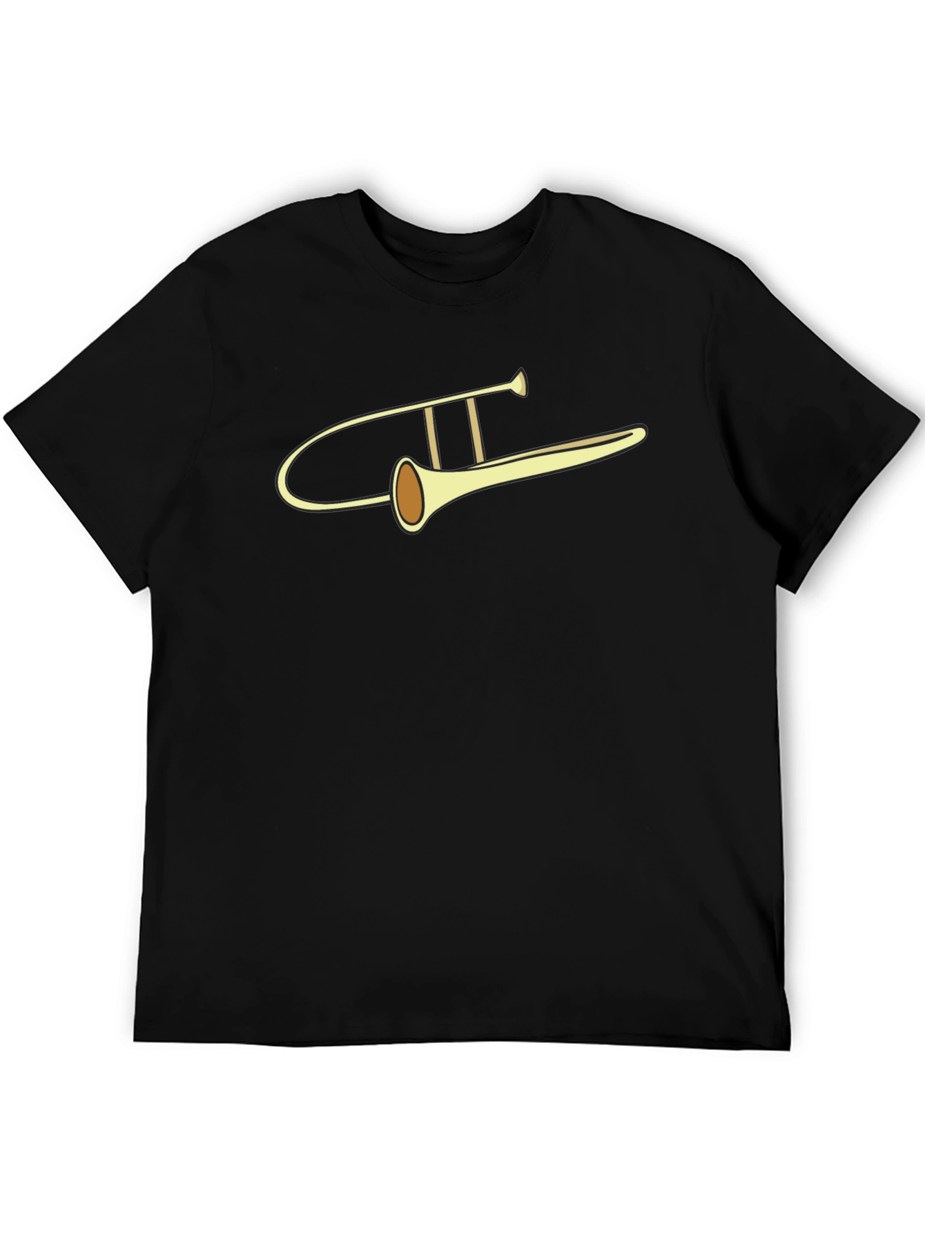 Muestra tu amor por la música con esta camiseta negra de manga corta. Presenta un llamativo diseño de trombón en color dorado y marrón, impreso con alta calidad para una mayor durabilidad. Fabricada con materiales suaves y cómodos, esta camiseta es perfecta para usar a diario, ya sea para ir a clases, ensayar con tu banda o simplemente para relajarte en casa. Un regalo ideal para músicos, estudiantes de música y amantes del jazz. ¡Consigue la tuya y haz una declaración musical!