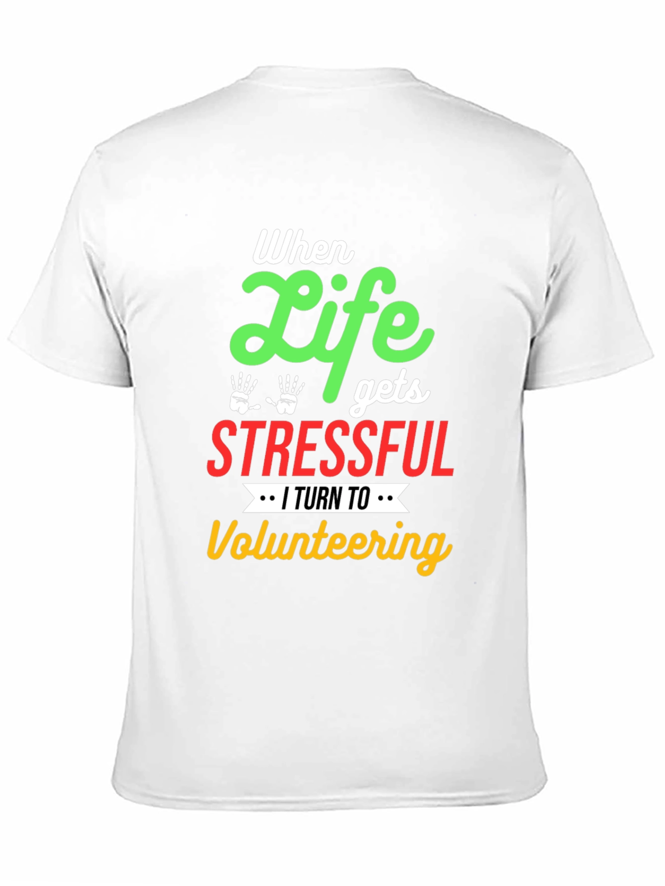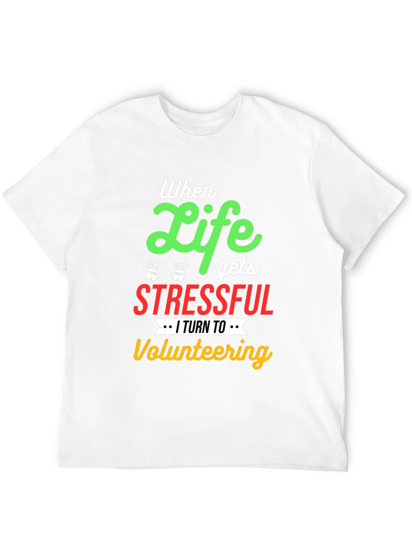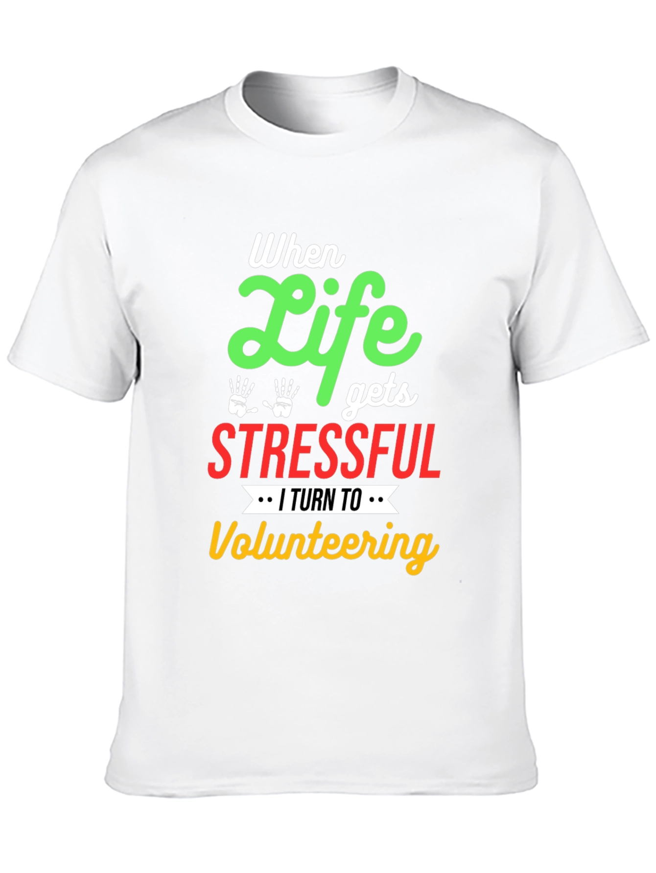 Esta camiseta negra presenta un diseño llamativo y motivador, ideal para aquellos que encuentran satisfacción en el voluntariado. El texto "When Life Gets Stressful... I Turn To Volunteering" destaca en una combinación de colores verde, rojo y amarillo, con un estilo de fuente divertido y moderno. Las pequeñas ilustraciones de manos añaden un toque creativo al diseño. Perfecta para usar en eventos de voluntariado, actividades comunitarias o simplemente para expresar tu pasión por ayudar a los demás. Fabricada con materiales cómodos y duraderos, esta camiseta es una excelente opción para mostrar tu compromiso con el servicio a la comunidad. Una prenda que no solo te hará lucir bien, sino que también transmitirá un mensaje positivo.