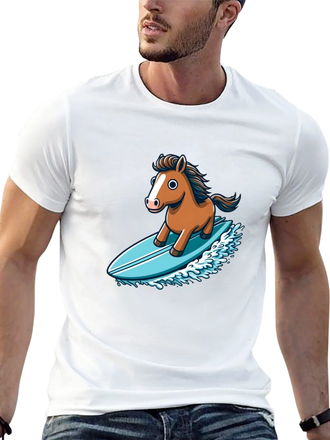 ¡Prepárate para las olas con esta original camiseta negra! Presenta un diseño divertido de un adorable caballo marrón sobre una tabla de surf azul, listo para conquistar el mar. Perfecta para los amantes de los animales y el surf, esta camiseta es ideal para lucir un estilo relajado y lleno de alegría. Su diseño llamativo seguro que atraerá miradas y despertará sonrisas. Fabricada con materiales cómodos y duraderos, esta camiseta es perfecta para usar en la playa, en la ciudad o en cualquier lugar donde quieras expresar tu personalidad única y divertida. ¡Añade un toque de humor y aventura a tu armario con esta increíble camiseta!