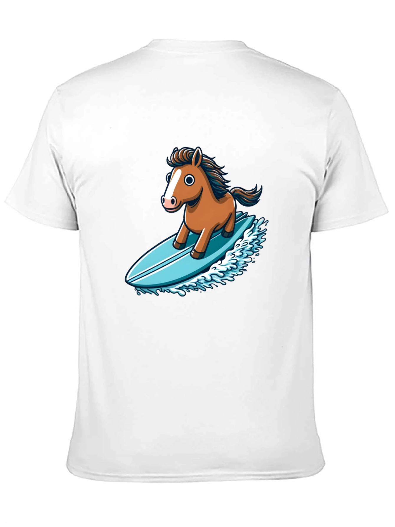 Camiseta Negra con Diseño Divertido de Caballo Surfista