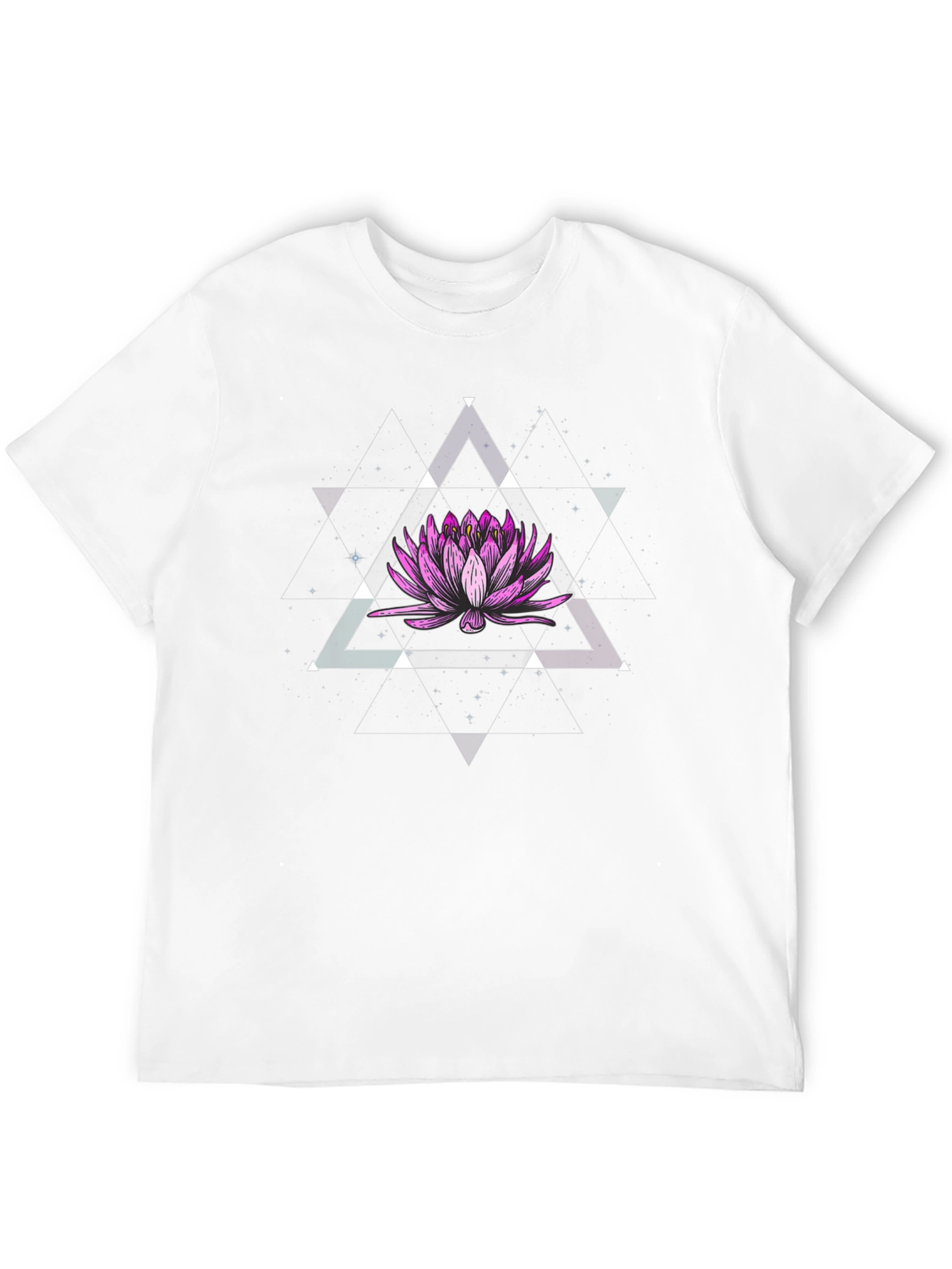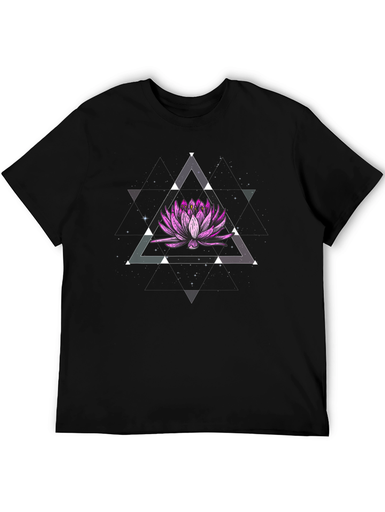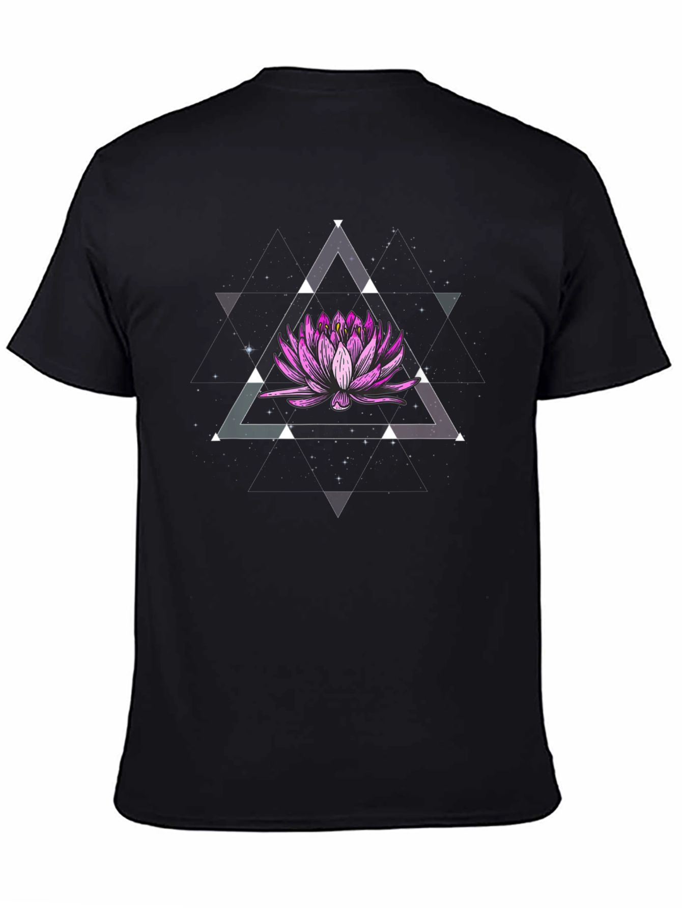Luce un estilo único con esta camiseta negra de manga corta. El diseño presenta una llamativa flor de loto colorida enmarcada en una figura geométrica triangular con un fondo que evoca el espacio estelar. Perfecta para expresar tu individualidad y pasión por el arte y la naturaleza. Confeccionada con materiales de alta calidad para garantizar comodidad y durabilidad. Ideal para uso diario, eventos casuales o como un regalo original para alguien especial. ¡Añade un toque de misticismo y estilo a tu guardarropa con esta prenda excepcional!