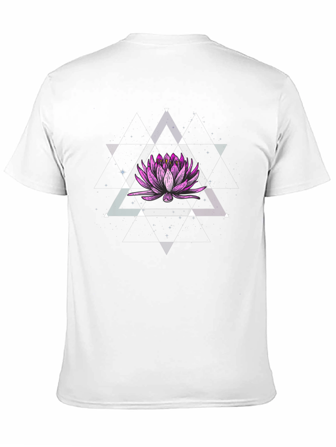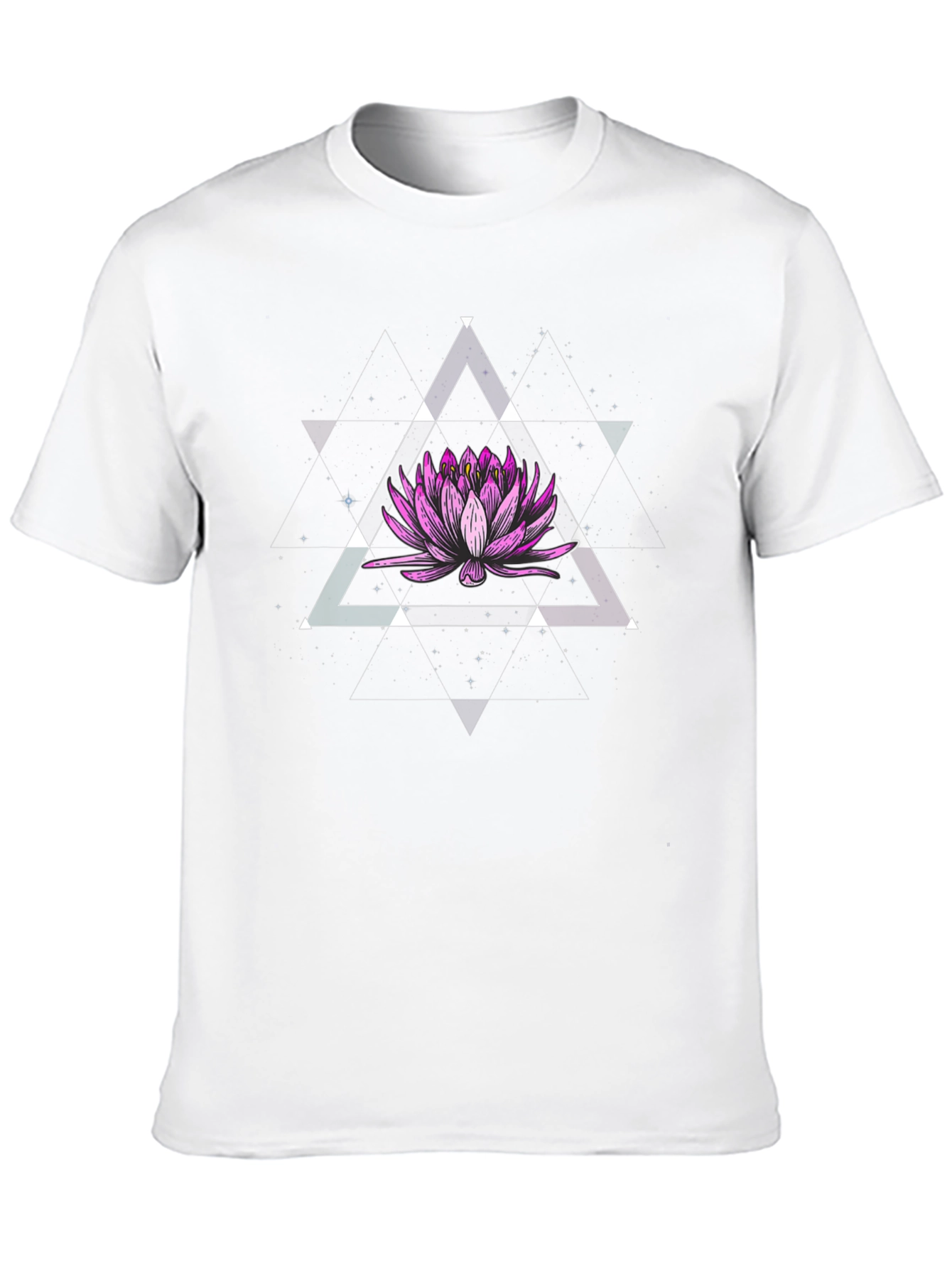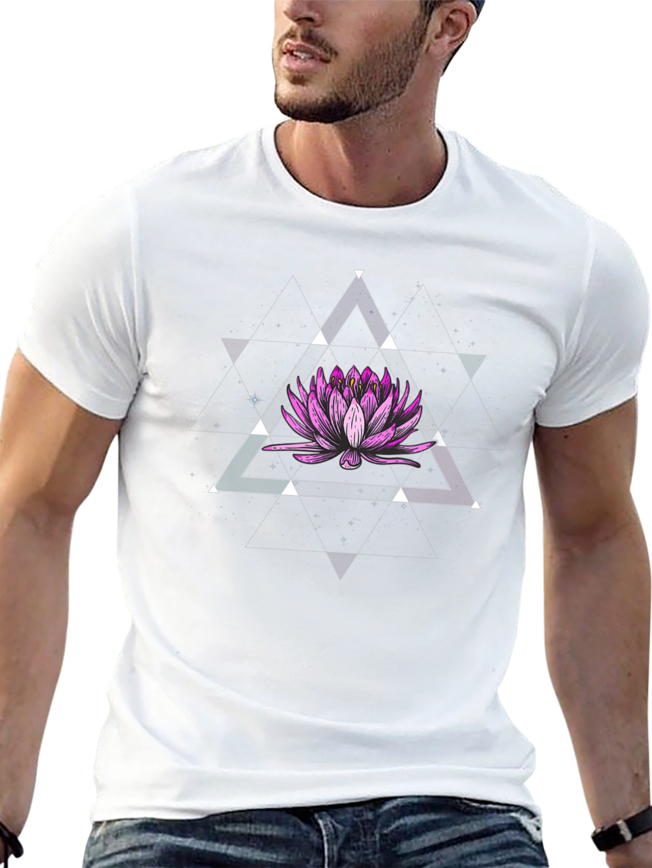 Luce un estilo único con esta camiseta negra de manga corta. El diseño presenta una llamativa flor de loto colorida enmarcada en una figura geométrica triangular con un fondo que evoca el espacio estelar. Perfecta para expresar tu individualidad y pasión por el arte y la naturaleza. Confeccionada con materiales de alta calidad para garantizar comodidad y durabilidad. Ideal para uso diario, eventos casuales o como un regalo original para alguien especial. ¡Añade un toque de misticismo y estilo a tu guardarropa con esta prenda excepcional!