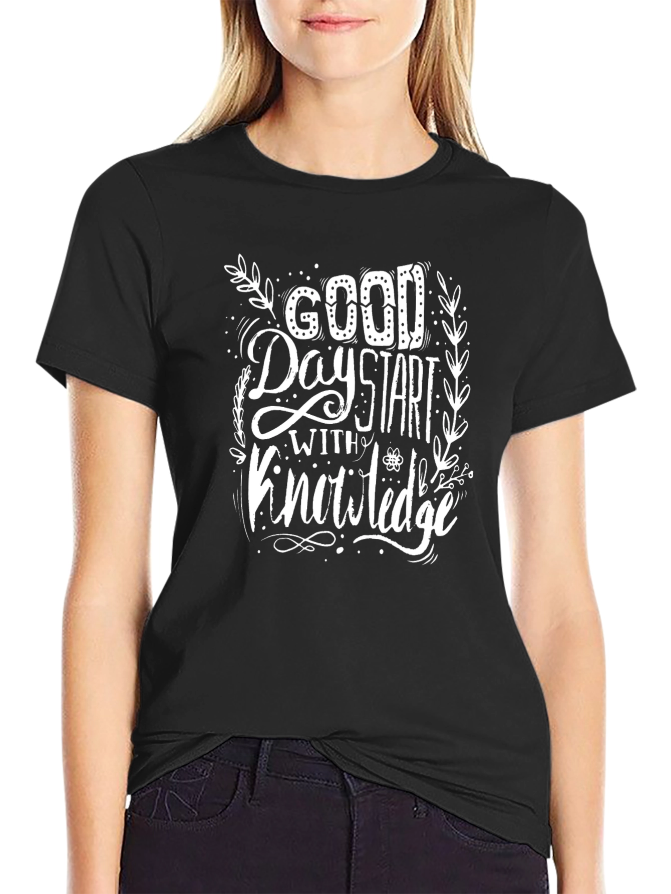 Camiseta Negra con Diseño Good Day Start With Knowledge