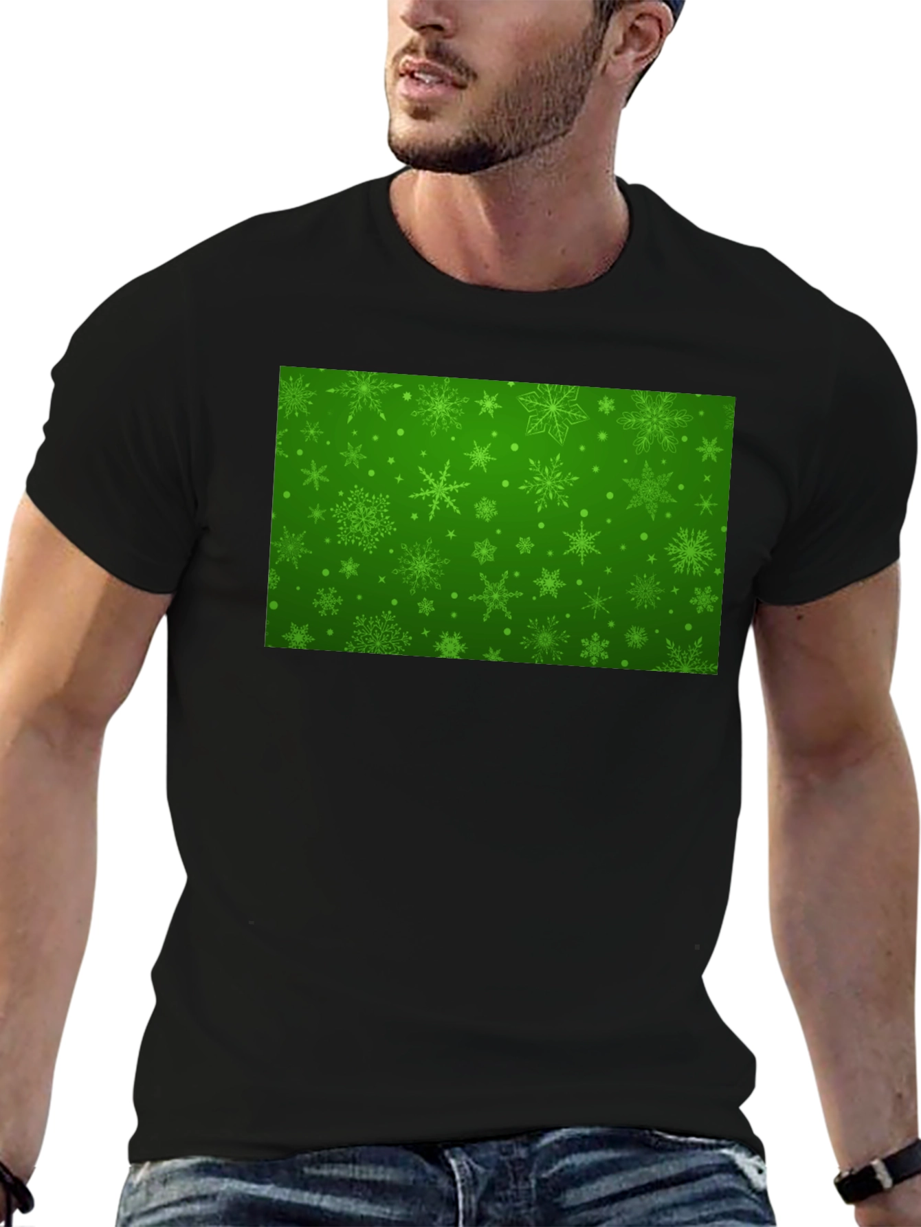 Camiseta Negra con Diseño Navideño Verde