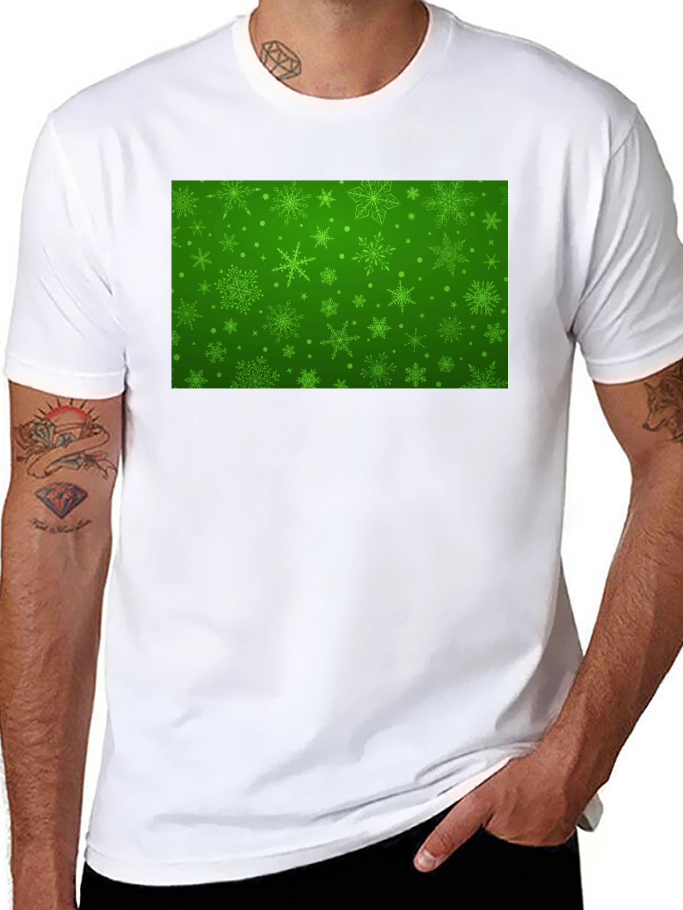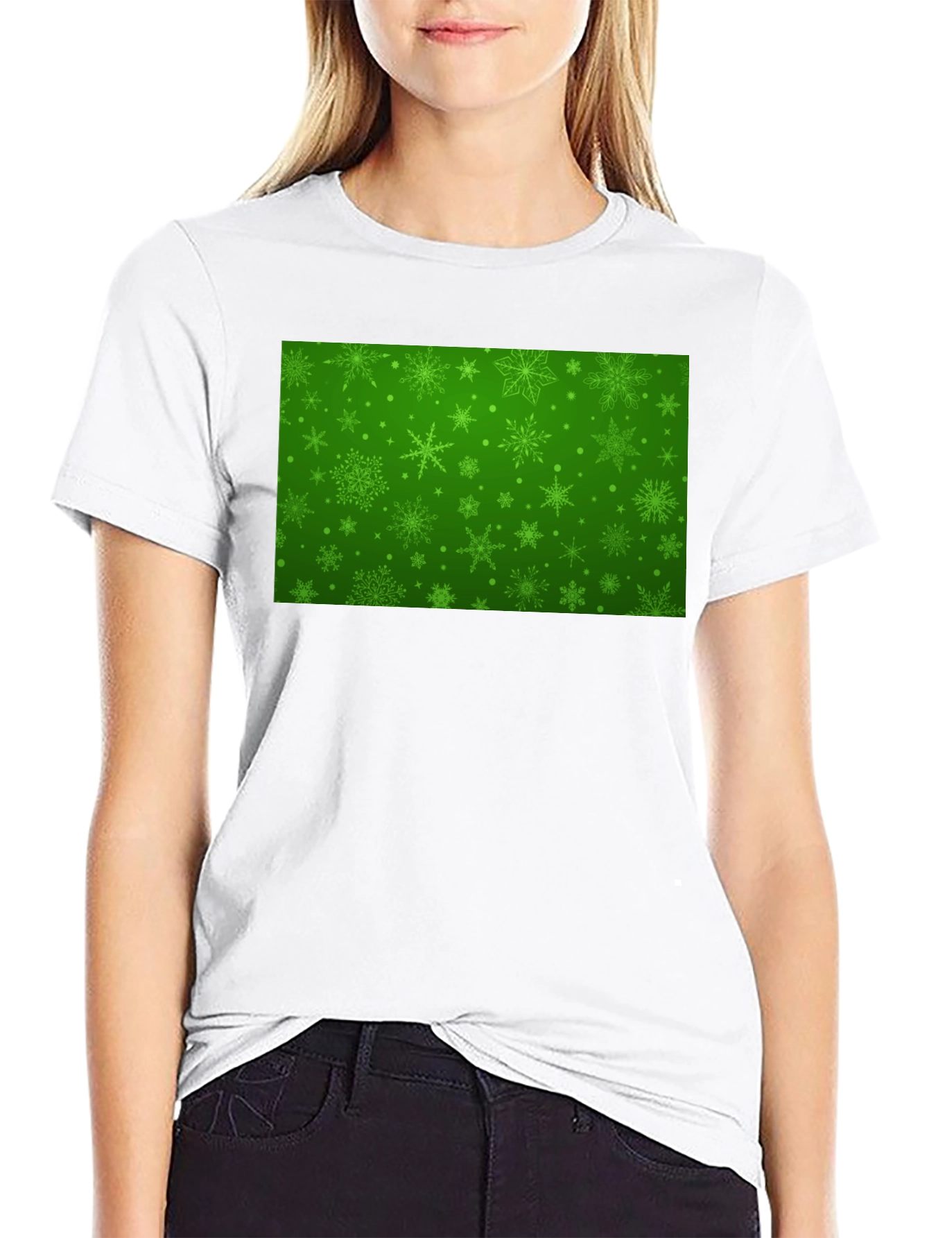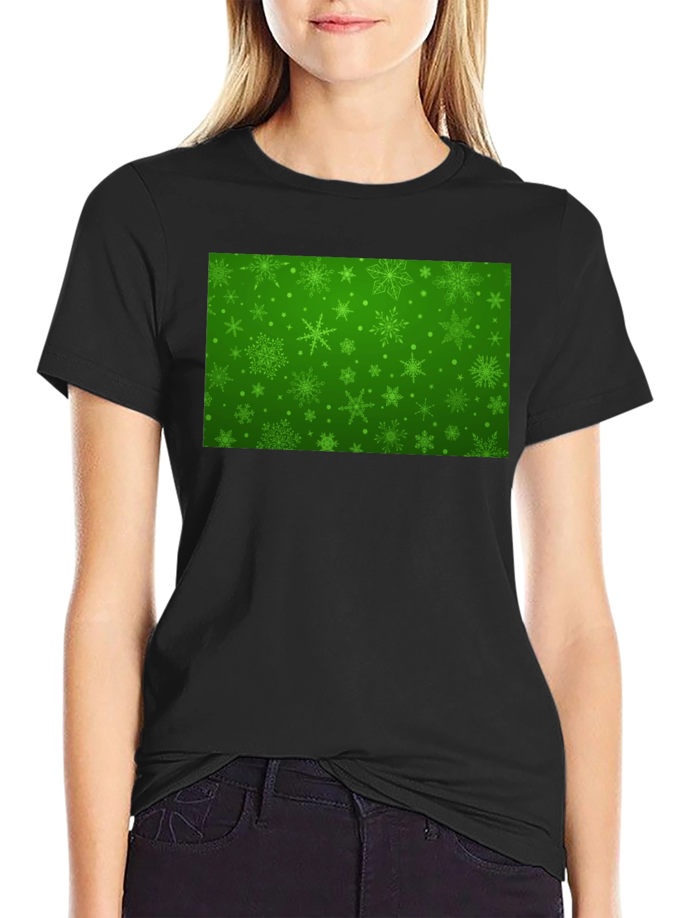 Luce esta llamativa camiseta negra con un festivo diseño navideño en el pecho. La impresión verde presenta un intrincado patrón de copos de nieve y puntos, creando un ambiente alegre y de celebración. Hecha de un material suave y cómodo, esta camiseta es perfecta para llevarla durante las fiestas, en reuniones familiares o en cualquier evento navideño informal. Su diseño único y llamativo te hará destacar entre la multitud y difundir el espíritu navideño a donde vayas. Combina esta camiseta con vaqueros, pantalones o incluso una falda para un look festivo y relajado. ¡Prepárate para recibir cumplidos y disfrutar de la temporada con estilo!
