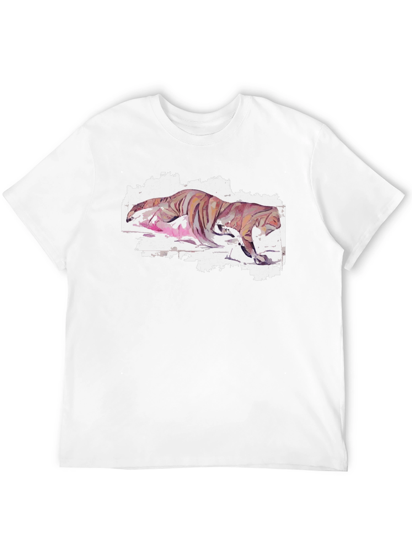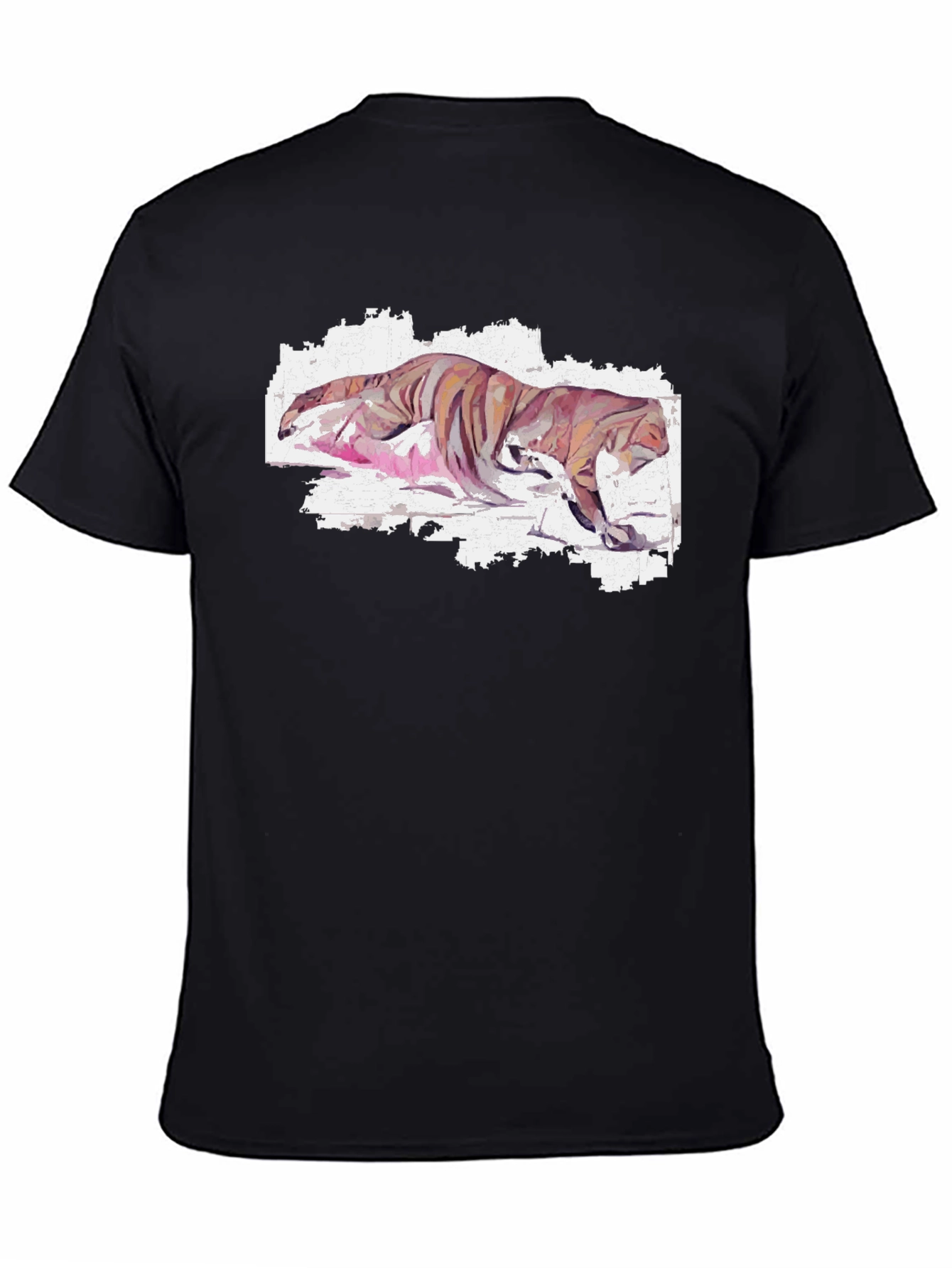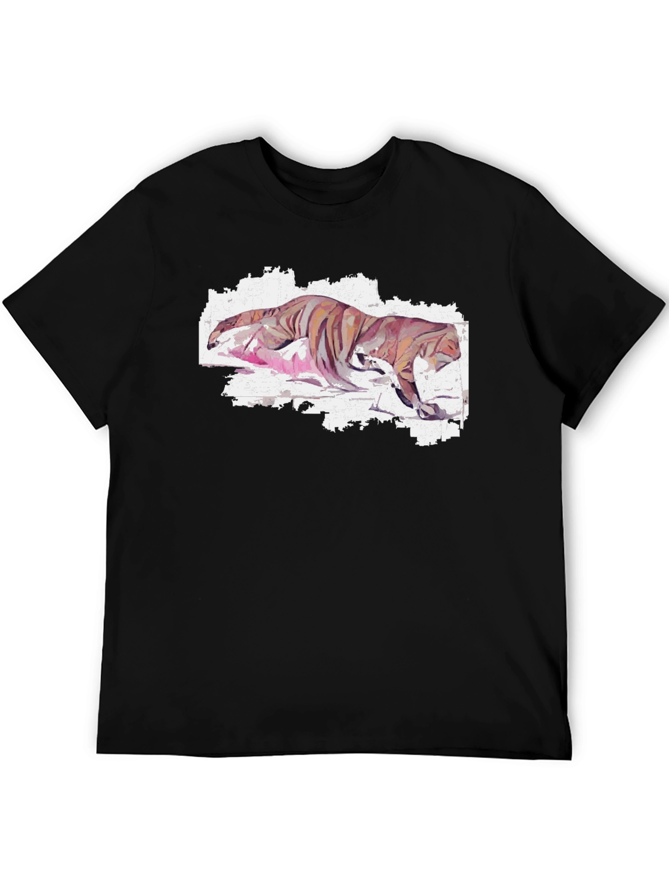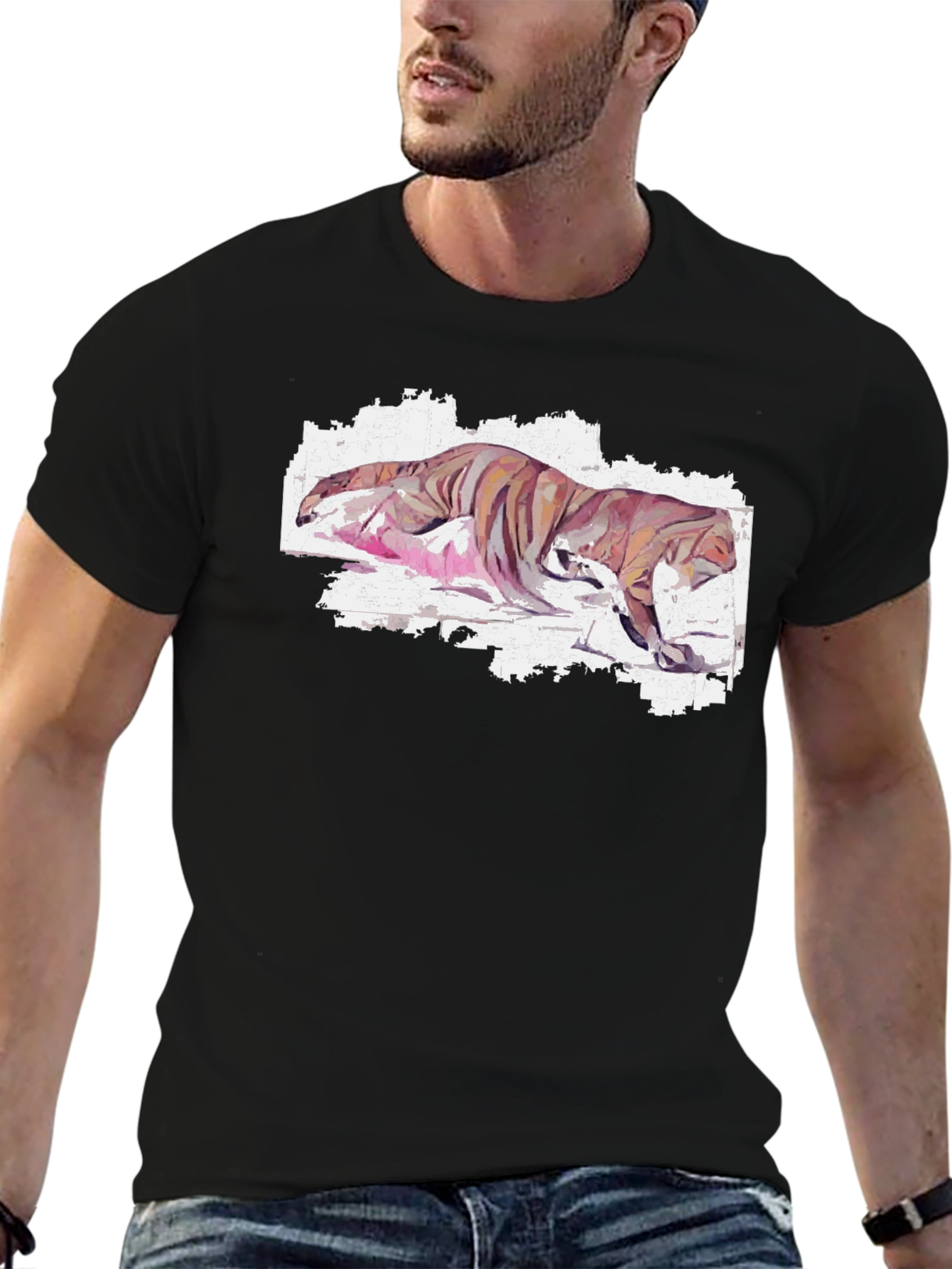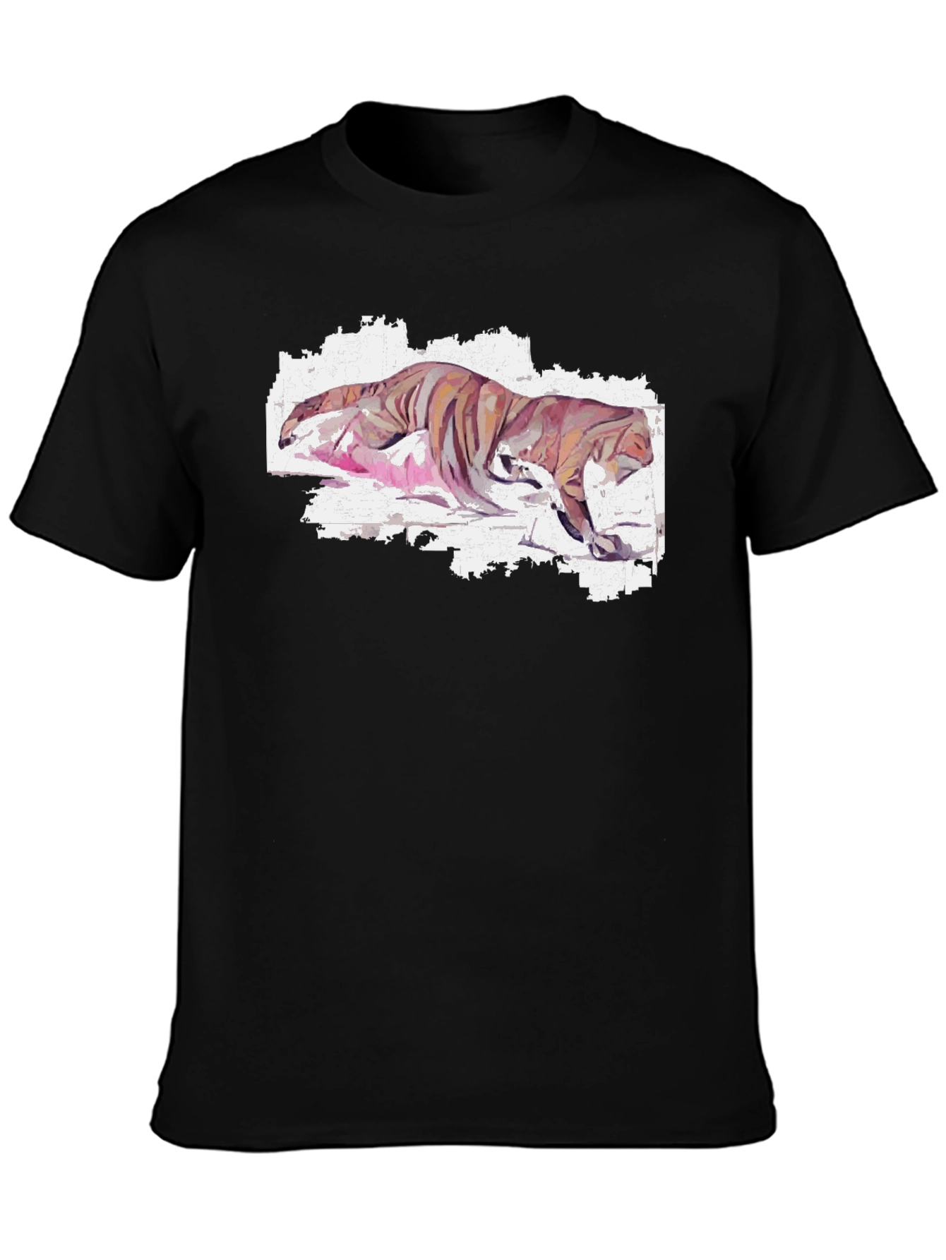 Luce esta llamativa camiseta negra con un diseño abstracto de tigre. La impresión presenta un estilo artístico único, con trazos que capturan la esencia salvaje del felino. Perfecta para expresar tu individualidad y pasión por la naturaleza. El tejido suave y cómodo la hace ideal para el uso diario, ya sea para un look casual o para destacar en una ocasión especial. Combina esta camiseta con tus jeans favoritos para un estilo relajado y moderno.
