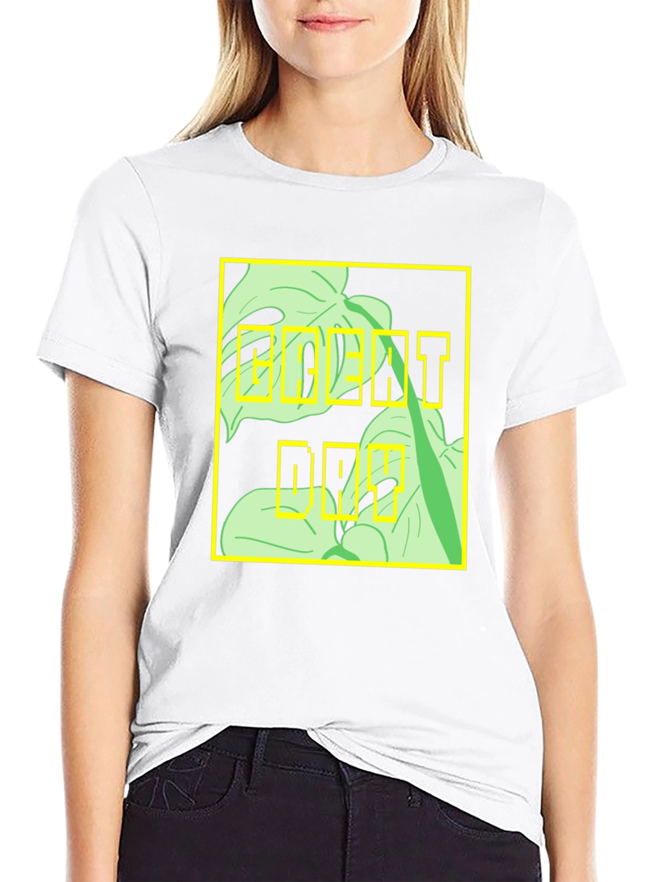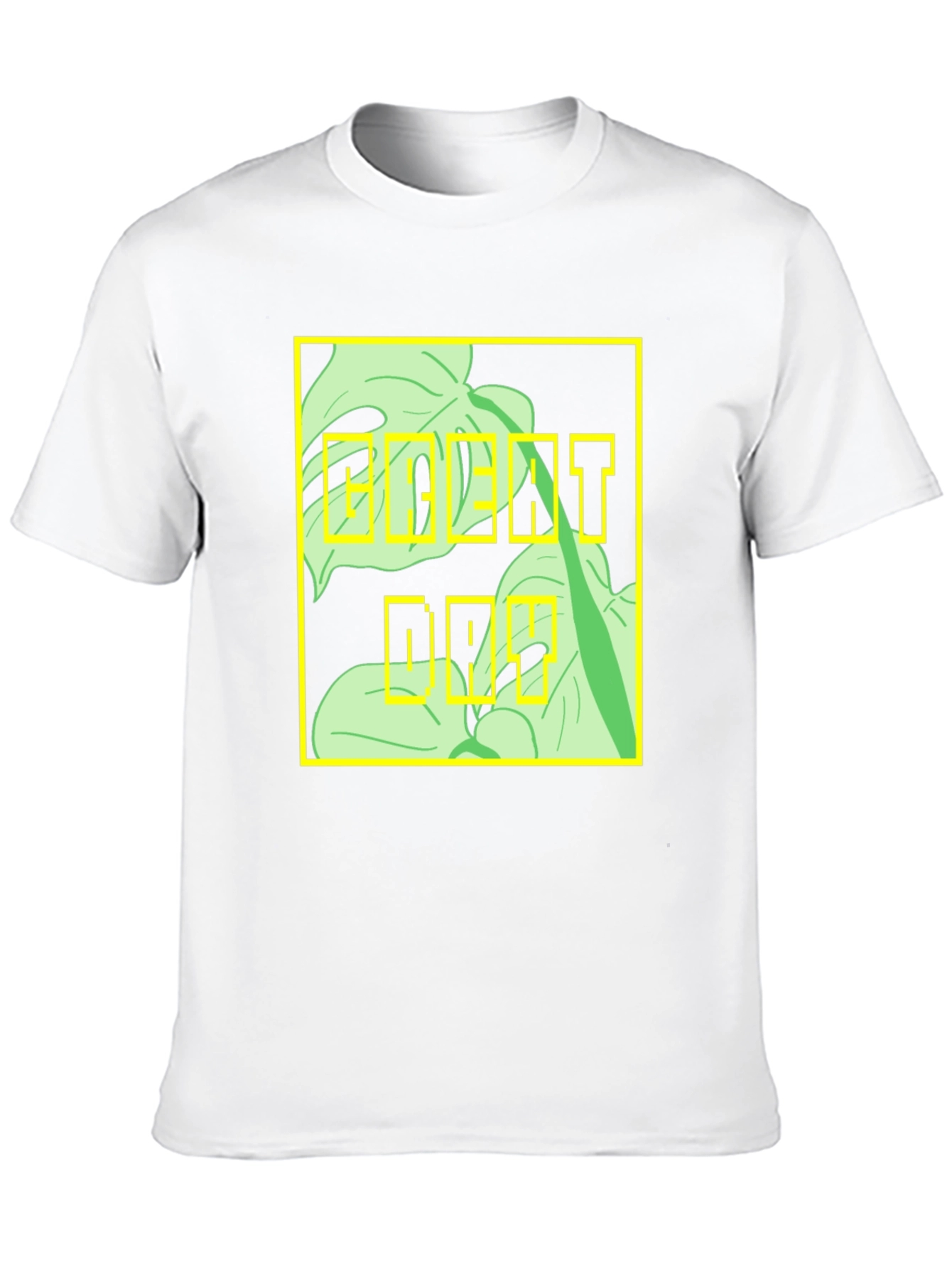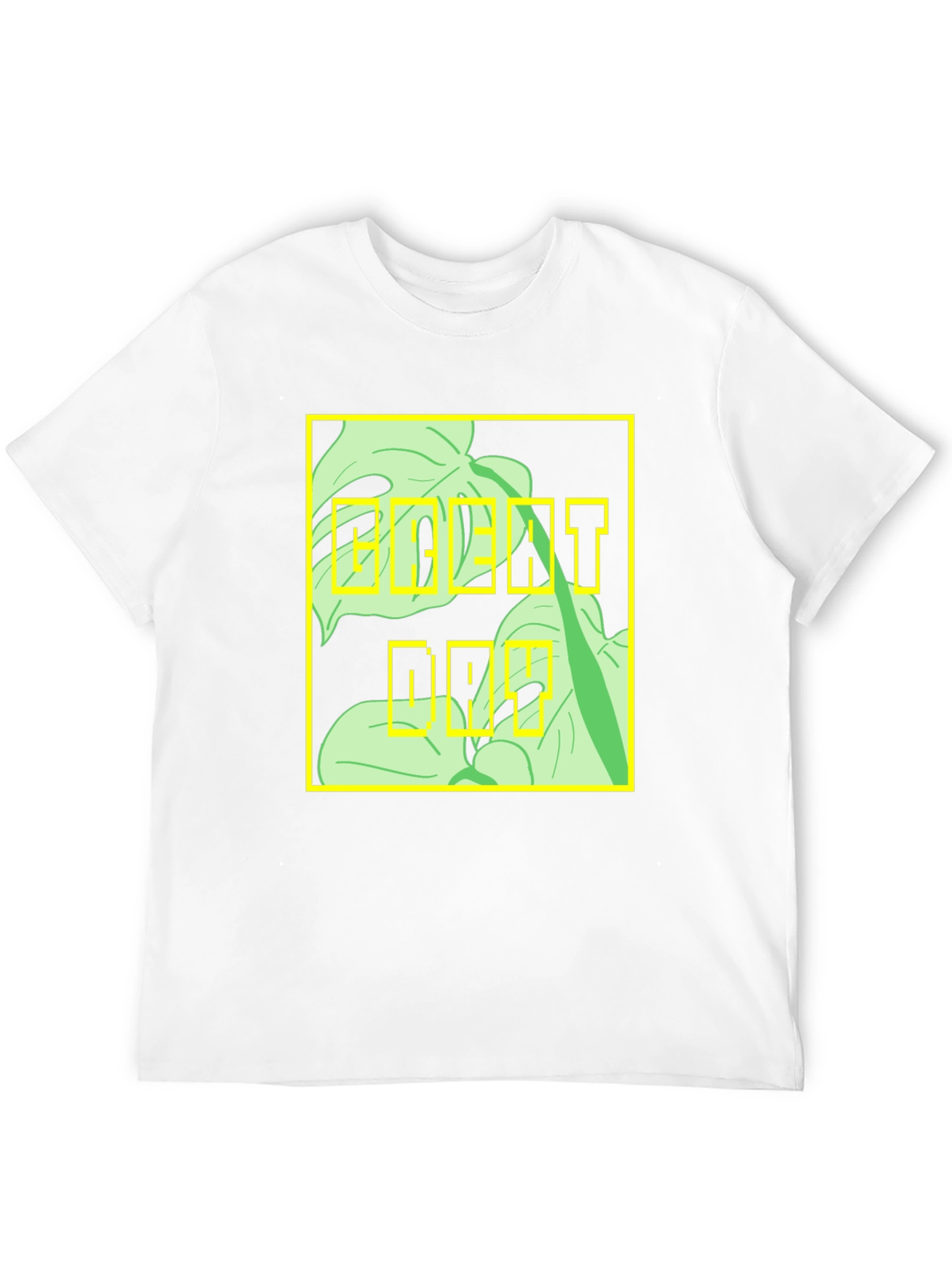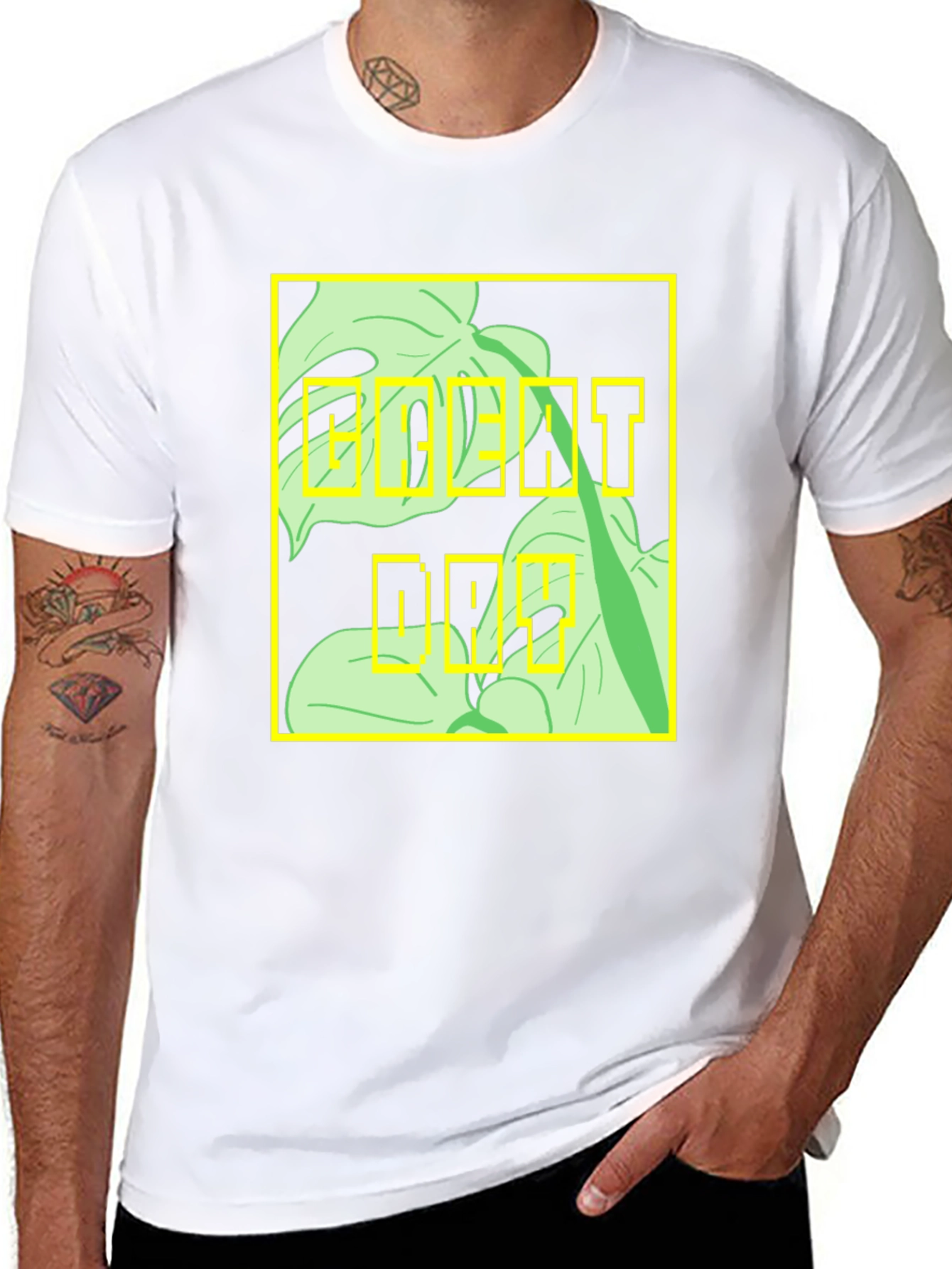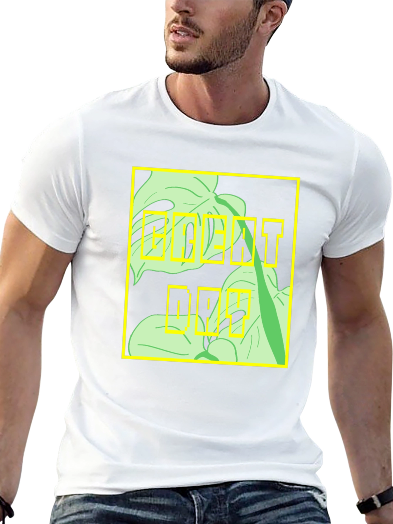 Luce un estilo fresco y moderno con esta camiseta negra de manga corta. Presenta un diseño llamativo con hojas tropicales en tonos verde claro y vibrantes detalles amarillos. El estampado cuadrado encapsula las hojas y un texto audaz en amarillo, creando un contraste visual impactante. Ideal para un look casual y relajado, perfecta para combinar con jeans o pantalones cortos. Fabricada con materiales suaves y cómodos, esta camiseta te brindará confort durante todo el día. ¡Añade un toque tropical a tu guardarropa con esta pieza única!