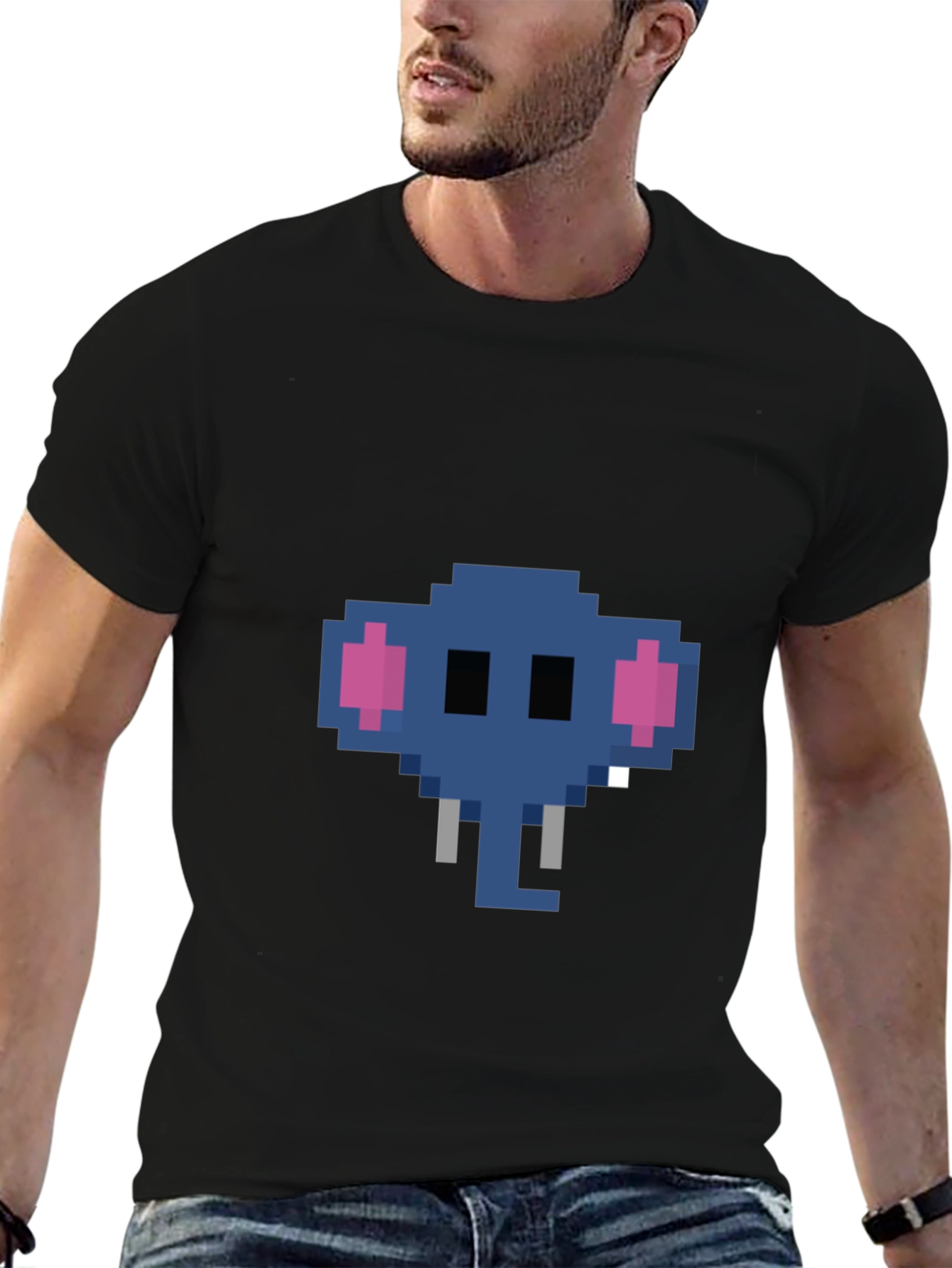 Luce un estilo original con esta camiseta negra de manga corta. Presenta un diseño divertido y retro de un elefante pixelado en tonos azules y rosas. Perfecta para añadir un toque único a tu vestuario casual. Ideal para llevar en el día a día, eventos informales o para expresar tu personalidad con un guiño a la estética de videojuegos clásicos. Fabricada con materiales suaves y cómodos, esta camiseta te asegura confort y estilo en cada ocasión. ¡Hazte con esta prenda y destaca con un look desenfadado y lleno de encanto!