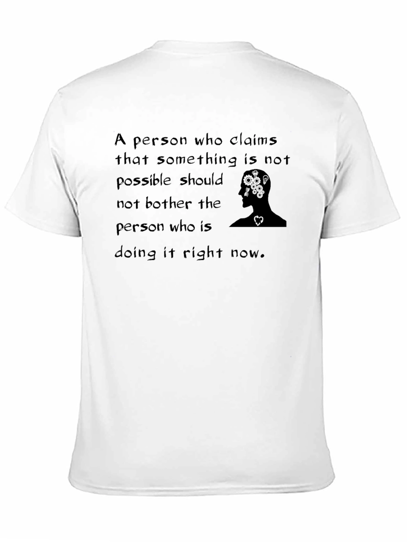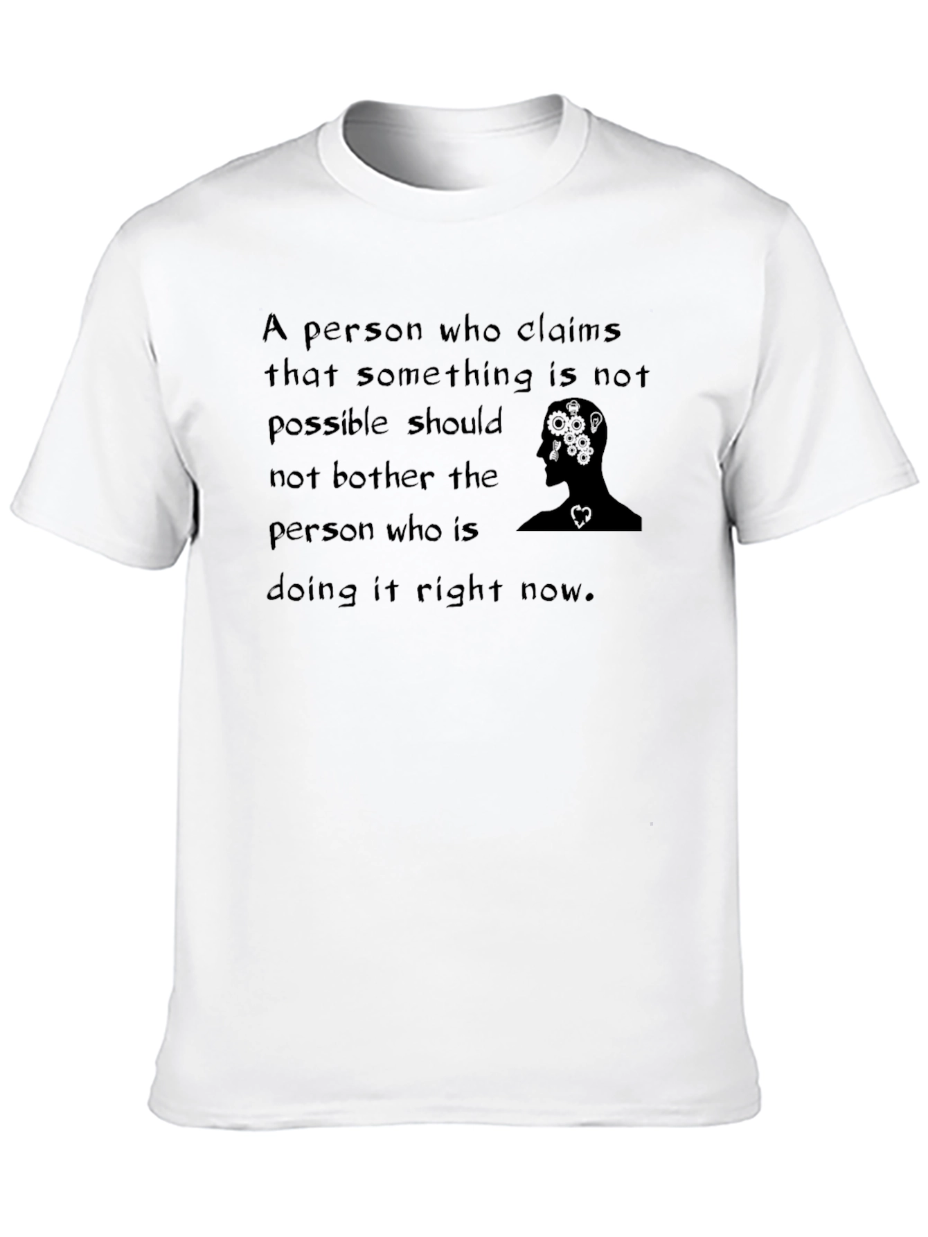 Esta camiseta negra de manga corta presenta un diseño inspirador. Fabricada con un tejido suave y cómodo, la camiseta exhibe una frase motivacional en letras sutiles, acompañada de una ilustración de una cabeza con engranajes y un corazón, simbolizando el poder del pensamiento y la pasión. Perfecta para el uso diario, esta prenda es ideal para aquellos que buscan expresar su optimismo y determinación. Su diseño versátil permite combinarla fácilmente con diferentes estilos. Ya sea para un look casual o para complementar un outfit más elaborado, esta camiseta te brindará comodidad y estilo en cada momento.