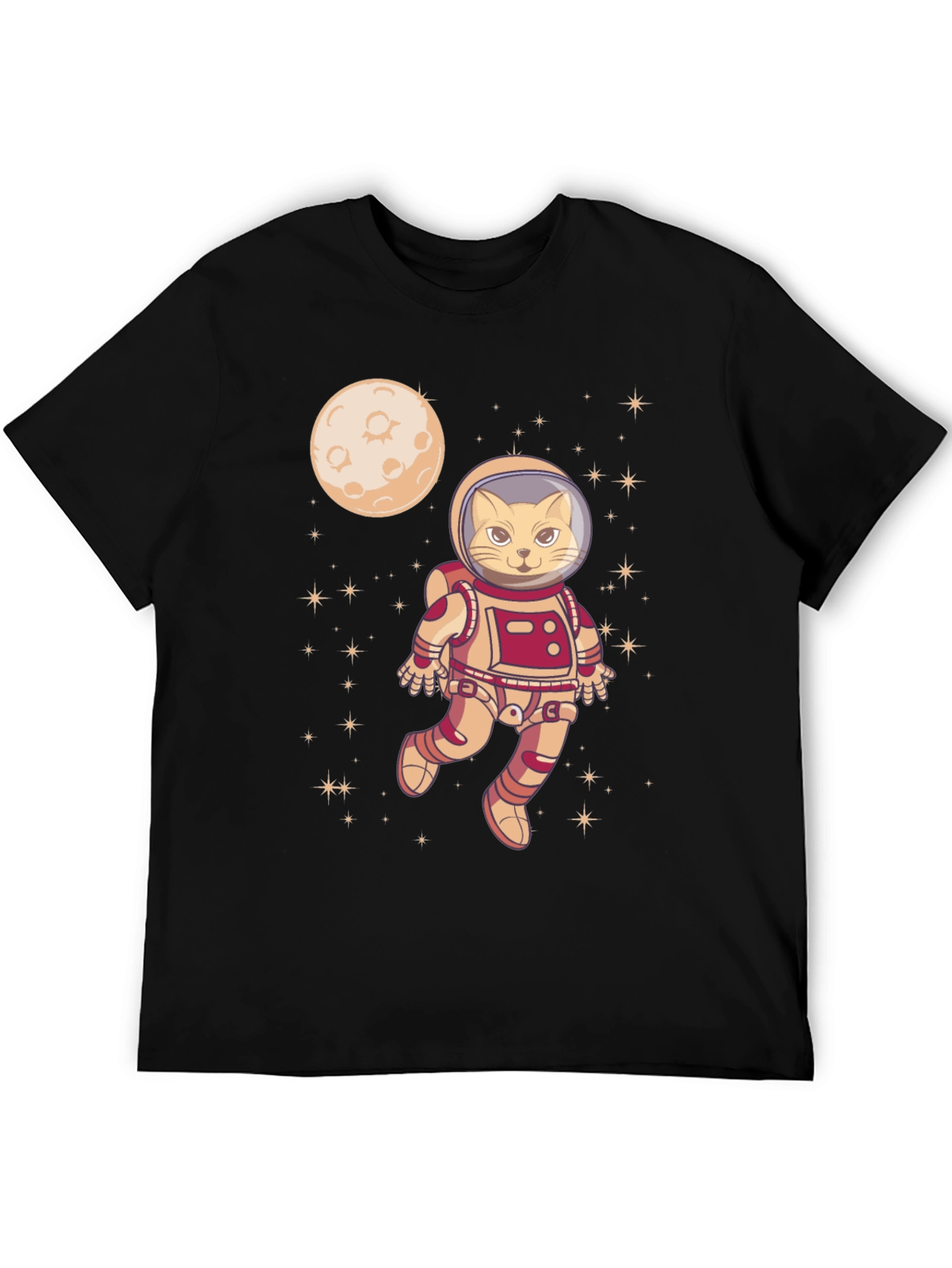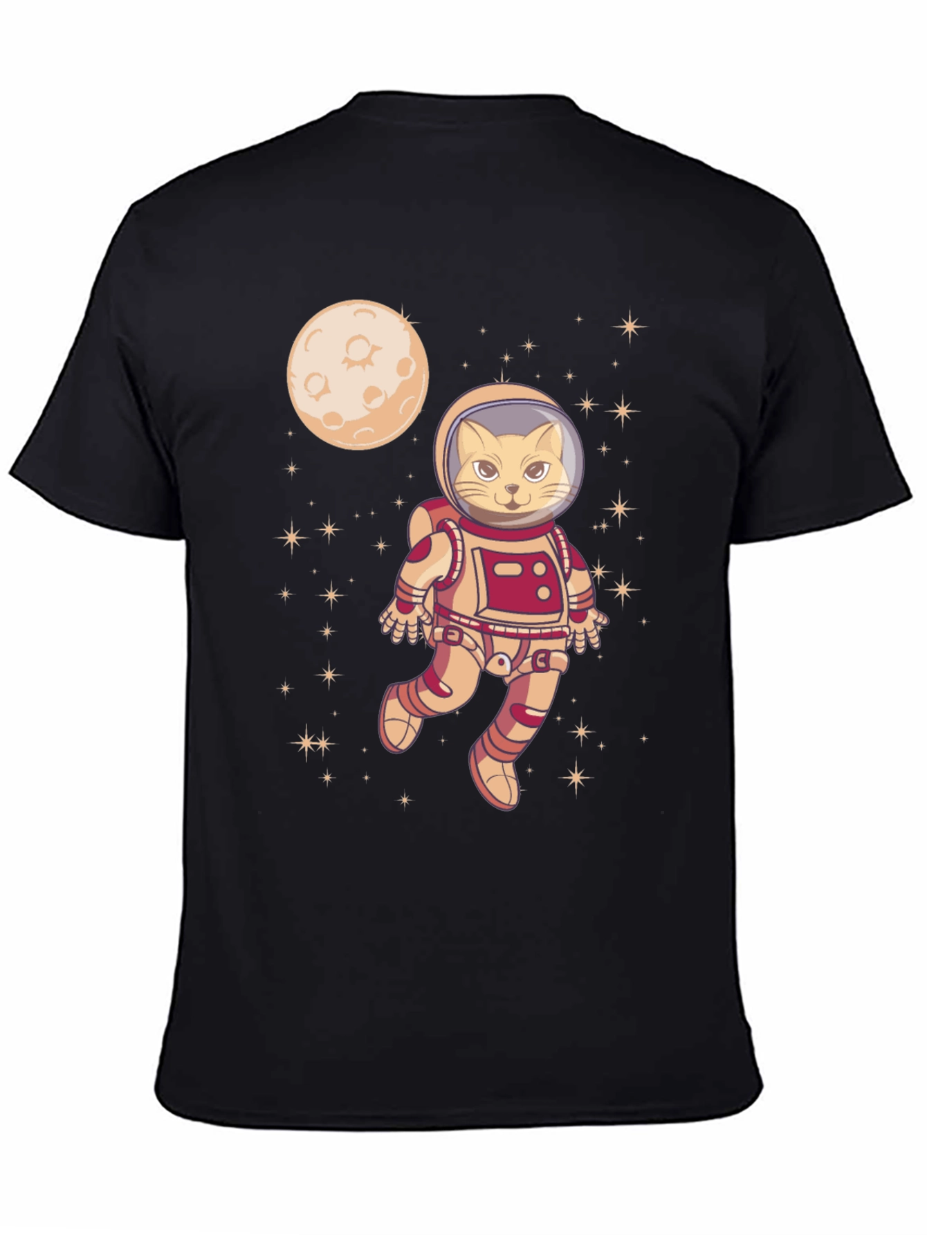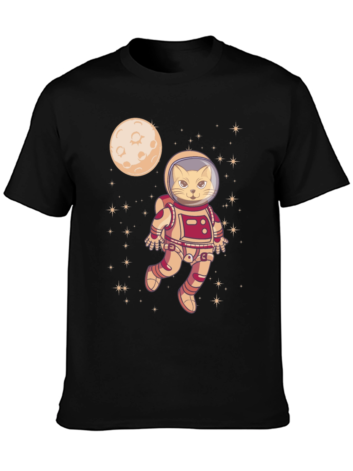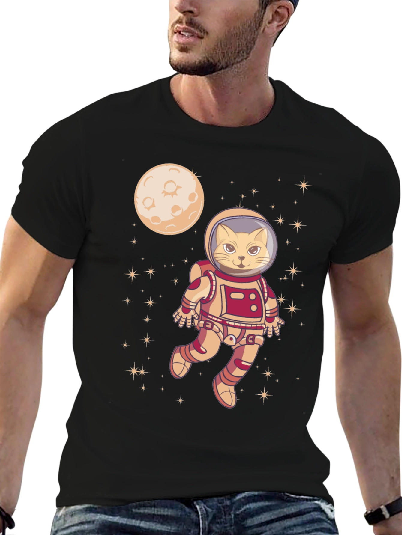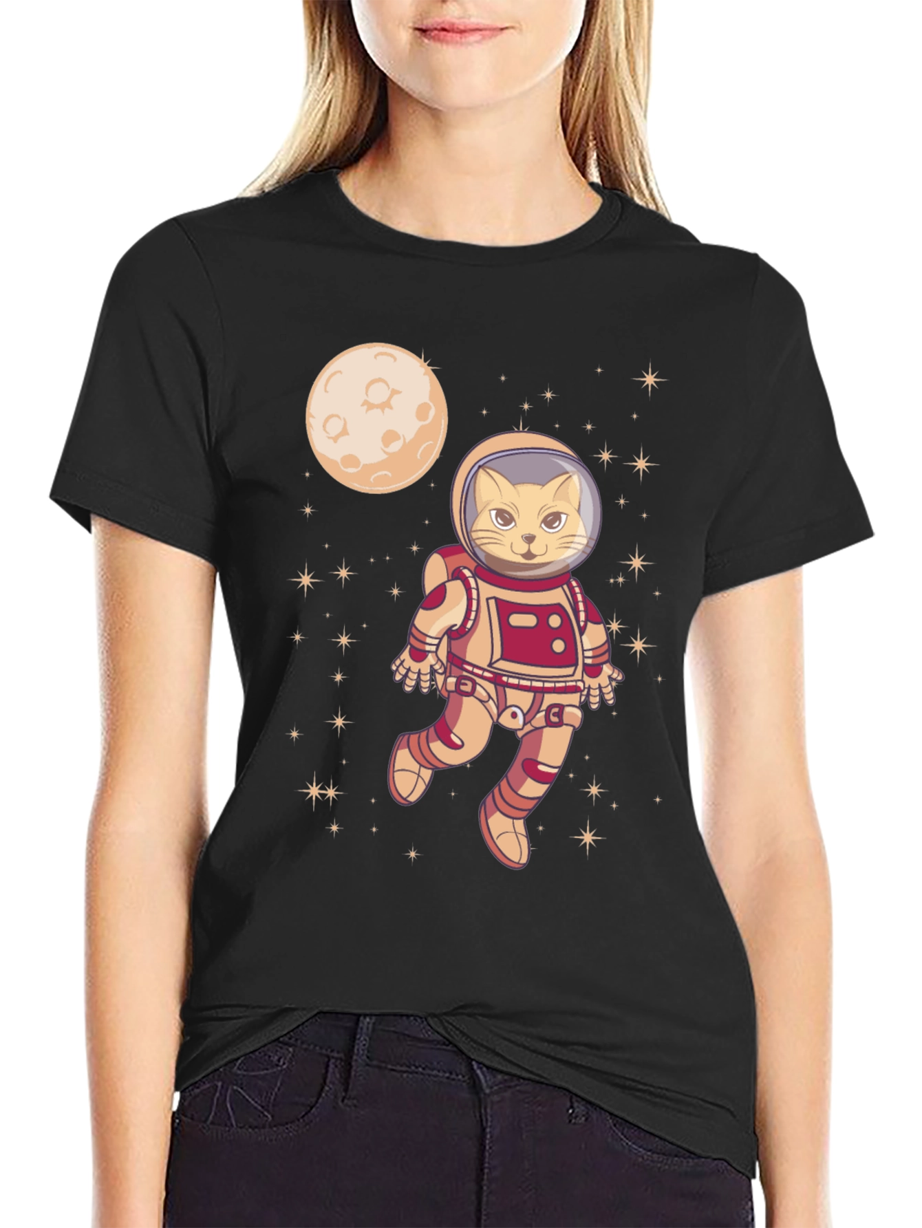Luce esta original camiseta negra con un divertido diseño de un gato astronauta flotando en el espacio. La ilustración muestra un adorable felino con traje espacial, rodeado de estrellas brillantes y la luna. Perfecta para los amantes de los gatos y la astronomía, esta camiseta es ideal para usar a diario, expresar tu personalidad única y llamar la atención con un toque de humor. Confeccionada con materiales cómodos y de alta calidad, esta camiseta te ofrece estilo y confort en cada uso. ¡Deja que este gato espacial te acompañe en tus aventuras cotidianas!
