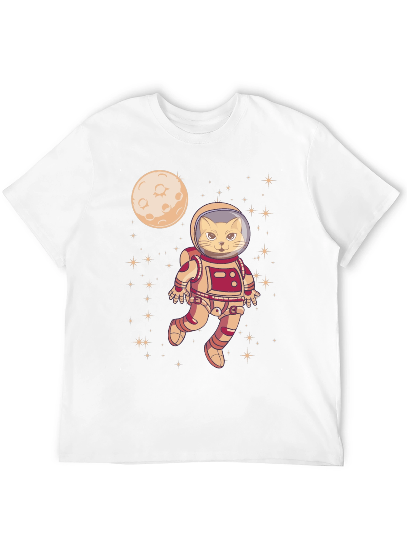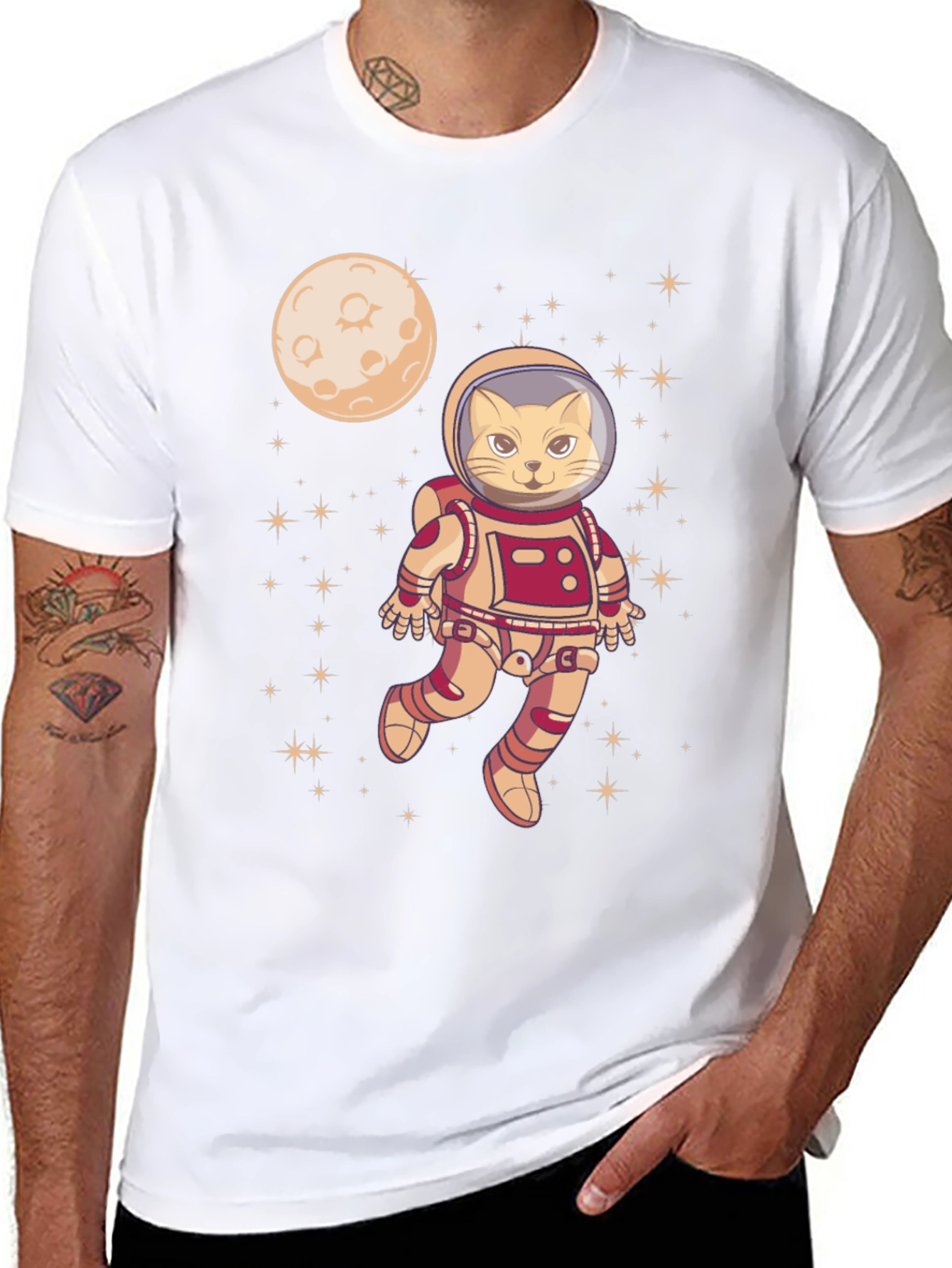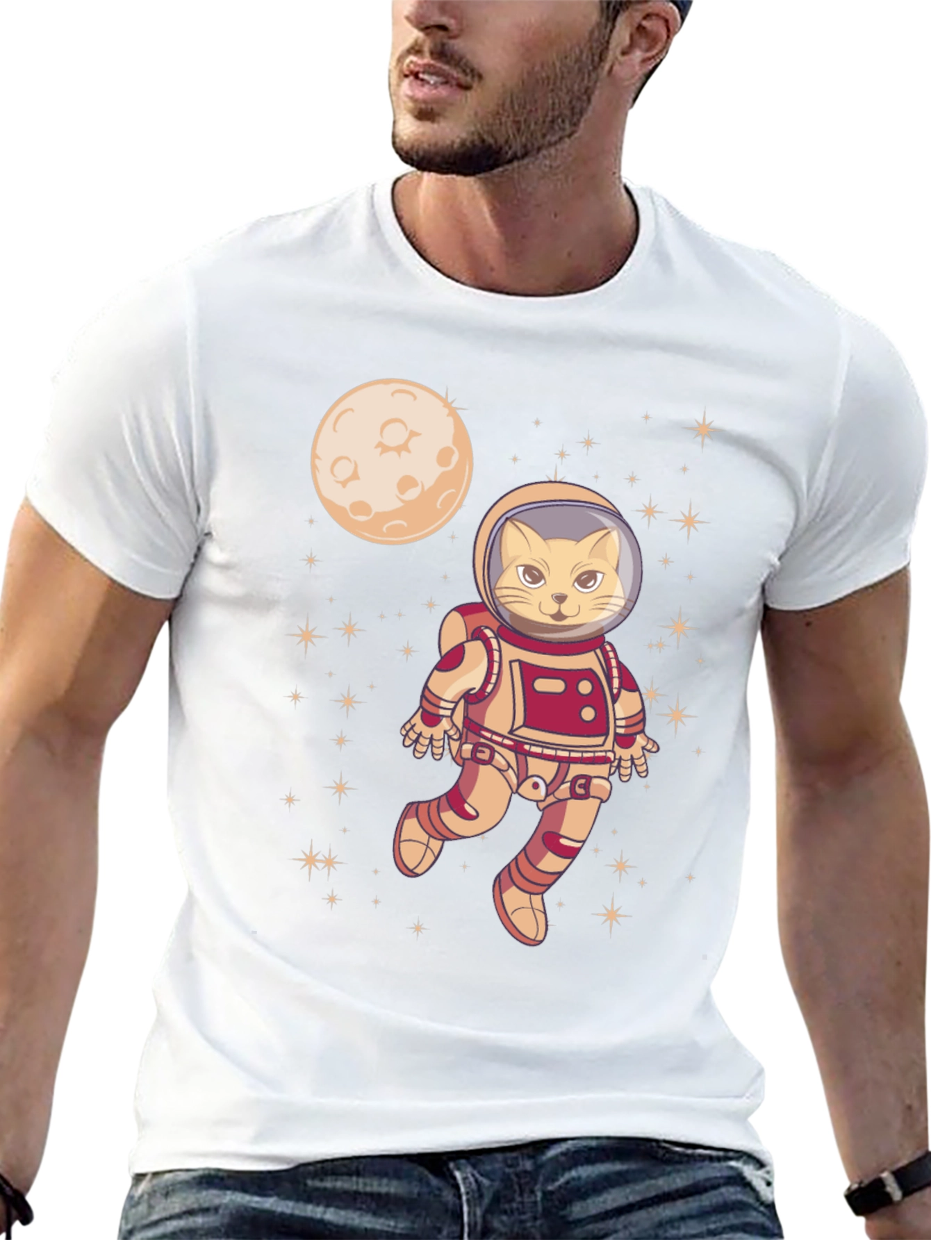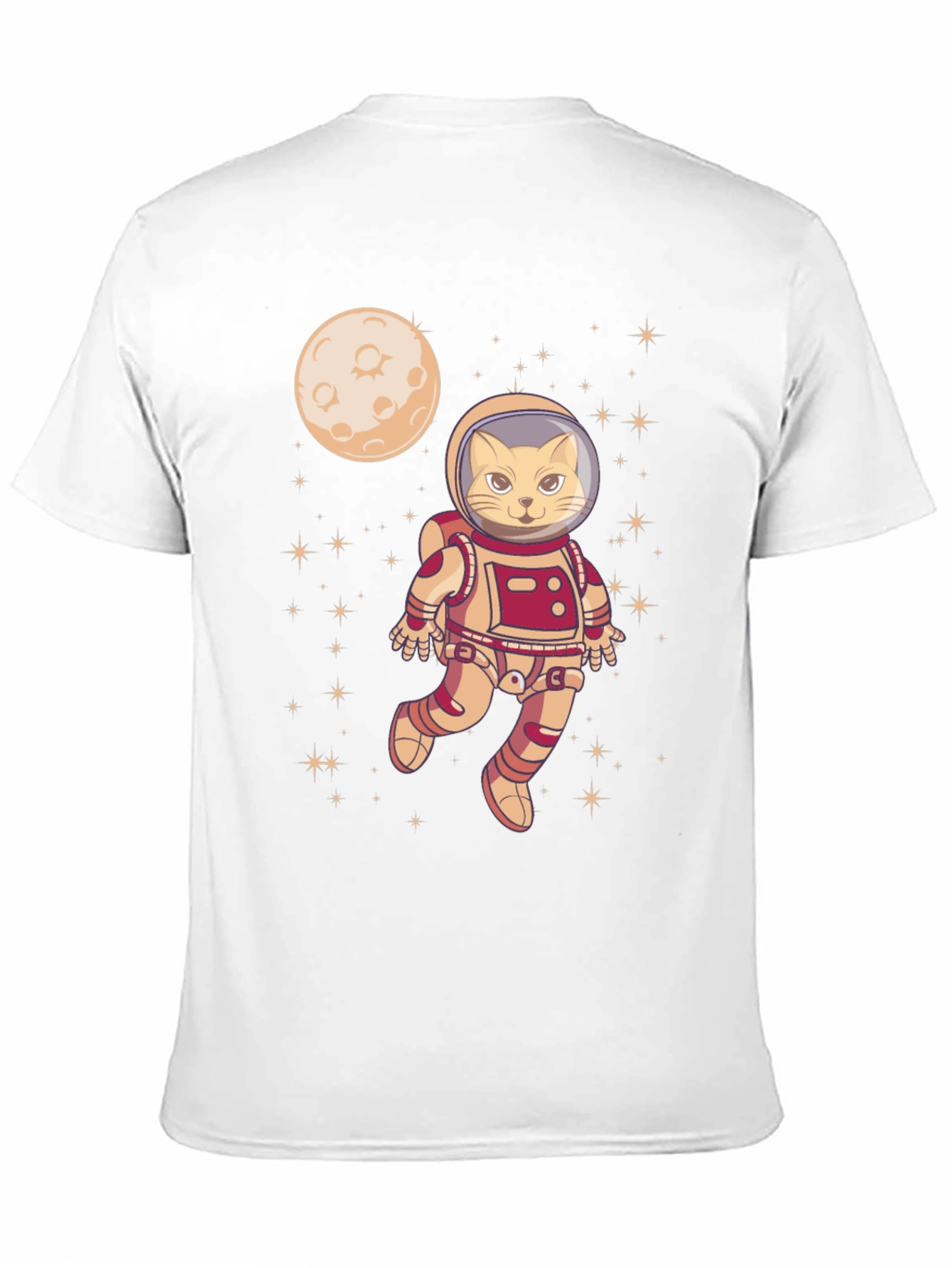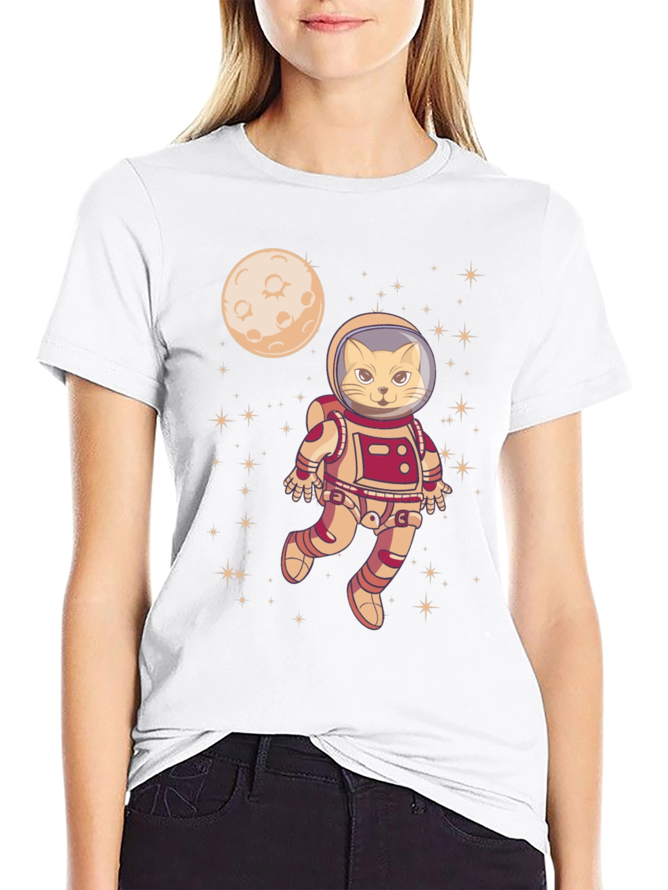 Luce esta original camiseta negra con un divertido diseño de un gato astronauta flotando en el espacio. La ilustración muestra un adorable felino con traje espacial, rodeado de estrellas brillantes y la luna. Perfecta para los amantes de los gatos y la astronomía, esta camiseta es ideal para usar a diario, expresar tu personalidad única y llamar la atención con un toque de humor. Confeccionada con materiales cómodos y de alta calidad, esta camiseta te ofrece estilo y confort en cada uso. ¡Deja que este gato espacial te acompañe en tus aventuras cotidianas!