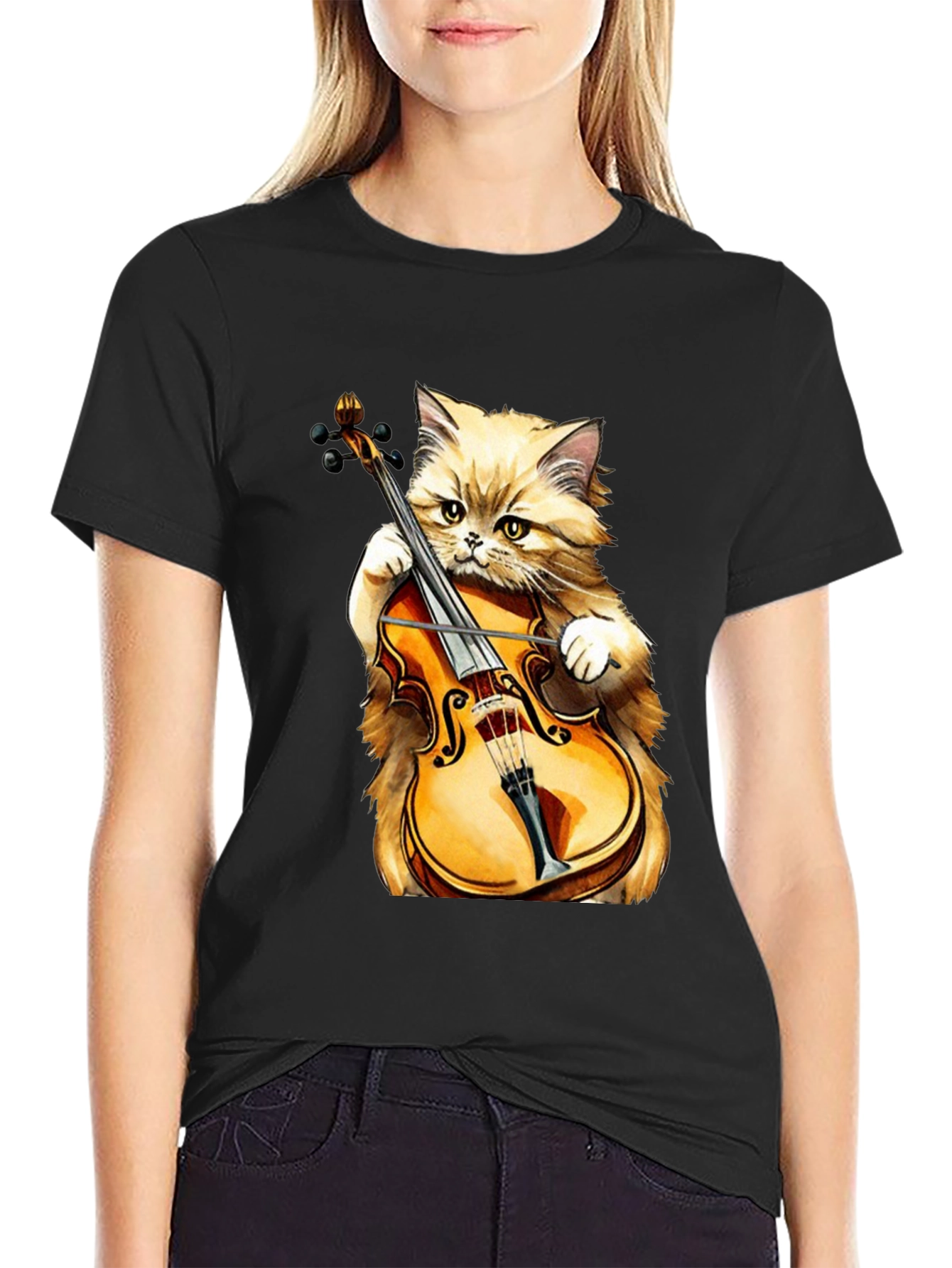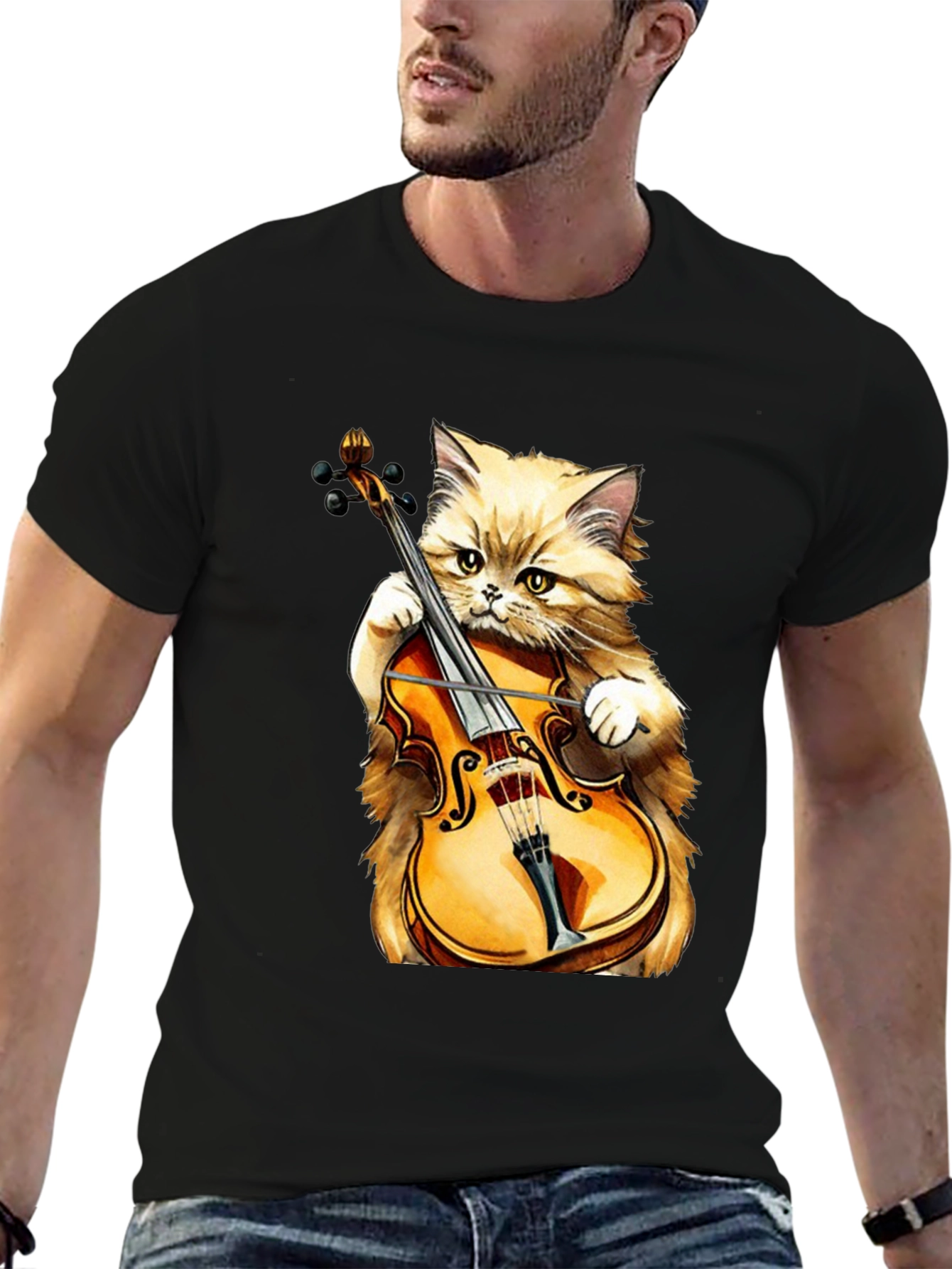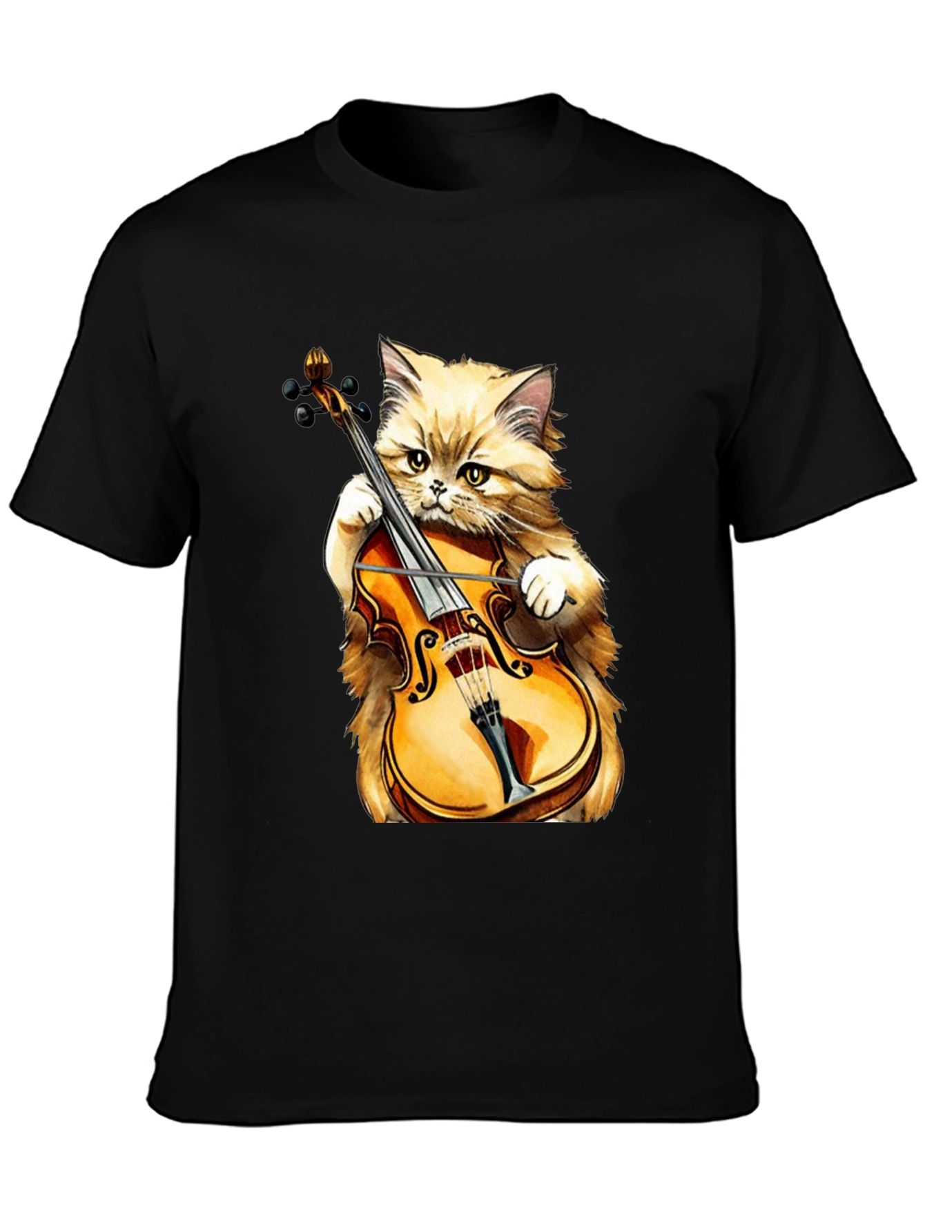 Luce esta original camiseta negra con un diseño único. Presenta un adorable gato tocando el violín con gran detalle y colores vibrantes. Perfecta para amantes de los gatos, la música o aquellos que buscan una prenda llamativa y con personalidad. Fabricada con materiales suaves y cómodos, ideal para uso diario o para expresar tu estilo en cualquier ocasión. Su diseño único la convierte en un excelente regalo para amigos y familiares con gustos similares. Atrévete a destacar con esta divertida y elegante camiseta.