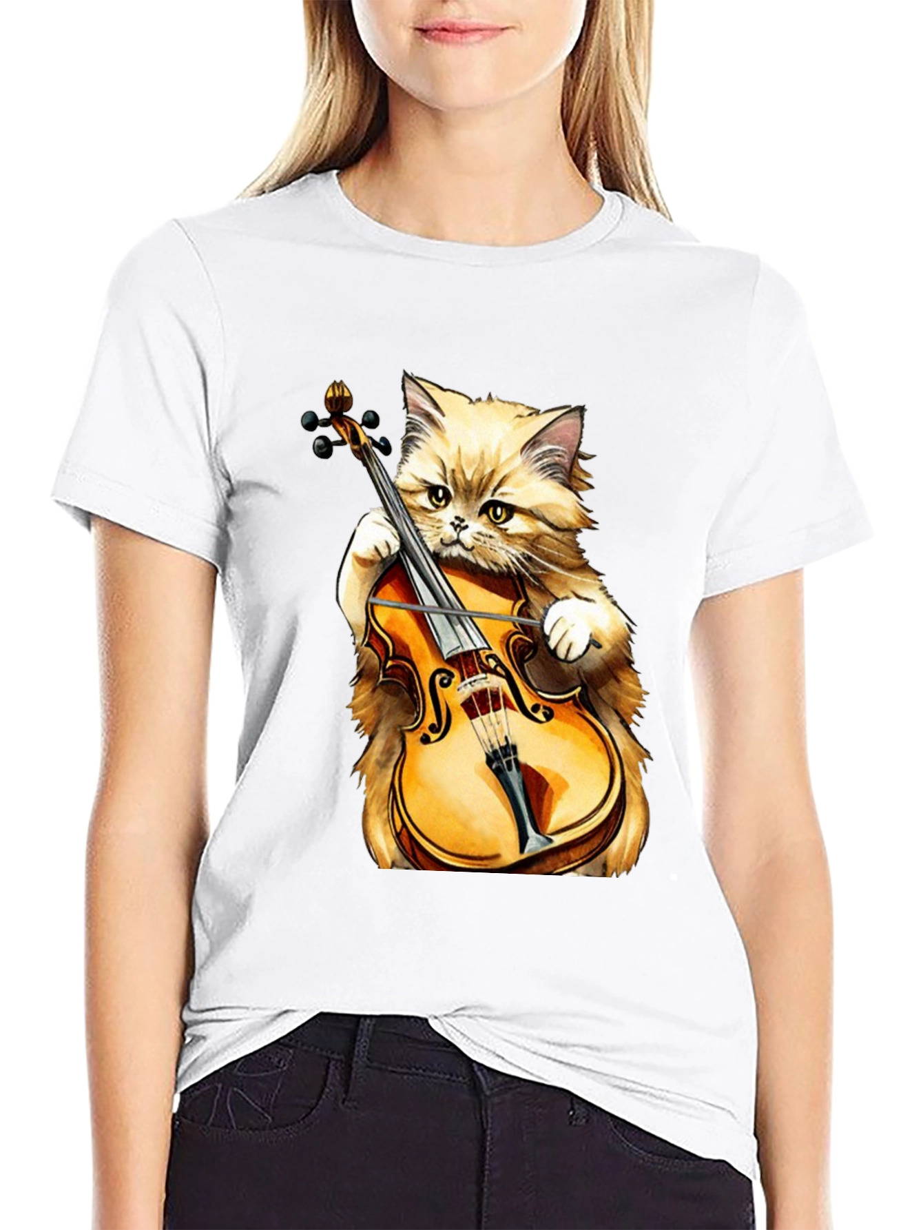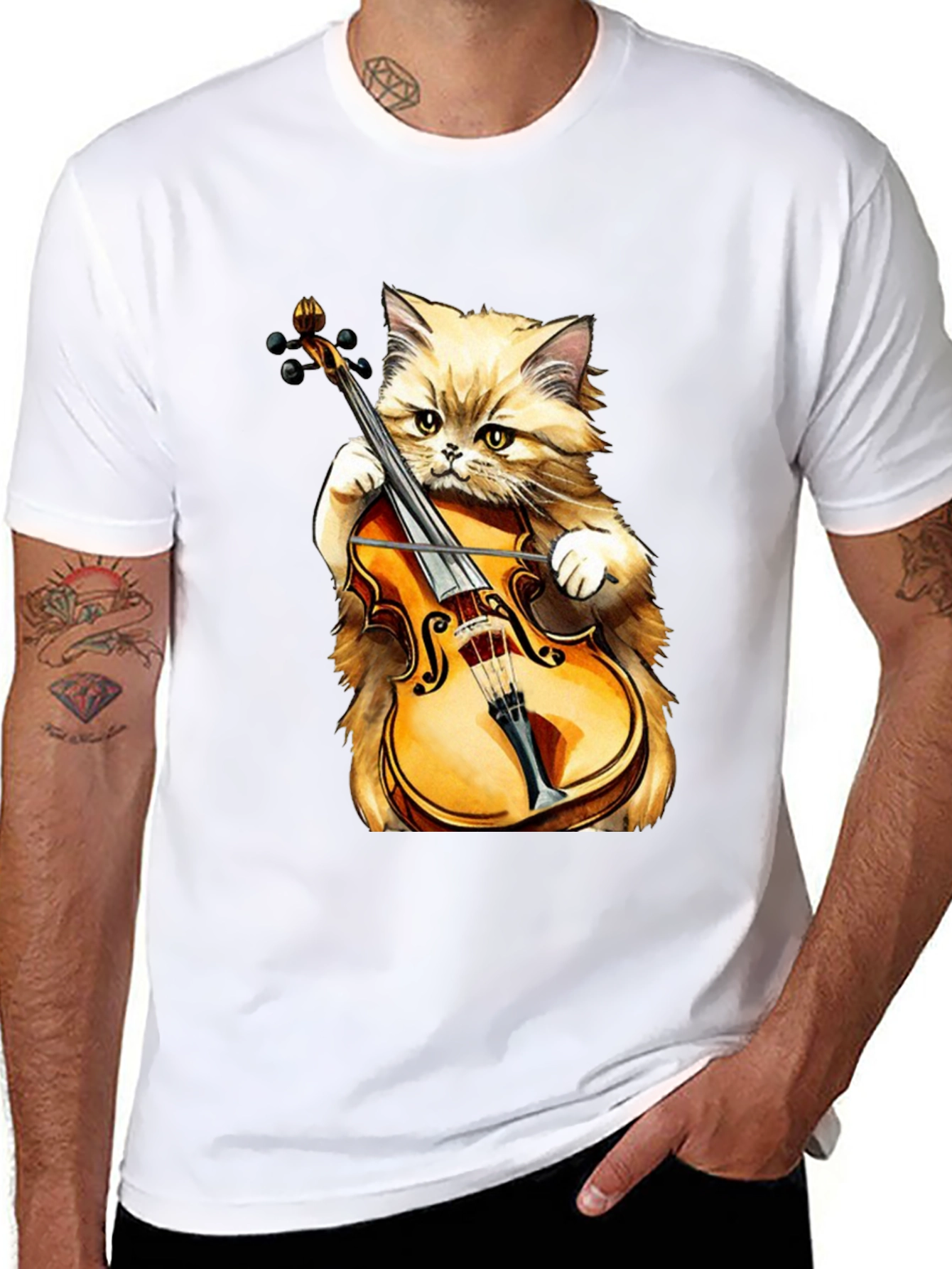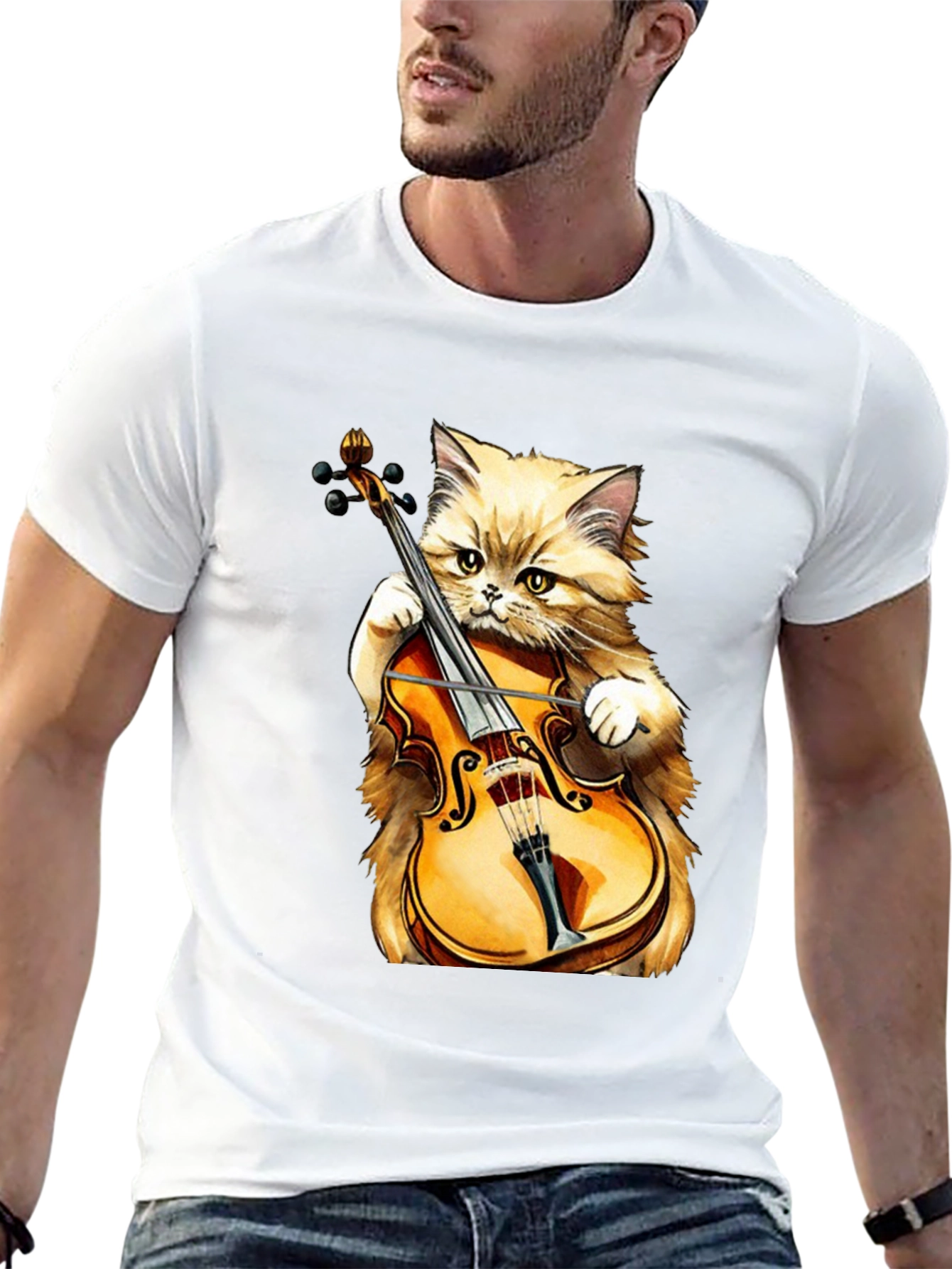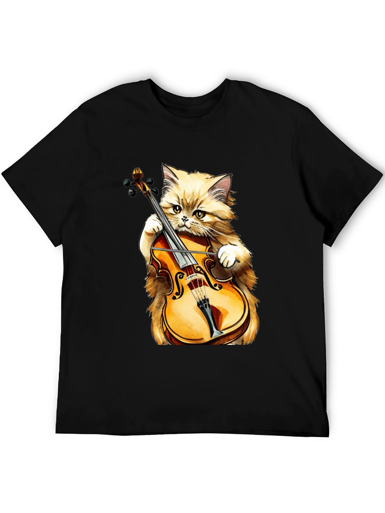Luce esta original camiseta negra con un diseño único. Presenta un adorable gato tocando el violín con gran detalle y colores vibrantes. Perfecta para amantes de los gatos, la música o aquellos que buscan una prenda llamativa y con personalidad. Fabricada con materiales suaves y cómodos, ideal para uso diario o para expresar tu estilo en cualquier ocasión. Su diseño único la convierte en un excelente regalo para amigos y familiares con gustos similares. Atrévete a destacar con esta divertida y elegante camiseta.