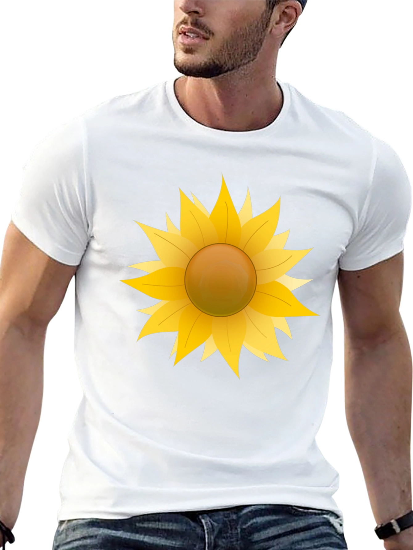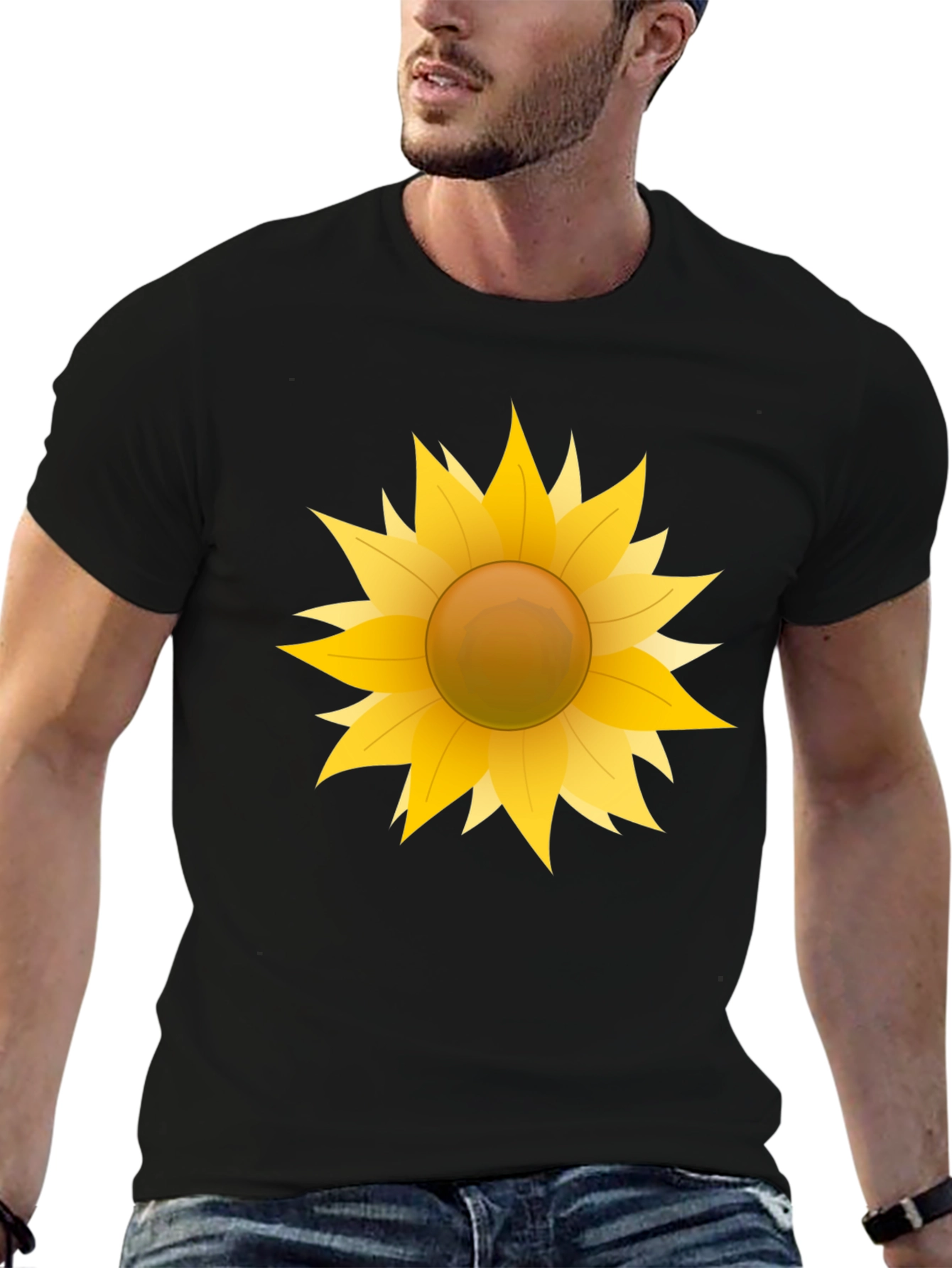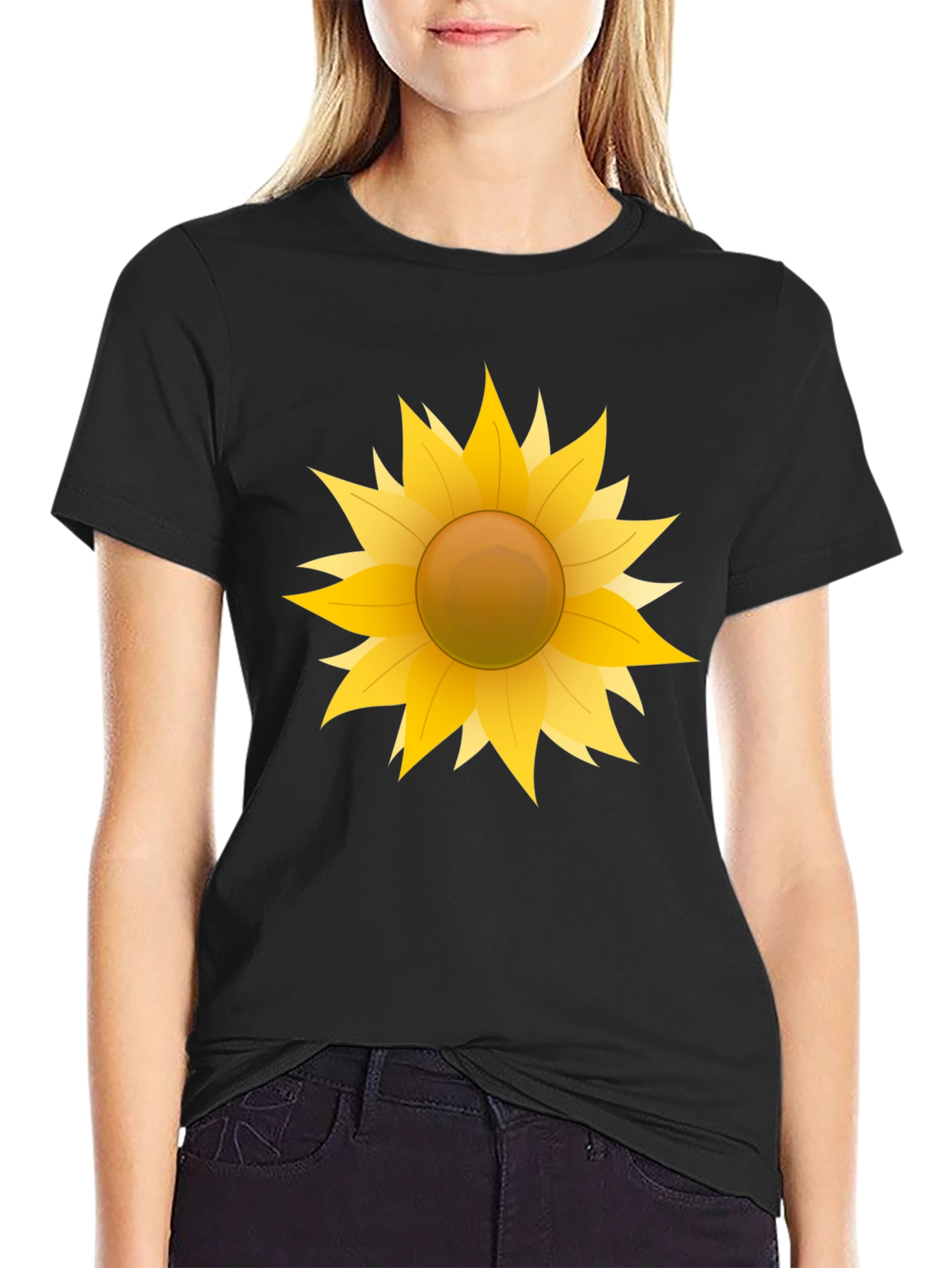 Luce un estilo vibrante con esta camiseta negra de manga corta. Presenta un llamativo diseño de girasol en el centro, con pétalos amarillos y un centro marrón que le da un toque alegre y moderno. Fabricada en un material suave y cómodo, esta camiseta es ideal para el uso diario. Perfecta para combinar con jeans, pantalones cortos o faldas, esta camiseta con estampado de girasol es una excelente opción para expresar tu personalidad y agregar un toque de color a tu guardarropa. ¡Atrévete a destacar con esta prenda única!