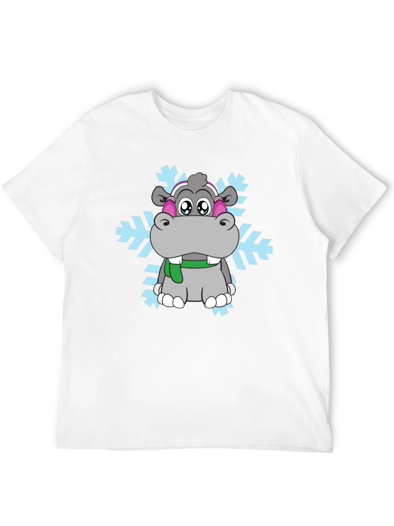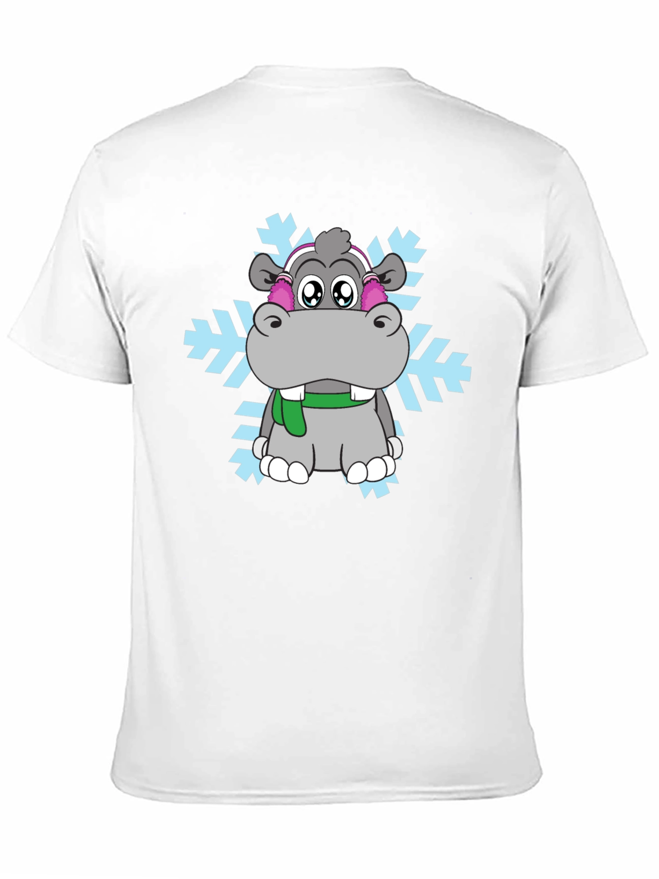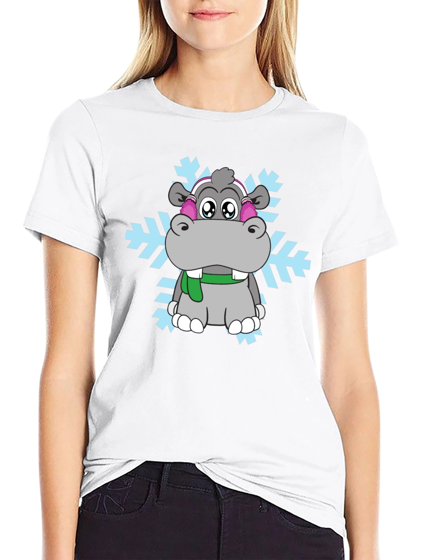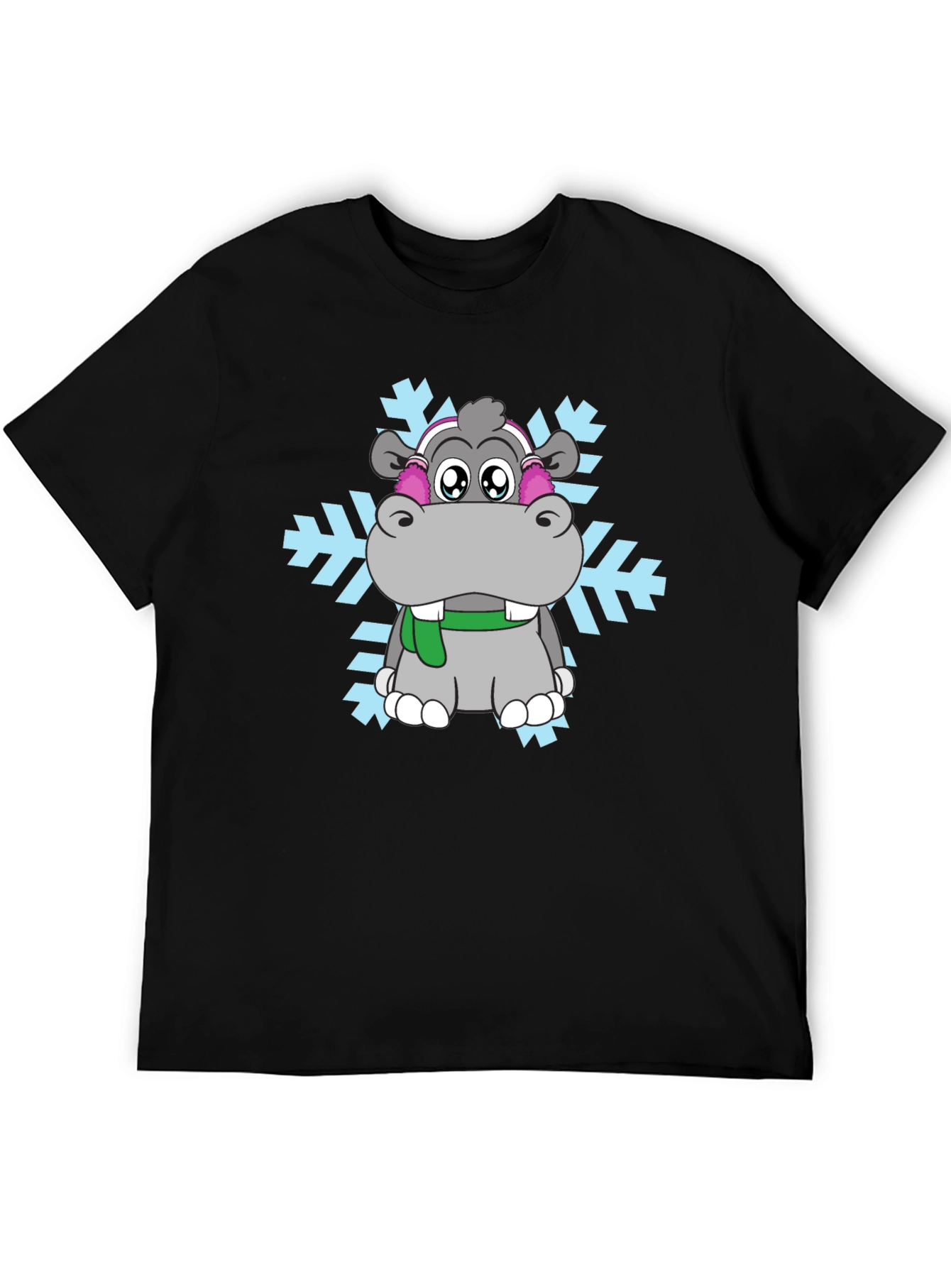 Luce esta divertida camiseta negra con un adorable hipopótamo invernal. El diseño presenta un simpático hipopótamo gris con orejeras rosas y bufanda verde, ideal para la temporada de frío. Un copo de nieve azul claro adorna el fondo, resaltando el ambiente invernal. Esta camiseta de manga corta es perfecta para añadir un toque de alegría a tu vestuario diario. Ideal para llevar en días casuales, paseos al aire libre o simplemente para relajarte en casa con estilo. ¡Muestra tu lado divertido con esta original camiseta!