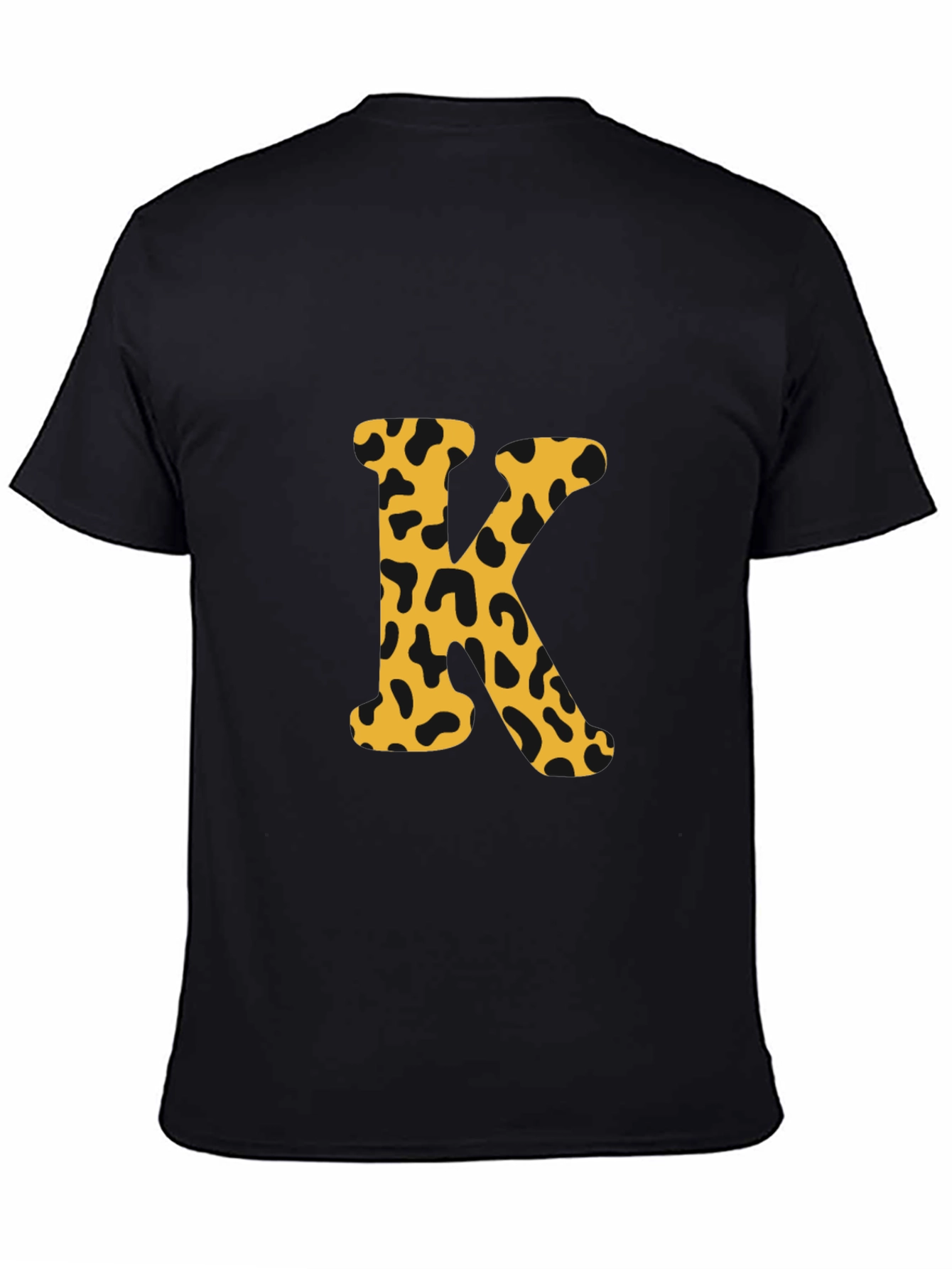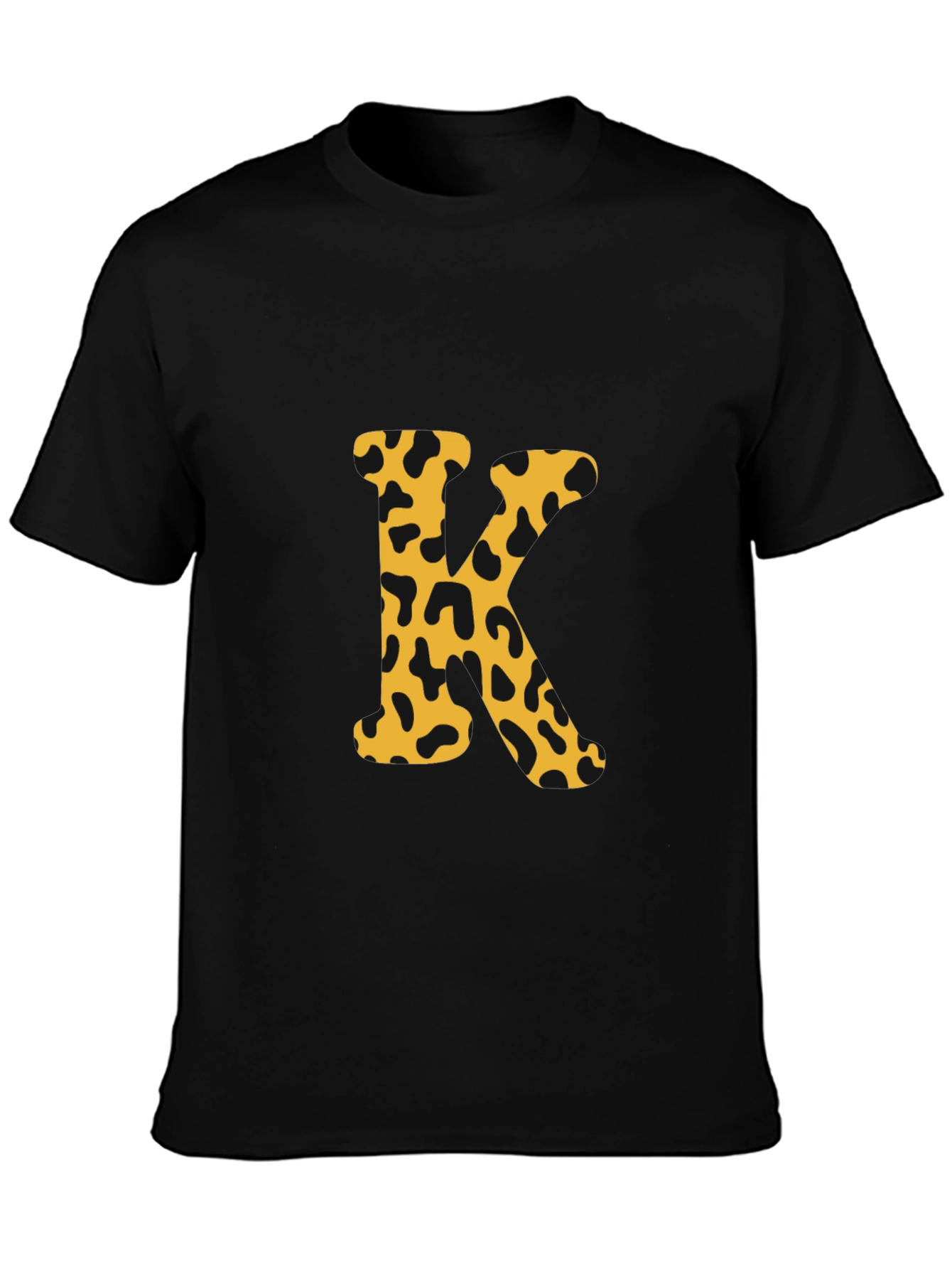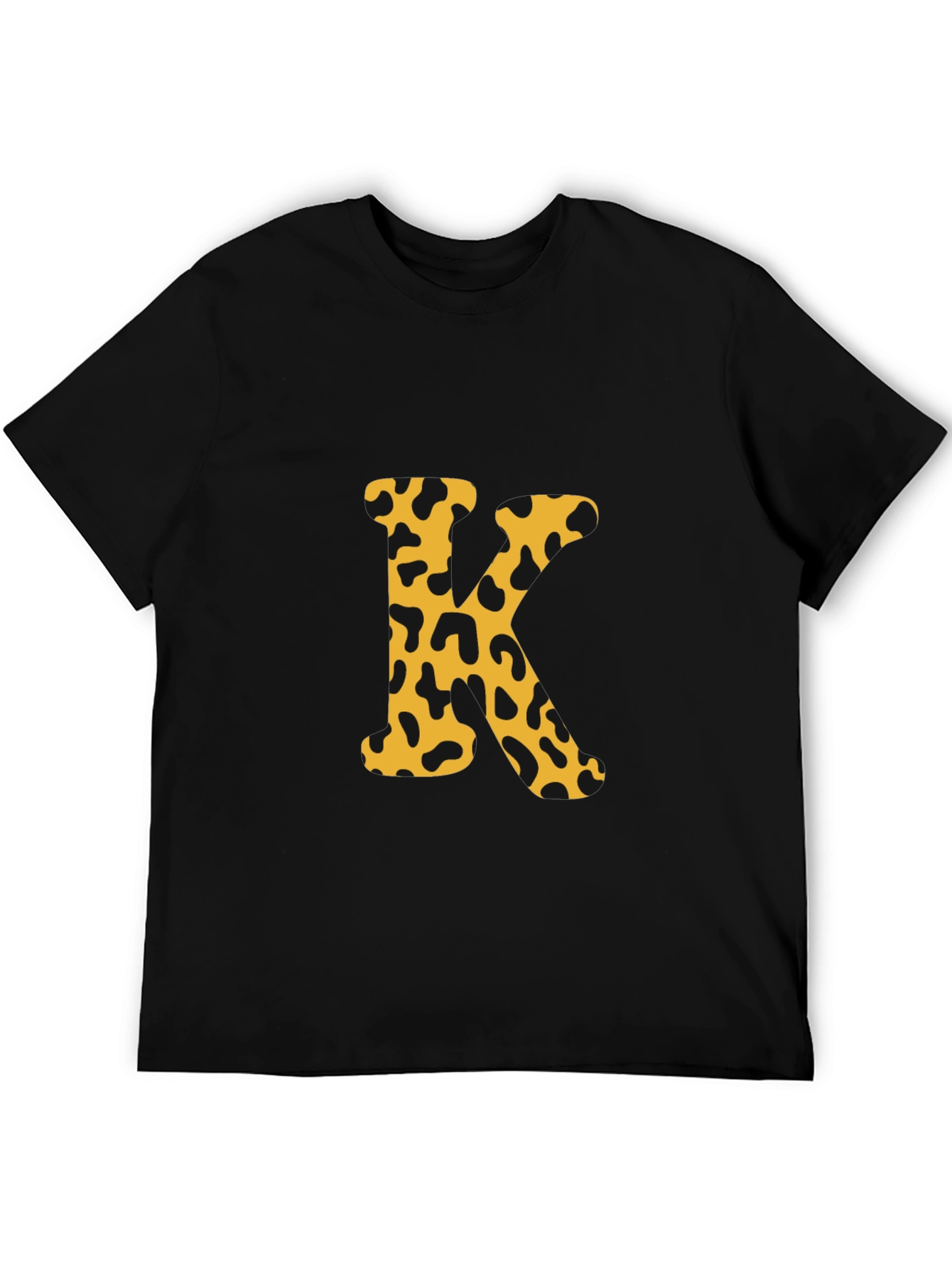 Luce con estilo con esta camiseta negra de manga corta. El diseño presenta una llamativa letra 'K' estampada en el centro, con un patrón de manchas de leopardo en tonos dorados y negros, que le da un toque moderno y atrevido. Perfecta para un look casual y relajado, esta camiseta es ideal para combinar con jeans o pantalones cortos. Su diseño único la convierte en una prenda versátil para el día a día o para salir con amigos. Fabricada con materiales de alta calidad, ofrece comodidad y durabilidad, garantizando un ajuste perfecto y un tacto suave sobre la piel. ¡Añade un toque de personalidad a tu armario con esta original camiseta!