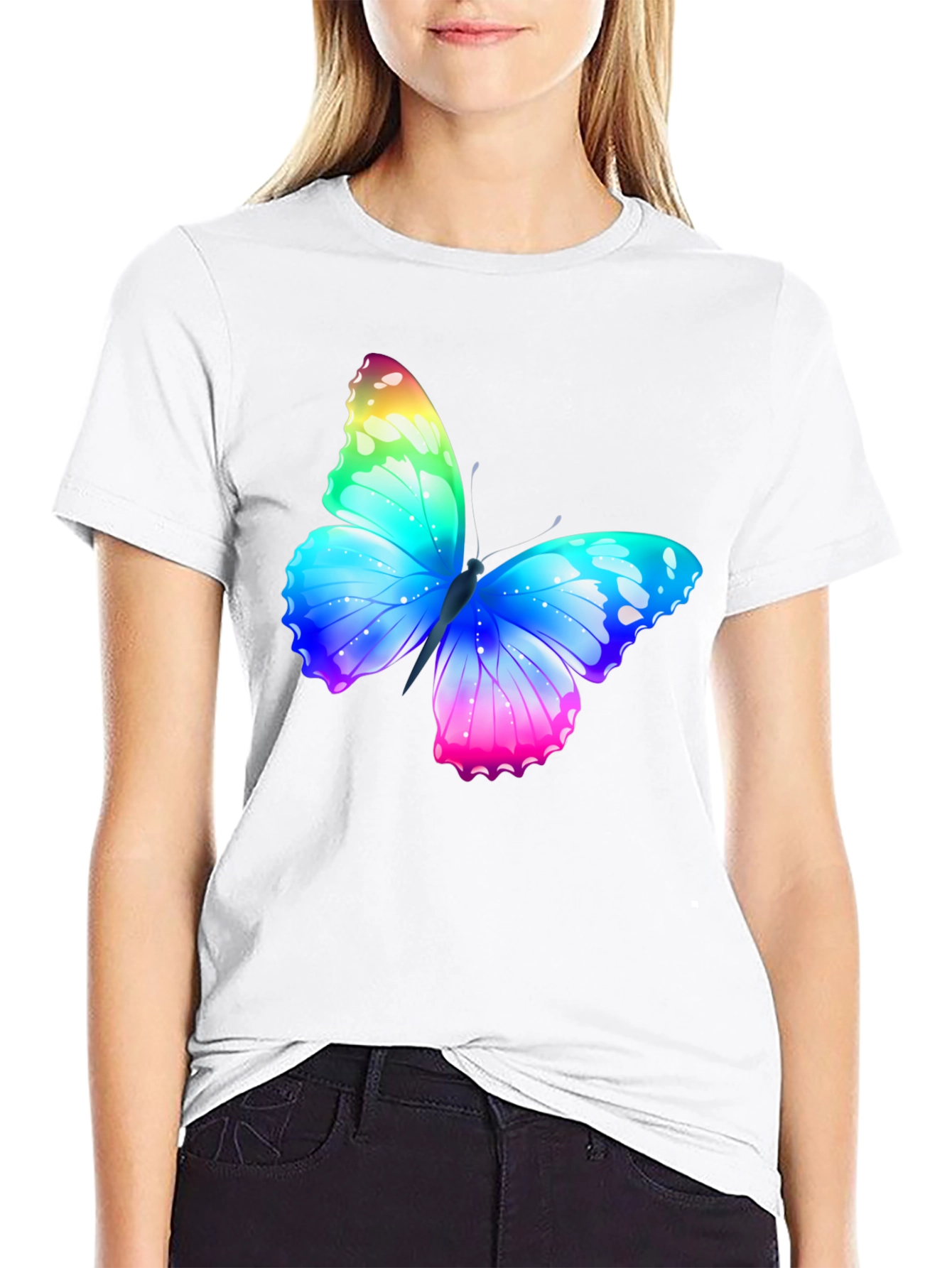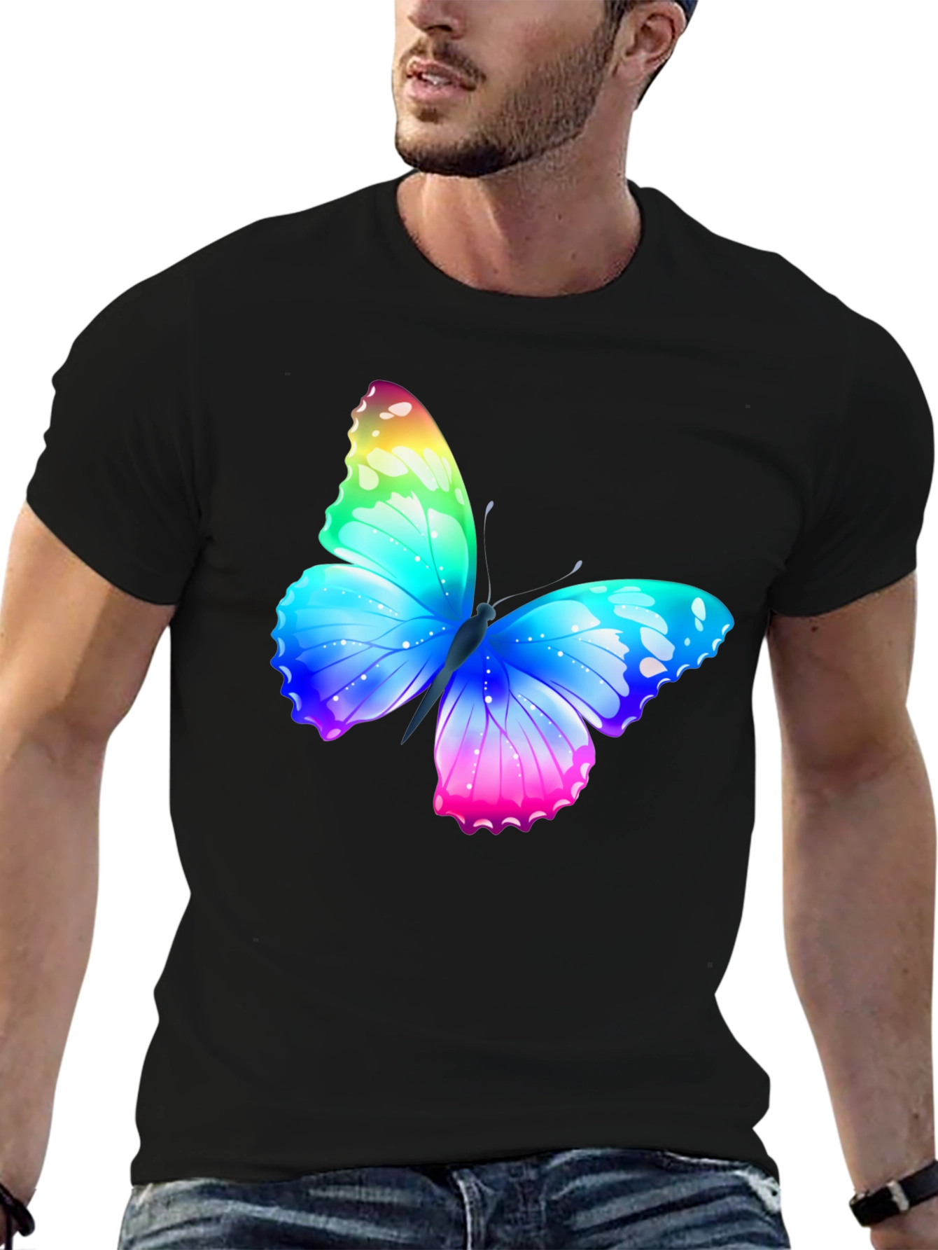 Luce esta camiseta negra con un llamativo diseño de mariposa arcoíris. Confeccionada en un tejido suave y cómodo, esta camiseta de manga corta presenta un vibrante estampado que combina todos los colores del arcoíris en las alas de la mariposa. El diseño único y llamativo la convierte en una prenda ideal para expresar tu individualidad y añadir un toque de alegría a tu vestuario diario. Perfecta para usar en salidas casuales, festivales, o simplemente para relajarte en casa con estilo. ¡Destaca entre la multitud con esta prenda original y colorida!
