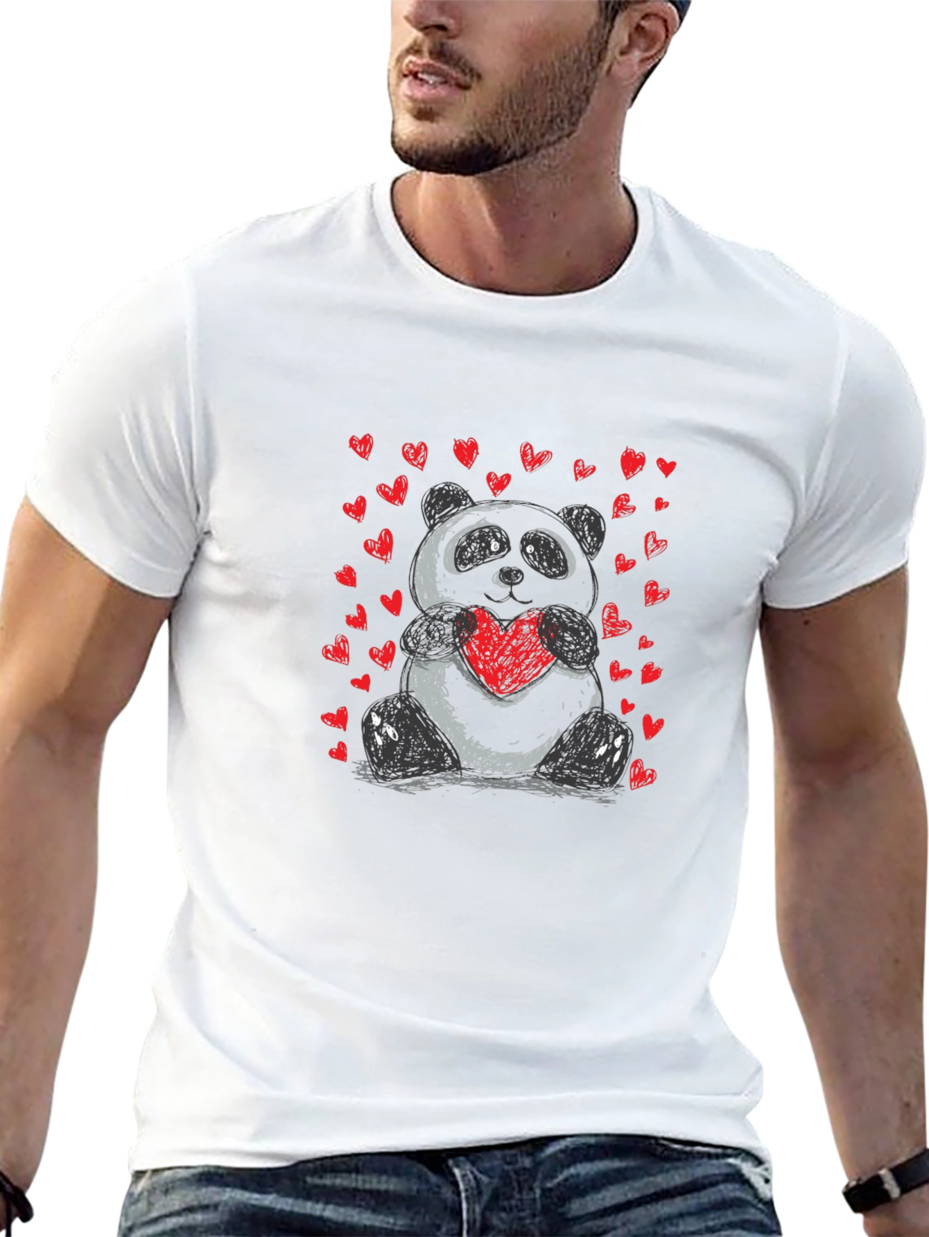 Muestra tu lado tierno con esta original camiseta negra. Presenta un adorable panda dibujado con estilo "sketch", abrazando un corazón rojo. Rodeado de pequeños corazones, el diseño irradia amor y cariño. Perfecta para expresar tu personalidad divertida y sensible, esta camiseta es ideal para llevar en citas, salidas casuales o simplemente para alegrar tu día a día. El color negro la hace versátil para combinar con cualquier outfit. Fabricada con materiales cómodos y duraderos, esta camiseta no solo es atractiva, sino también resistente y confortable. ¡Un regalo perfecto para los amantes de los pandas y el amor!