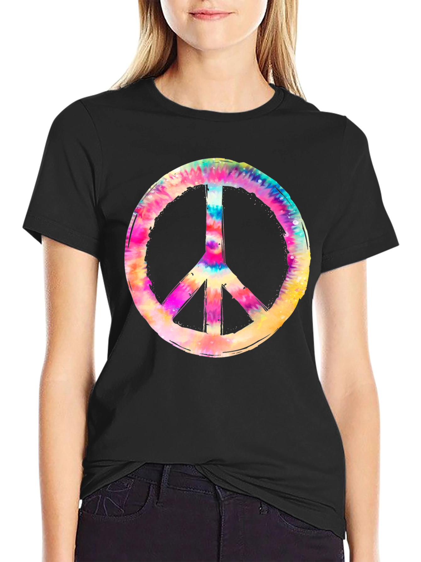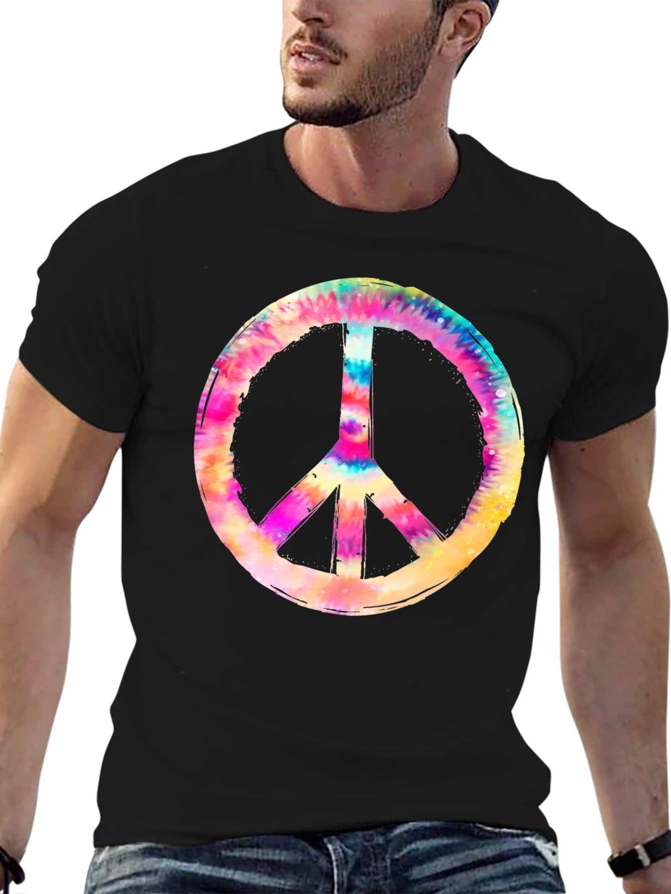Camiseta Negra con Símbolo de la Paz Tie-Dye