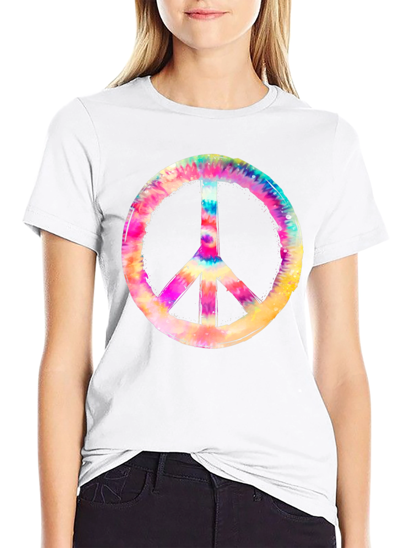 Luce un estilo relajado y con un toque retro con esta camiseta negra de corte clásico. El diseño llamativo presenta un símbolo de la paz con efecto tie-dye en vibrantes colores como rosa, amarillo, azul y morado, creando un contraste atractivo sobre el fondo negro. Confeccionada en un material suave al tacto, esta camiseta ofrece comodidad durante todo el día. Ideal para un look casual, festivales, o simplemente para expresar tu espíritu libre con un toque de moda. Combínala con jeans, shorts o faldas para un outfit versátil y lleno de estilo. ¡Perfecta para aquellos que buscan un look único y lleno de personalidad!