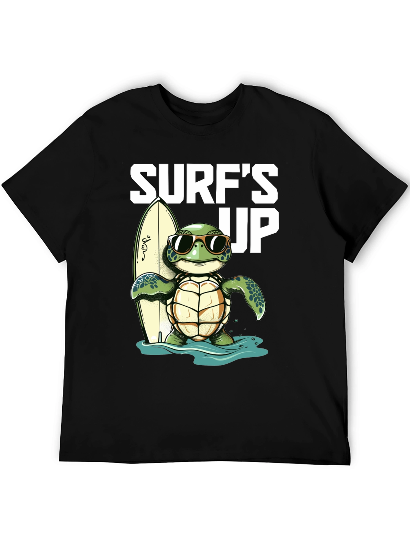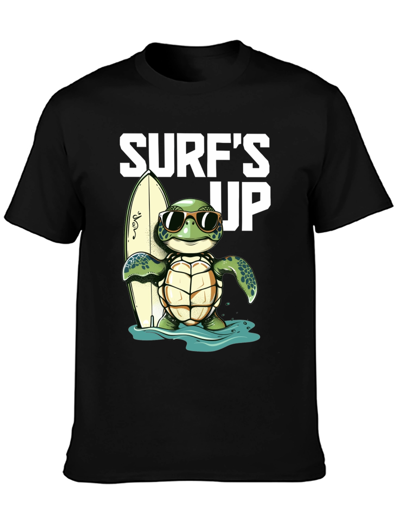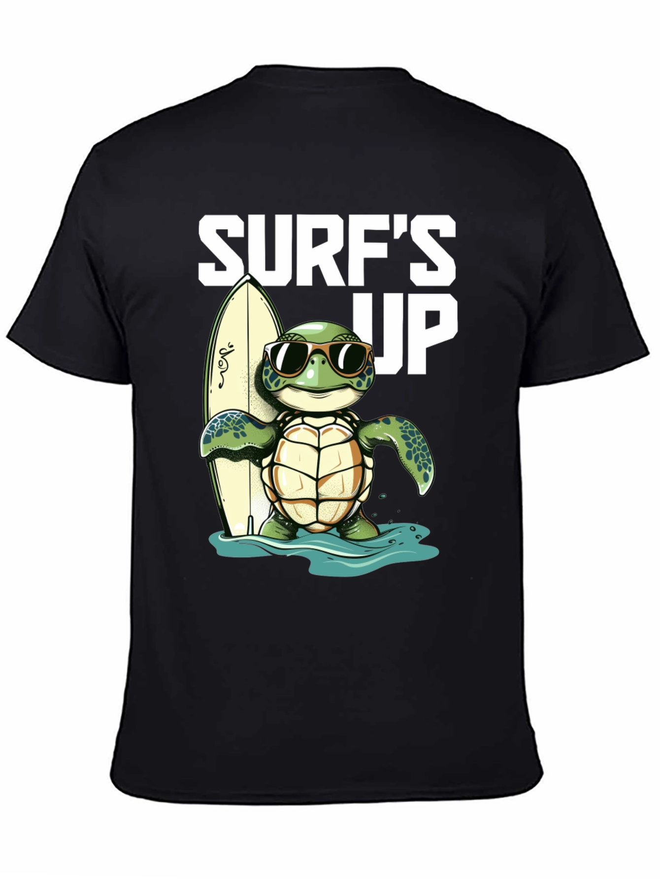 ¡Atrapa la onda con esta genial camiseta negra! Presenta un adorable diseño de una tortuga con gafas de sol, lista para surfear con su tabla. El estampado "Surf's Up" le añade un toque divertido y playero. Ideal para los amantes del surf, la playa y los animales. Confeccionada en un material suave y cómodo, perfecta para usar en un día casual o para destacar en tu próxima aventura veraniega. ¡Una prenda única que te hará sentir la vibra del océano!