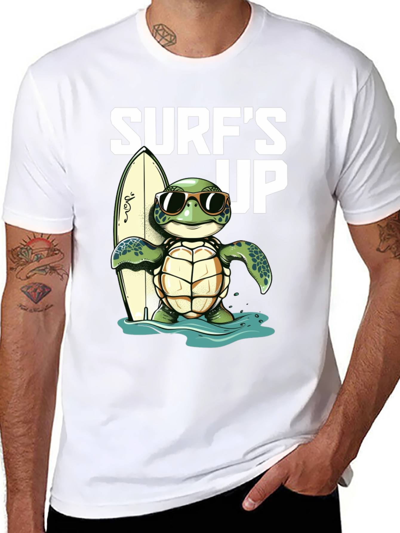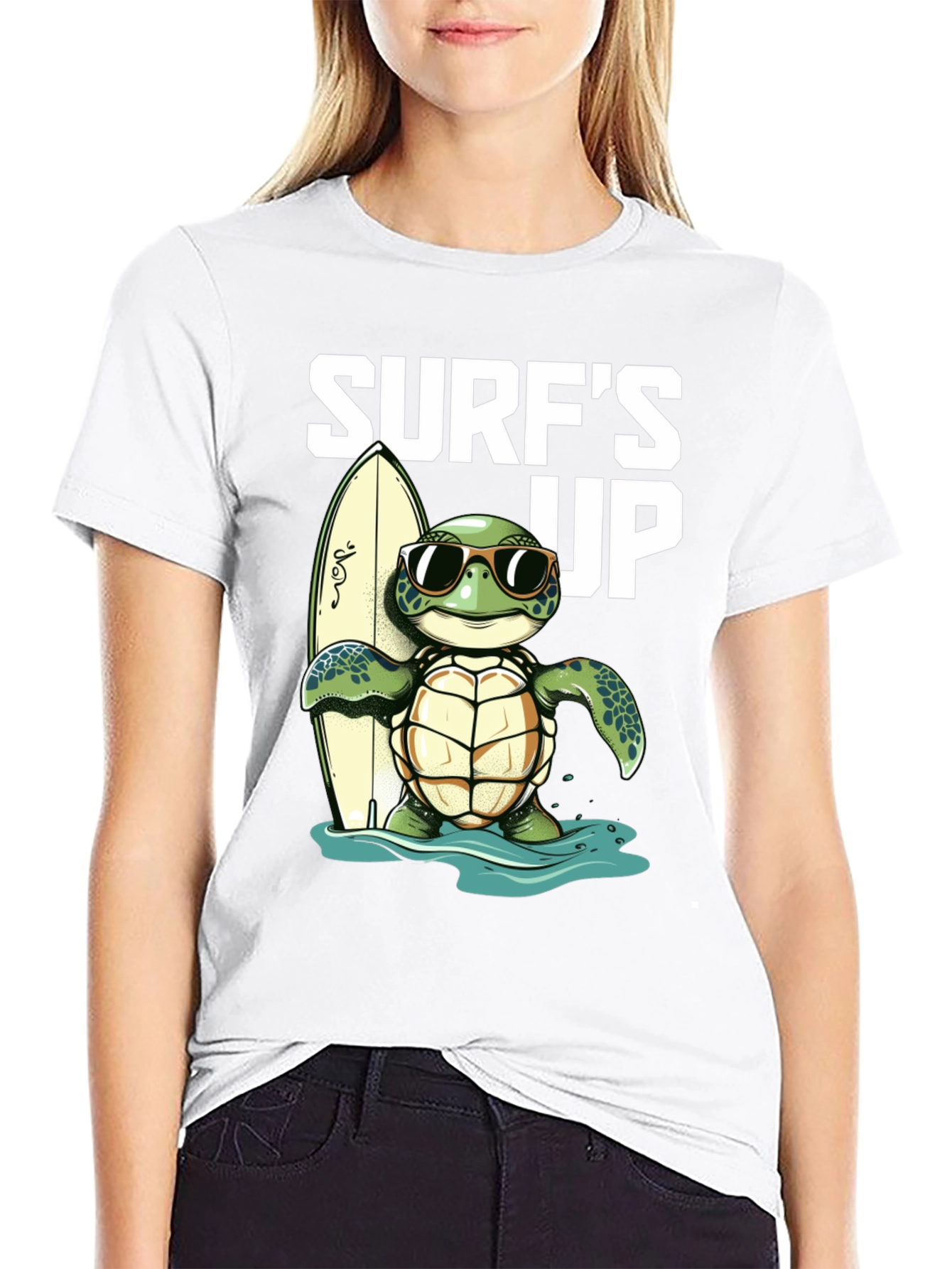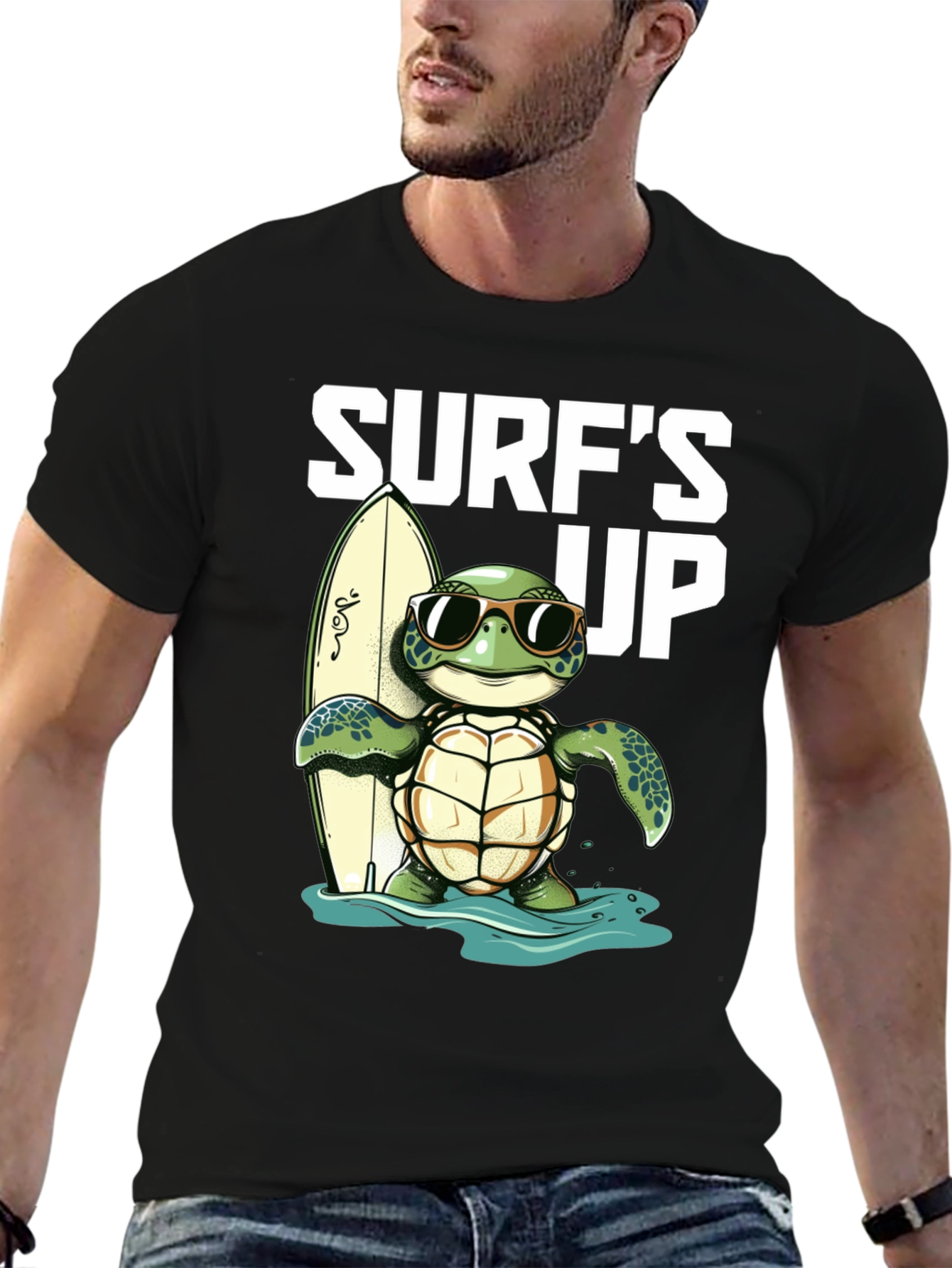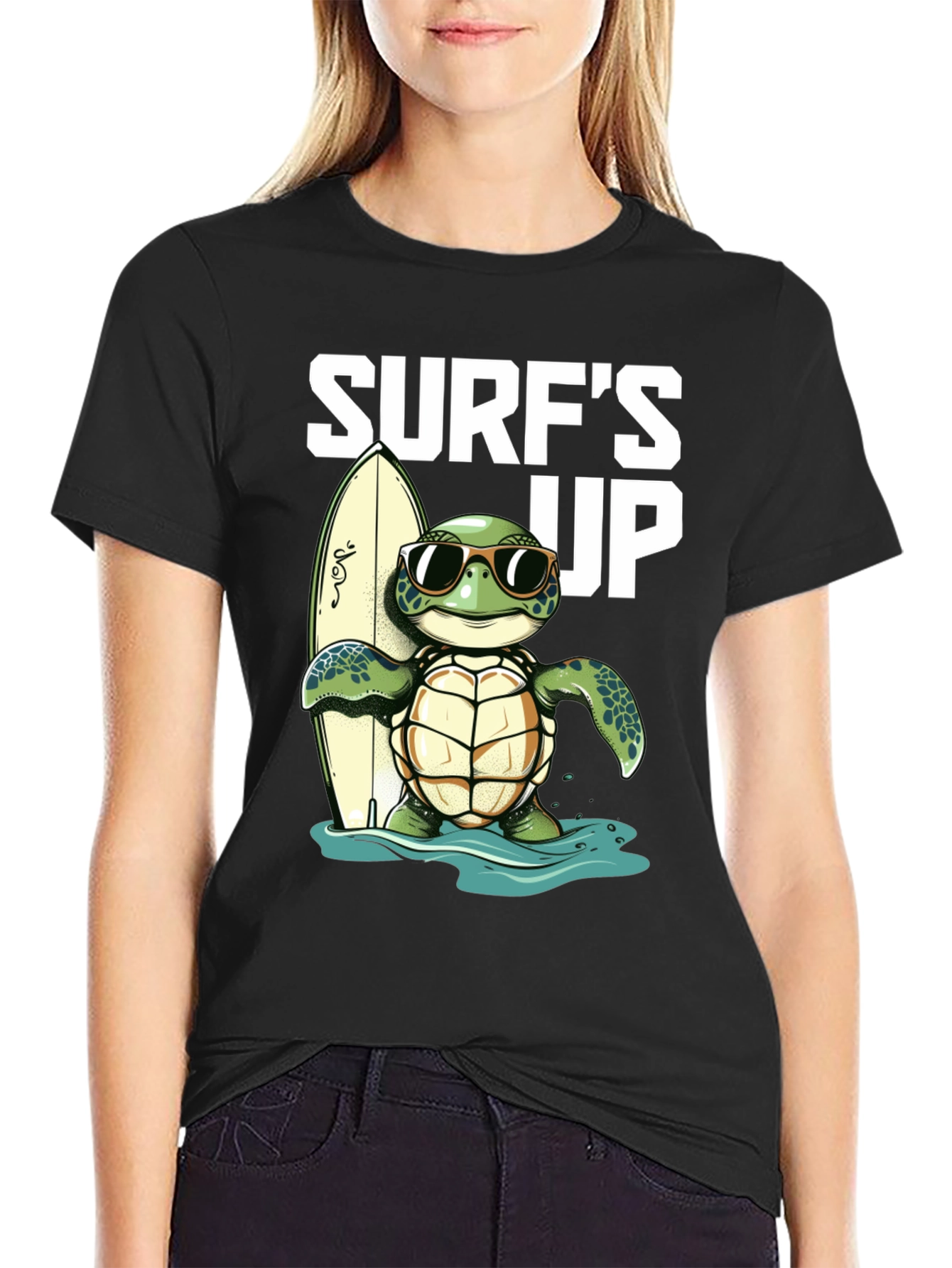 ¡Atrapa la onda con esta genial camiseta negra! Presenta un adorable diseño de una tortuga con gafas de sol, lista para surfear con su tabla. El estampado "Surf's Up" le añade un toque divertido y playero. Ideal para los amantes del surf, la playa y los animales. Confeccionada en un material suave y cómodo, perfecta para usar en un día casual o para destacar en tu próxima aventura veraniega. ¡Una prenda única que te hará sentir la vibra del océano!