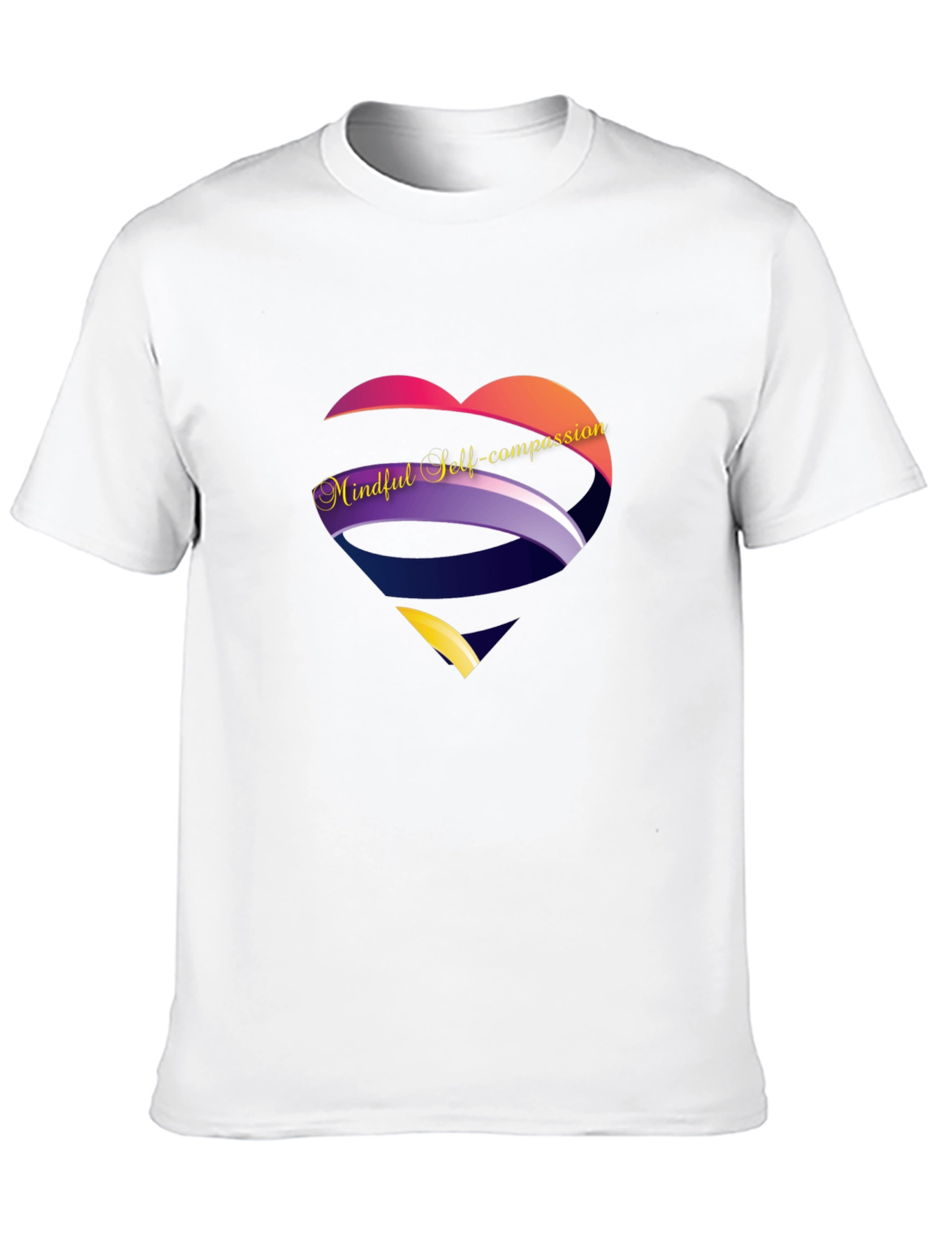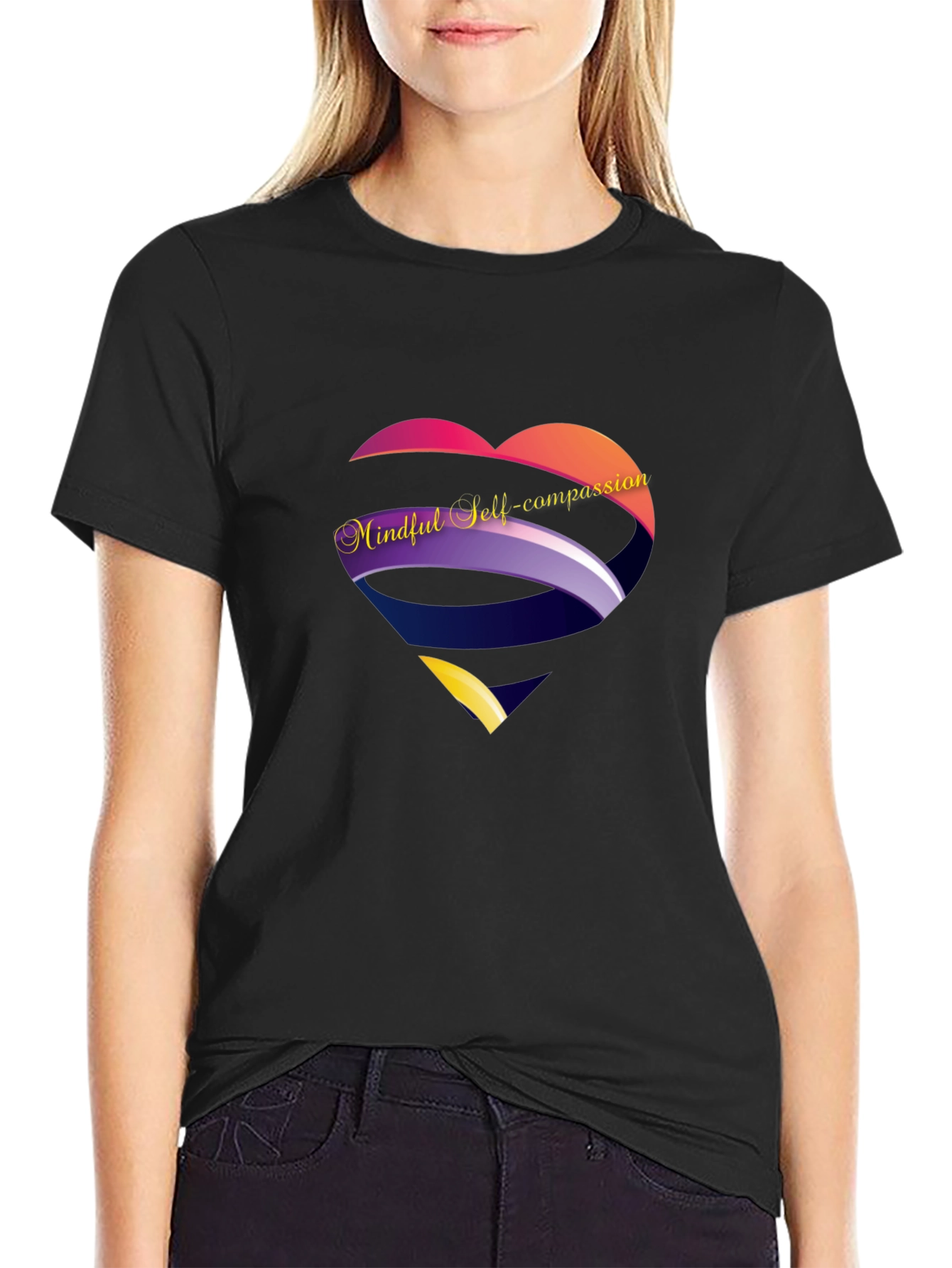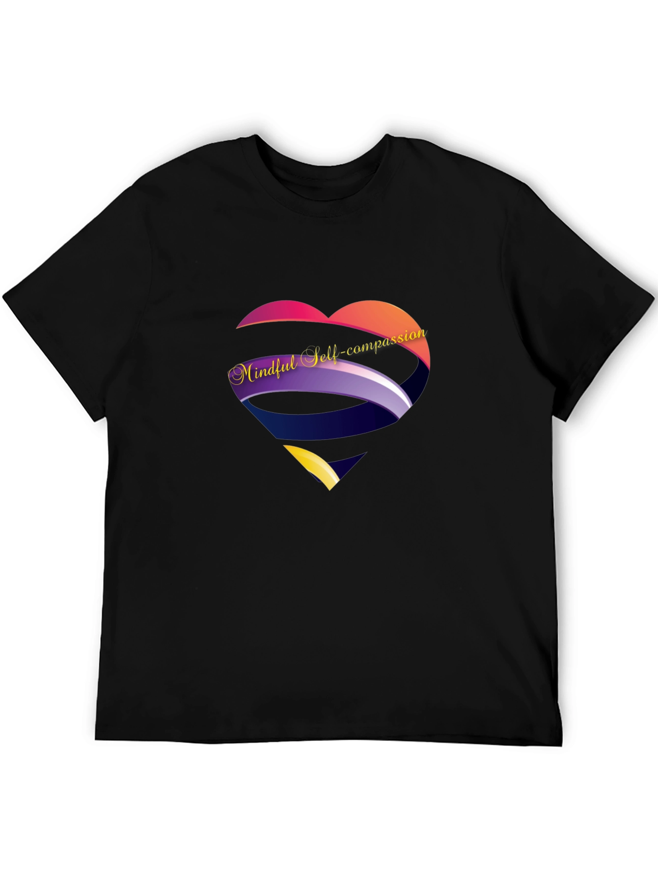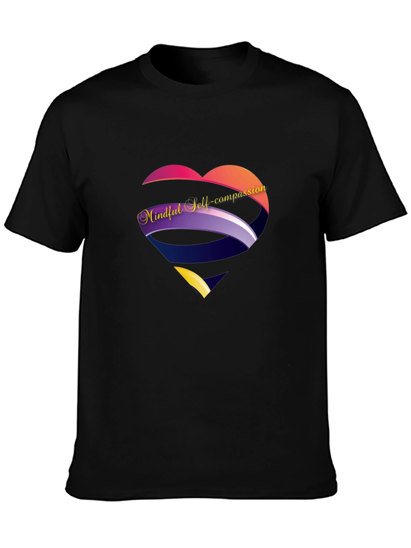 Luce esta camiseta negra con un diseño único y llamativo. Presenta un corazón abstracto multicolor con la frase 'Mindful Self-compassion' en elegantes letras doradas. Ideal para expresar un mensaje positivo y fomentar el bienestar emocional. Fabricada en un tejido suave y cómodo, esta camiseta de corte clásico es perfecta para usar a diario. Combina estilo, confort y conciencia en una sola prenda. Úsala para ir al gimnasio, salir con amigos o simplemente relajarte en casa con un toque de estilo y positivismo. ¡Un regalo perfecto para esa persona especial!