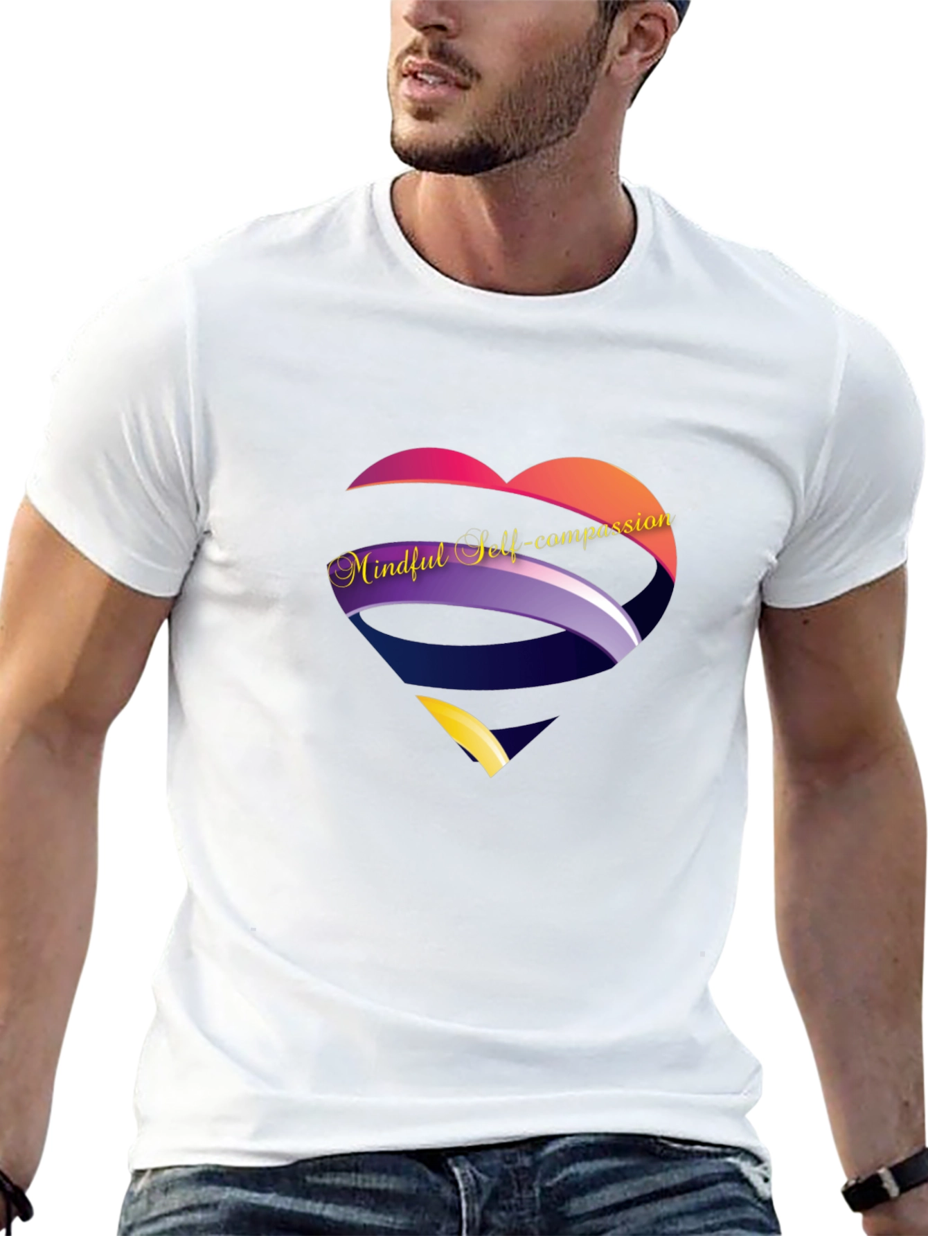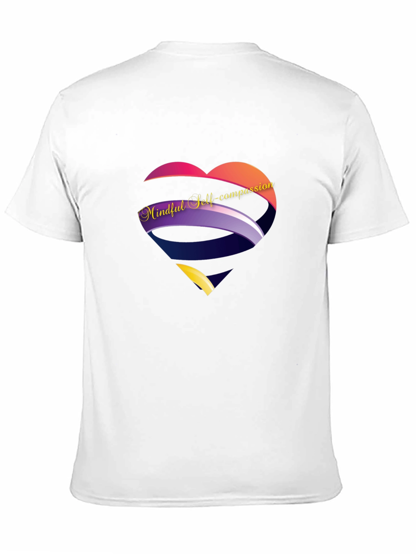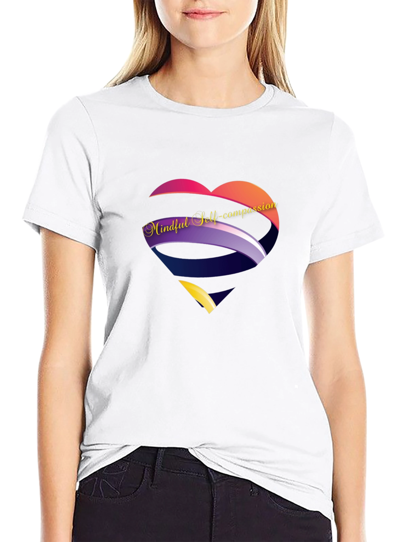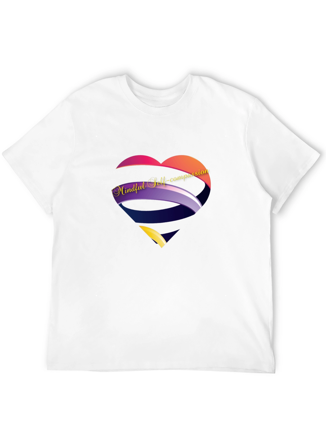 Luce esta camiseta negra con un diseño único y llamativo. Presenta un corazón abstracto multicolor con la frase 'Mindful Self-compassion' en elegantes letras doradas. Ideal para expresar un mensaje positivo y fomentar el bienestar emocional. Fabricada en un tejido suave y cómodo, esta camiseta de corte clásico es perfecta para usar a diario. Combina estilo, confort y conciencia en una sola prenda. Úsala para ir al gimnasio, salir con amigos o simplemente relajarte en casa con un toque de estilo y positivismo. ¡Un regalo perfecto para esa persona especial!