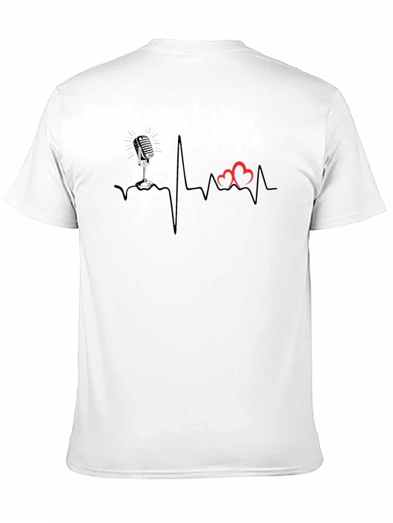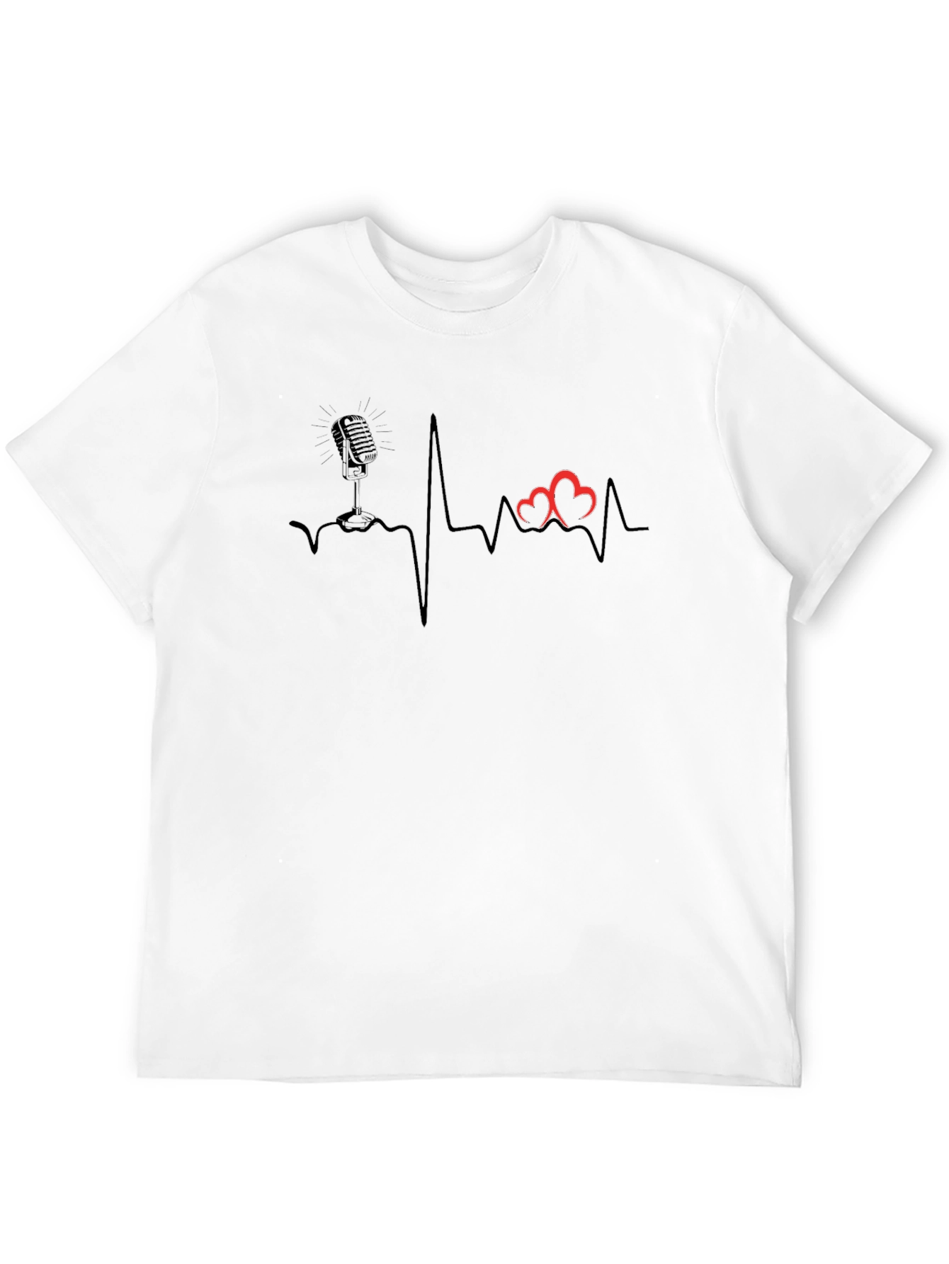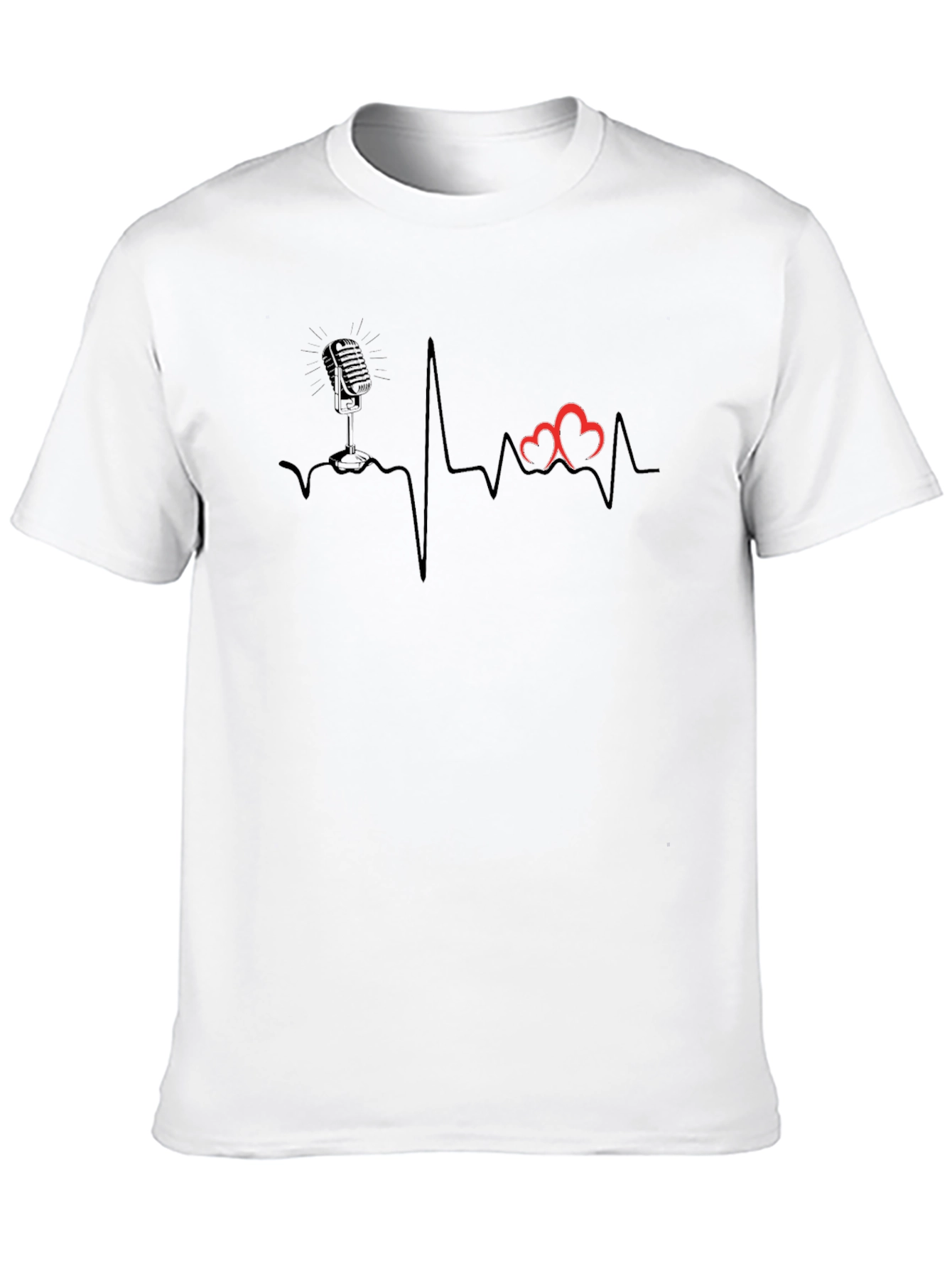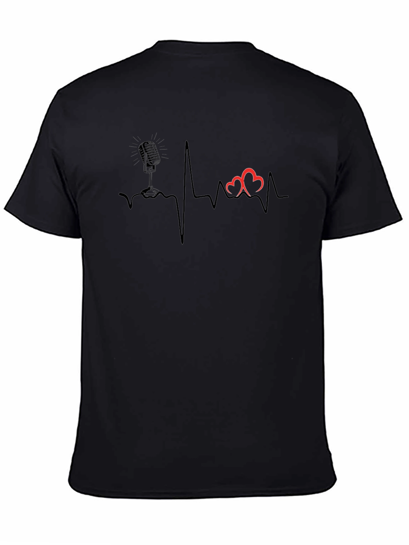 Muestra tu amor por la música con esta camiseta negra de diseño único. Presenta un electrocardiograma que conecta un micrófono clásico con dos corazones rojos entrelazados, creando un motivo llamativo y original. Ideal para amantes de la música, podcasters, cantantes o cualquier persona con pasión por el sonido. Fabricada con materiales suaves y cómodos, esta camiseta es perfecta para el uso diario, conciertos o simplemente para expresar tu estilo personal. Destaca entre la multitud con esta prenda que combina moda y pasión por la música.