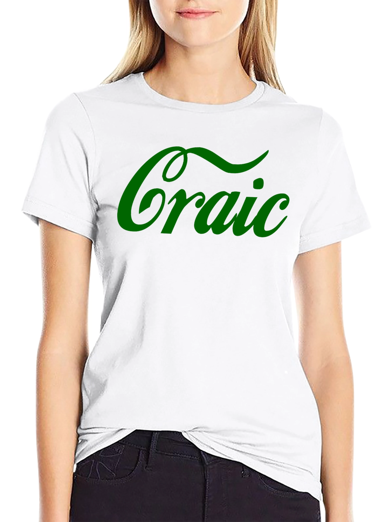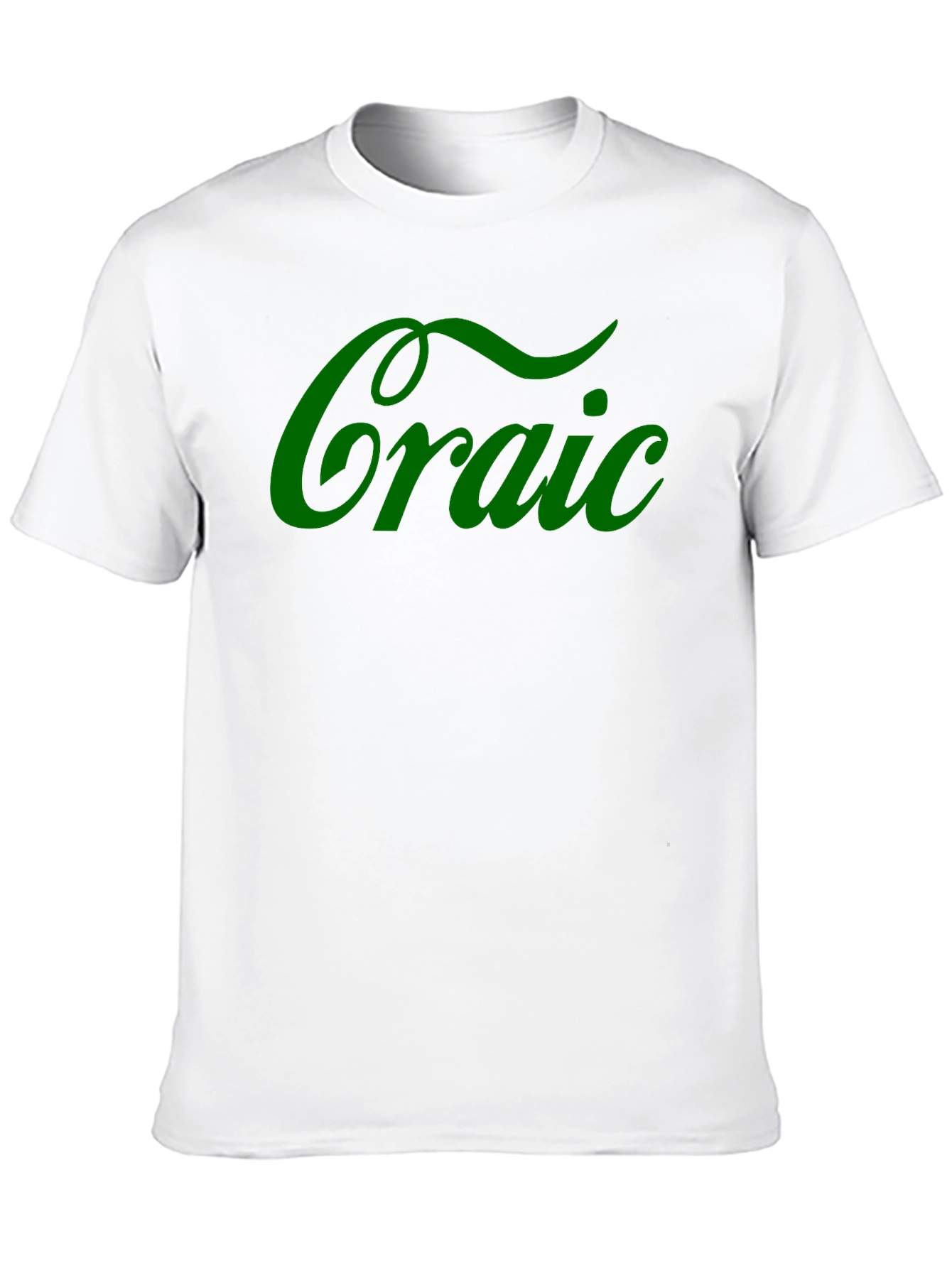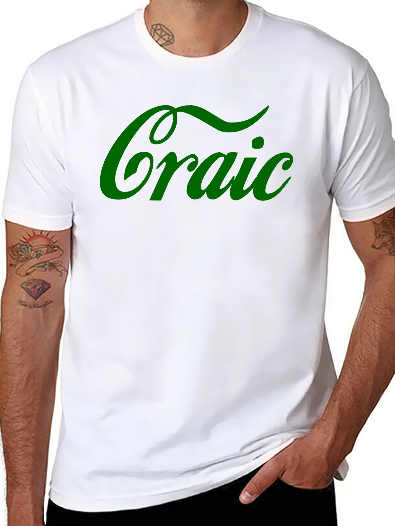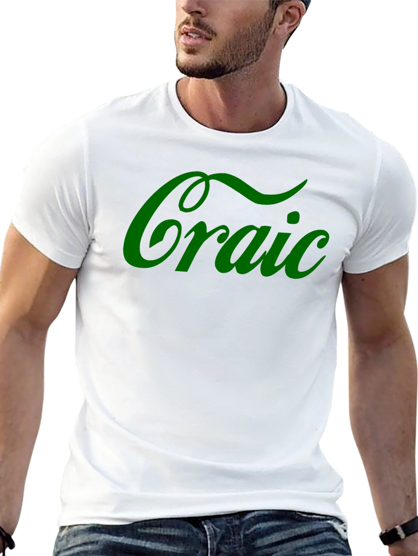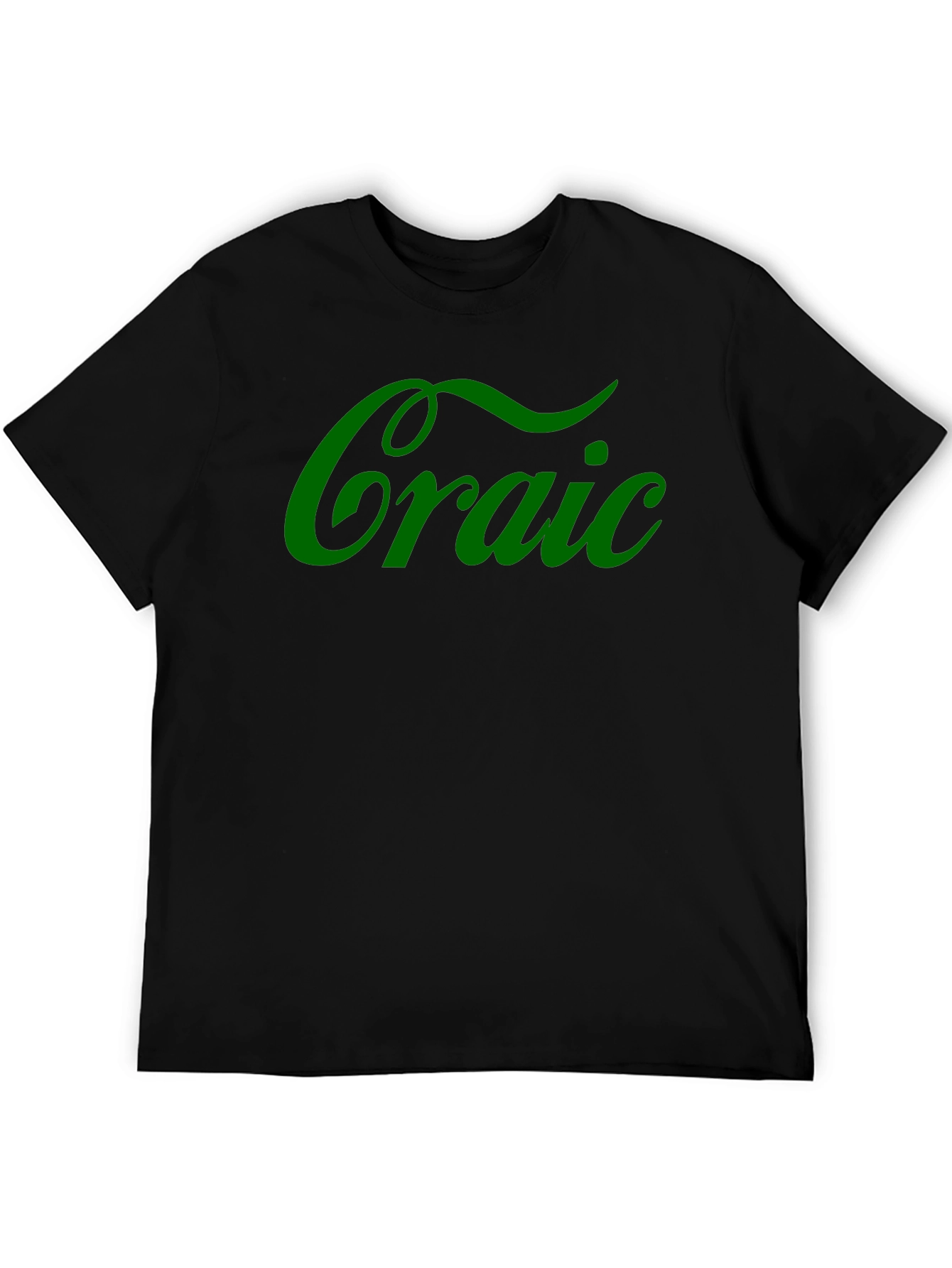 Muestra tu espíritu irlandés con esta camiseta negra de manga corta. Presenta un diseño llamativo con la palabra "Craic" en una fuente verde estilizada, evocando un ambiente festivo y divertido. Hecha de un material que parece ser de algodón suave y cómodo, esta camiseta es perfecta para usar en cualquier ocasión casual, desde reuniones informales hasta celebraciones del Día de San Patricio. Su corte clásico favorece la figura y la hace una prenda versátil para combinar con jeans, pantalones cortos o faldas. El estampado de alta calidad asegura que el diseño se mantenga vibrante lavado tras lavado. ¡Luce con orgullo tu amor por la cultura irlandesa con esta camiseta única!