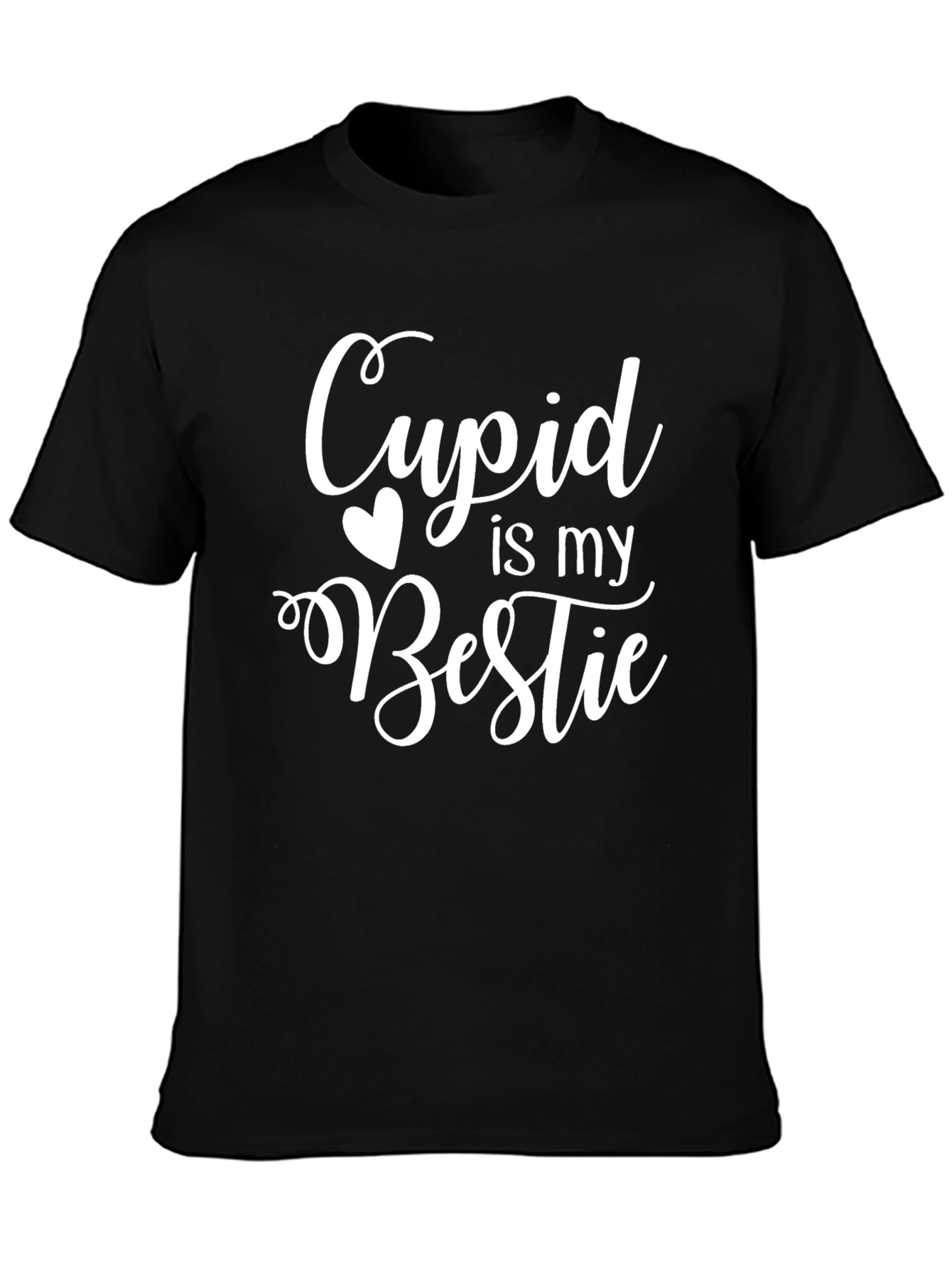¡Celebra el amor con esta divertida camiseta! Confeccionada en un suave tejido negro, esta camiseta presenta un diseño en blanco que dice "Cupido is my Bestie" con un corazón, ideal para expresar tu espíritu alegre y cariñoso. Perfecta para llevar en el Día de San Valentín, salidas informales o simplemente para añadir un toque divertido a tu vestuario diario. Su corte clásico y cómodo la hace ideal para cualquier ocasión. Demuestra tu amor por el amor con esta prenda única y original. ¡Consigue la tuya hoy mismo y difunde alegría a tu alrededor!