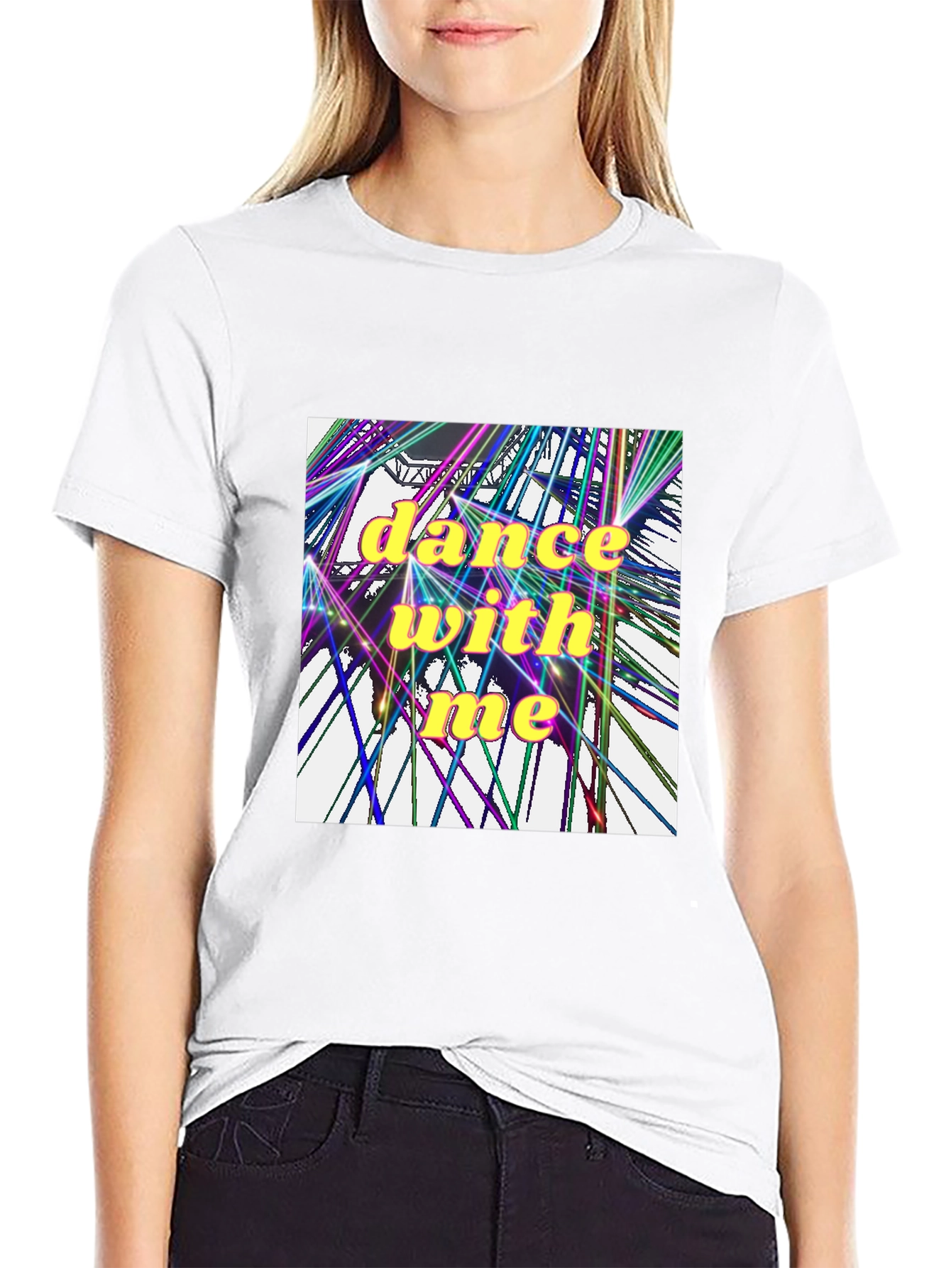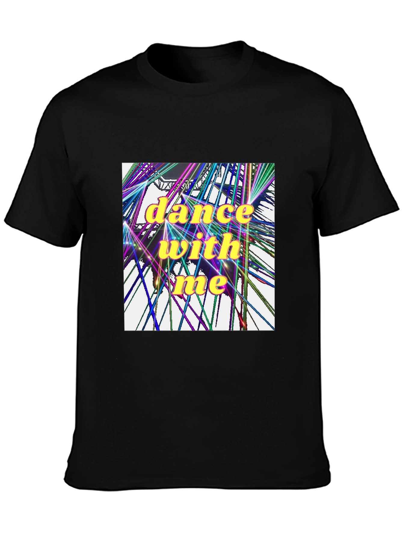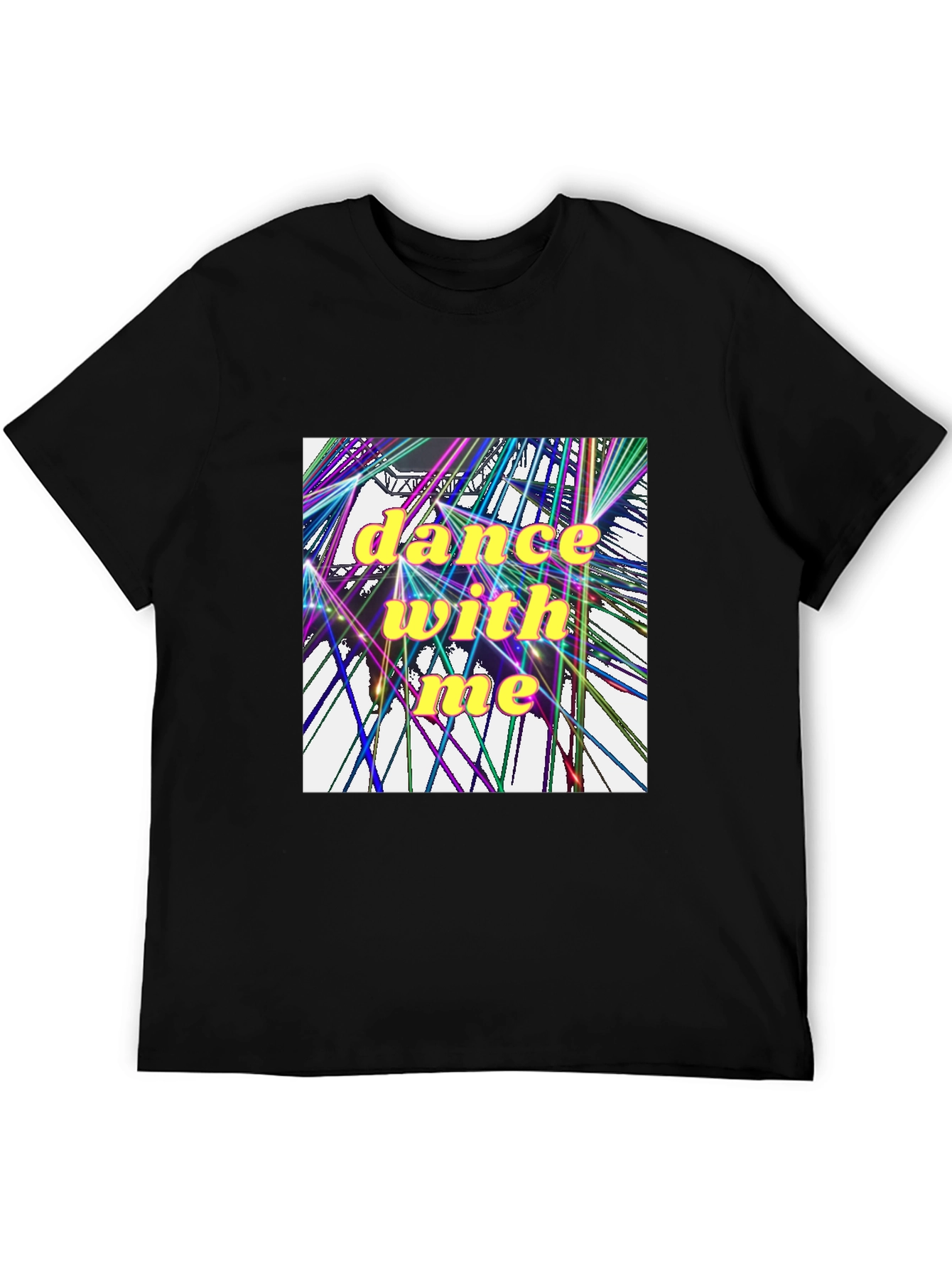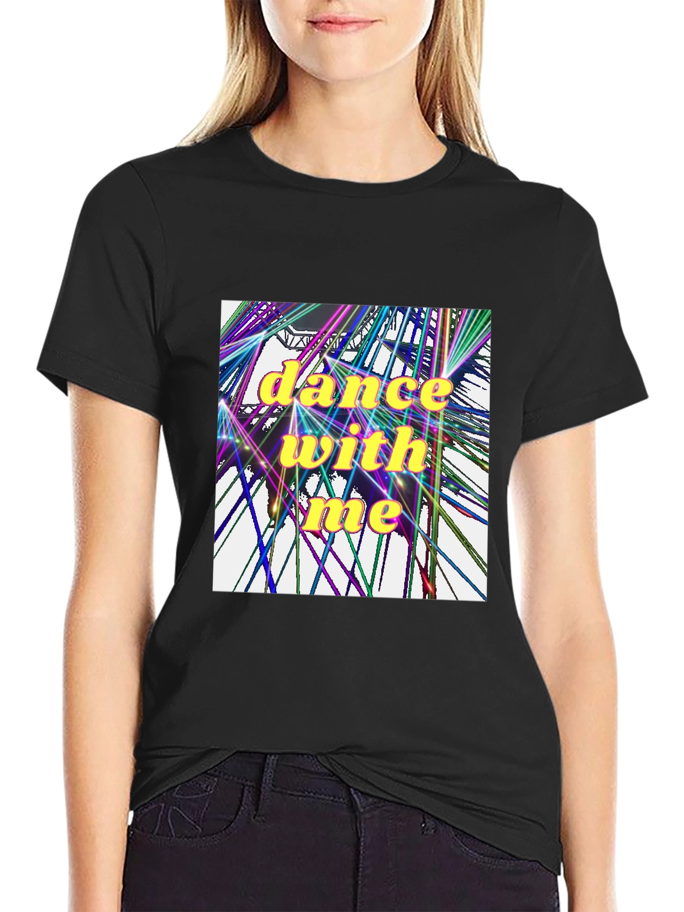 Expresa tu estilo único con esta moderna camiseta negra. Presenta un diseño abstracto vibrante con líneas multicolor que se cruzan, creando un efecto visual dinámico. La frase "dance with me" destaca en letras amarillas brillantes, añadiendo un toque divertido y original. Ideal para quienes buscan una prenda cómoda y llamativa para destacar en cualquier ocasión casual. Perfecta para combinar con jeans, shorts o faldas, esta camiseta te asegura un look moderno y lleno de energía. ¡Atrévete a lucir diferente!