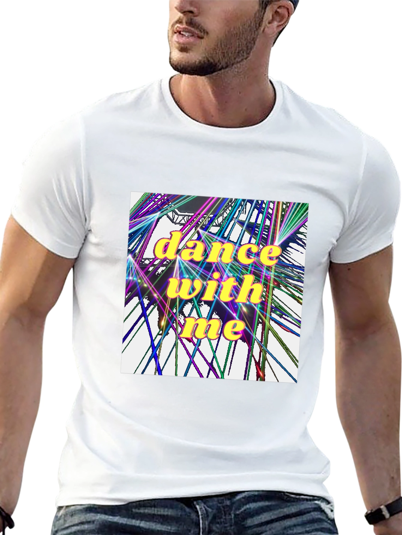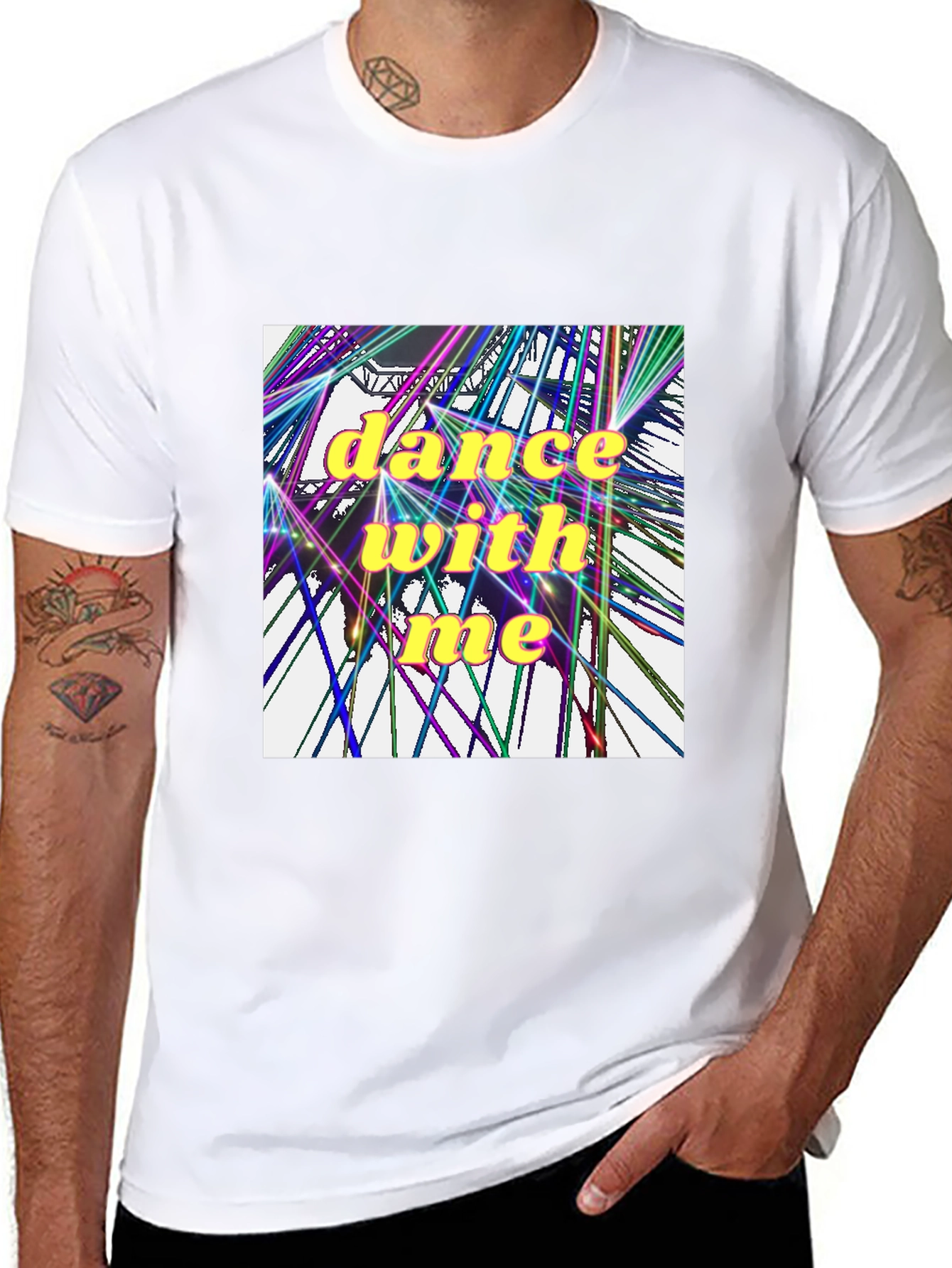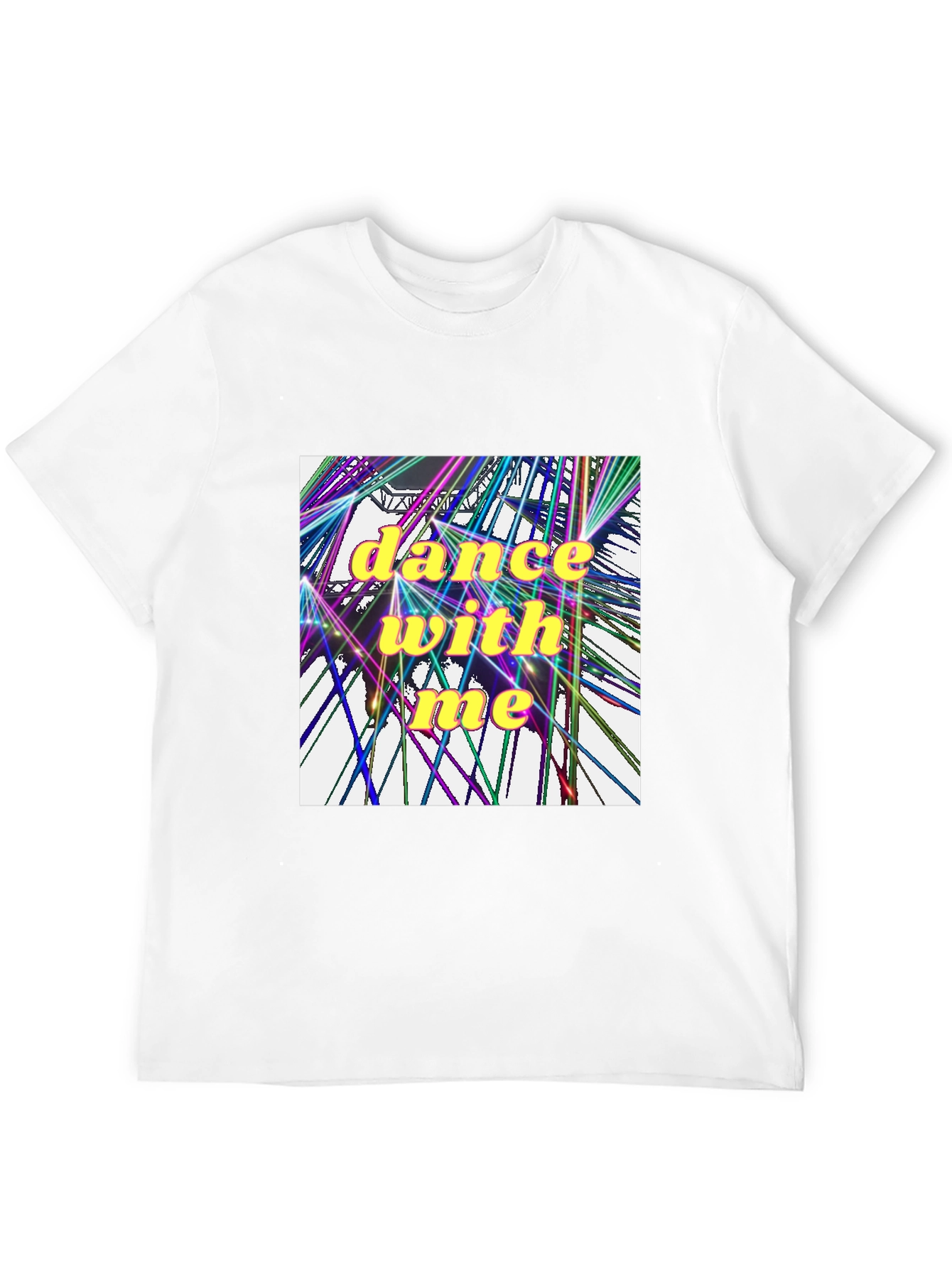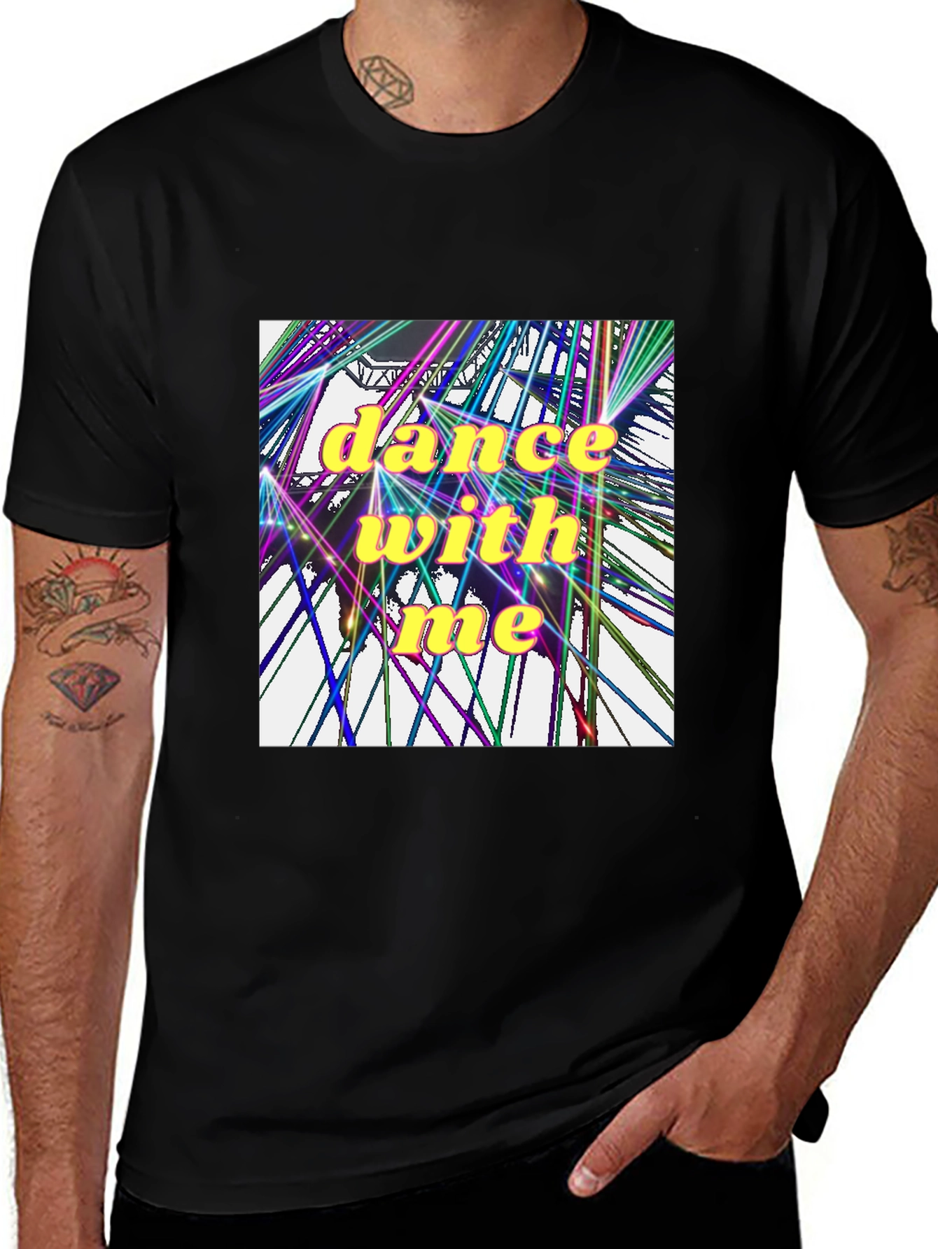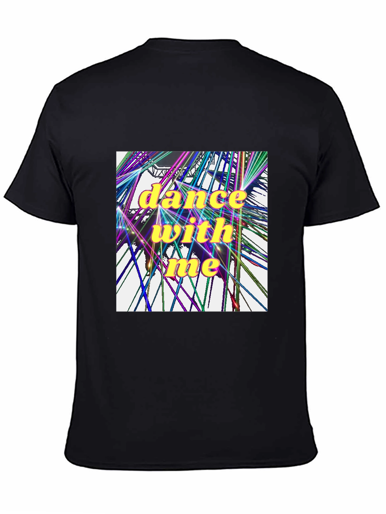Expresa tu estilo único con esta moderna camiseta negra. Presenta un diseño abstracto vibrante con líneas multicolor que se cruzan, creando un efecto visual dinámico. La frase "dance with me" destaca en letras amarillas brillantes, añadiendo un toque divertido y original. Ideal para quienes buscan una prenda cómoda y llamativa para destacar en cualquier ocasión casual. Perfecta para combinar con jeans, shorts o faldas, esta camiseta te asegura un look moderno y lleno de energía. ¡Atrévete a lucir diferente!