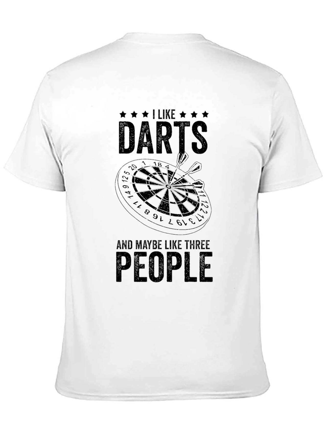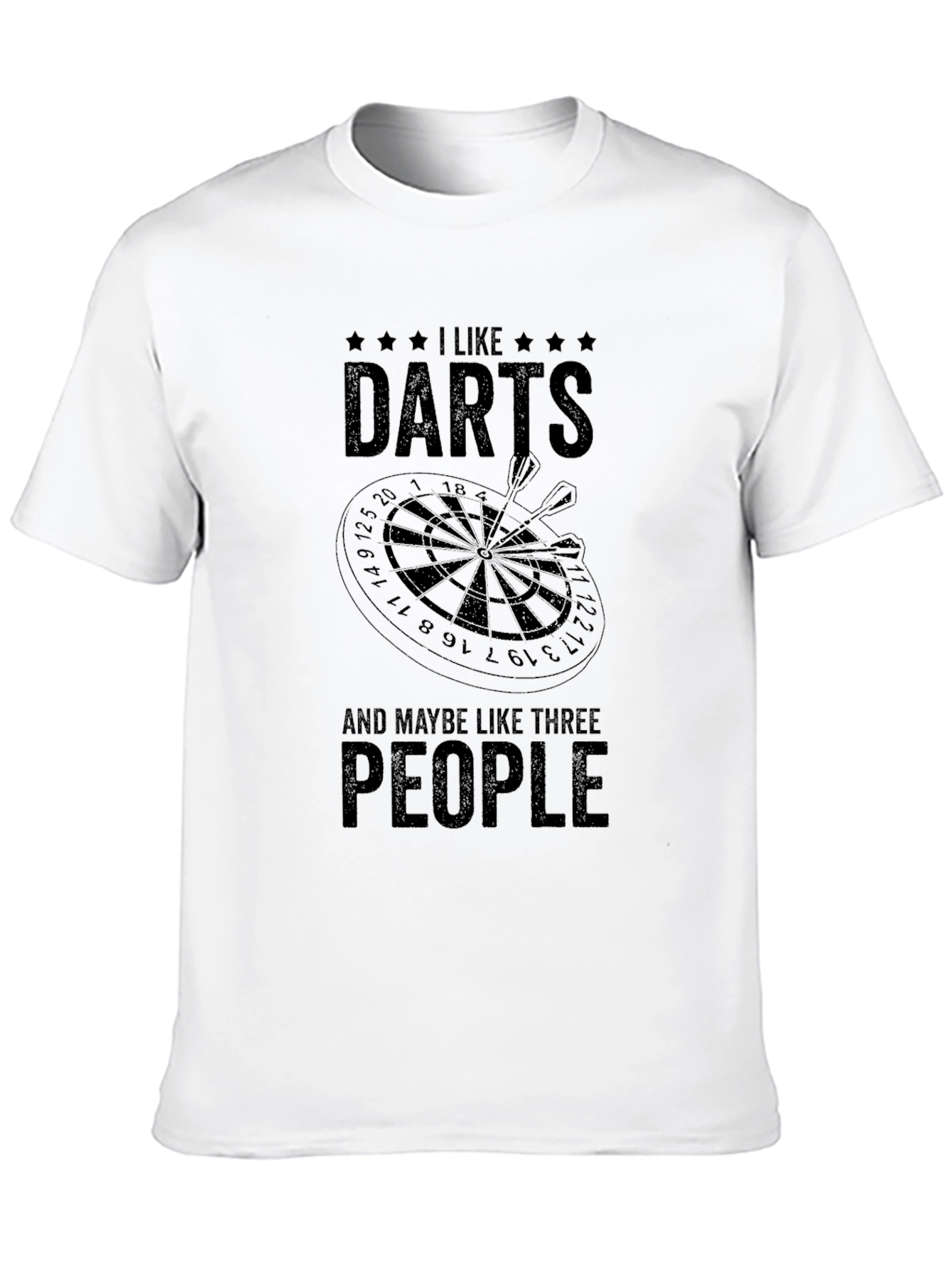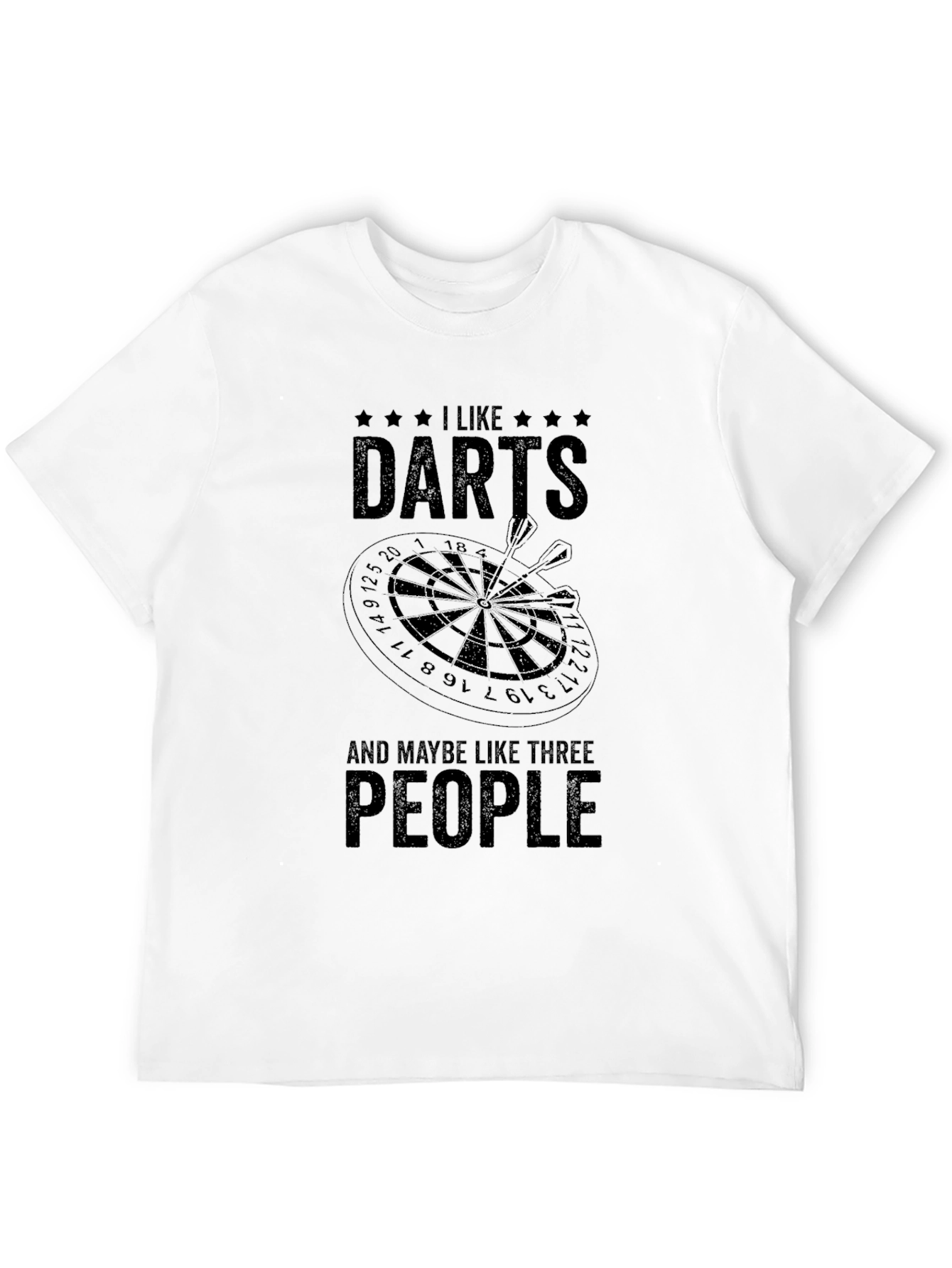 Luce un estilo único con esta camiseta negra de manga corta para hombre. El diseño presenta un estampado llamativo con la frase "I LIKE DARTS AND MAYBE LIKE THREE PEOPLE", acompañada de una imagen de una diana y dardos. Ideal para los amantes de los dardos que no toman la vida demasiado en serio. Confeccionada con un material suave y cómodo, perfecta para usar en el día a día o para una noche de juegos con amigos. Esta camiseta es una excelente opción para expresar tu personalidad y sentido del humor. Destaca entre la multitud con esta prenda original y divertida.