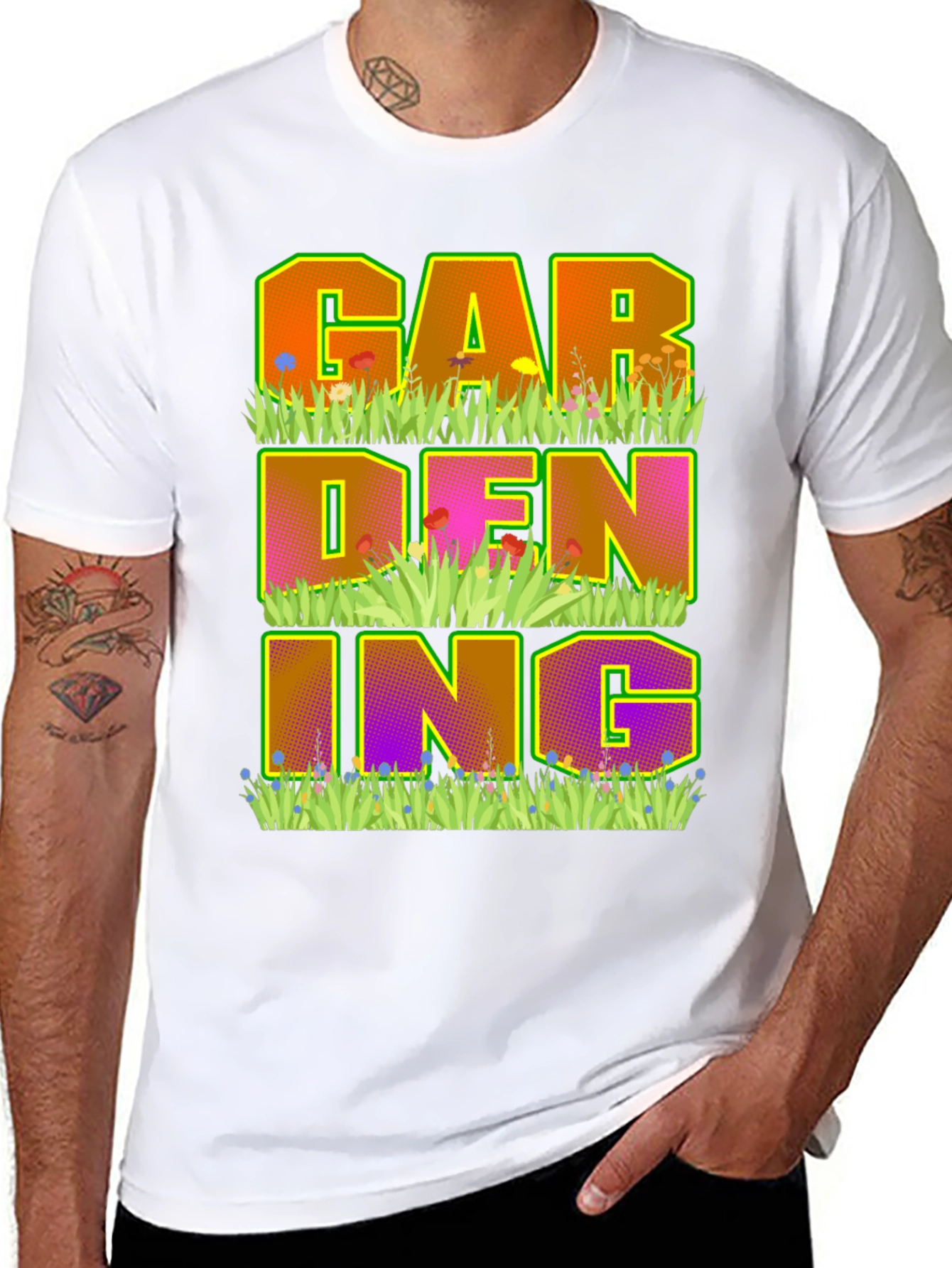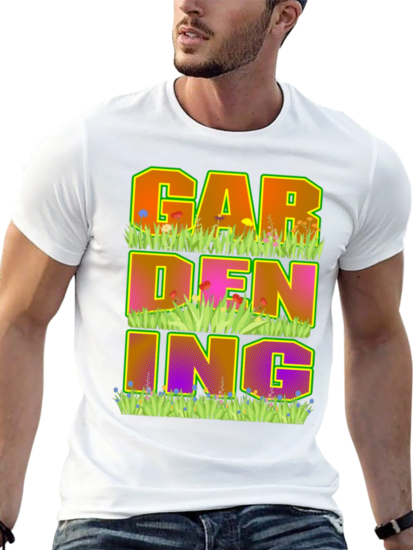 Luce tu pasión por la jardinería con esta moderna camiseta negra. Destaca por su diseño llamativo con la palabra "GARDENING" en letras grandes con un degradado de color vibrante y un borde verde neón. Las letras parecen estar integradas en un jardín, con ilustraciones de césped y flores que aportan un toque alegre y primaveral. Ideal para usar en el jardín, salidas informales o simplemente para expresar tu amor por la naturaleza. Fabricada con materiales cómodos, esta camiseta es perfecta para cualquier amante de las plantas y el aire libre. Añade un toque divertido y colorido a tu armario.